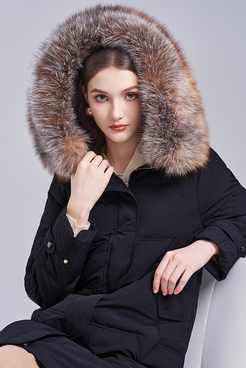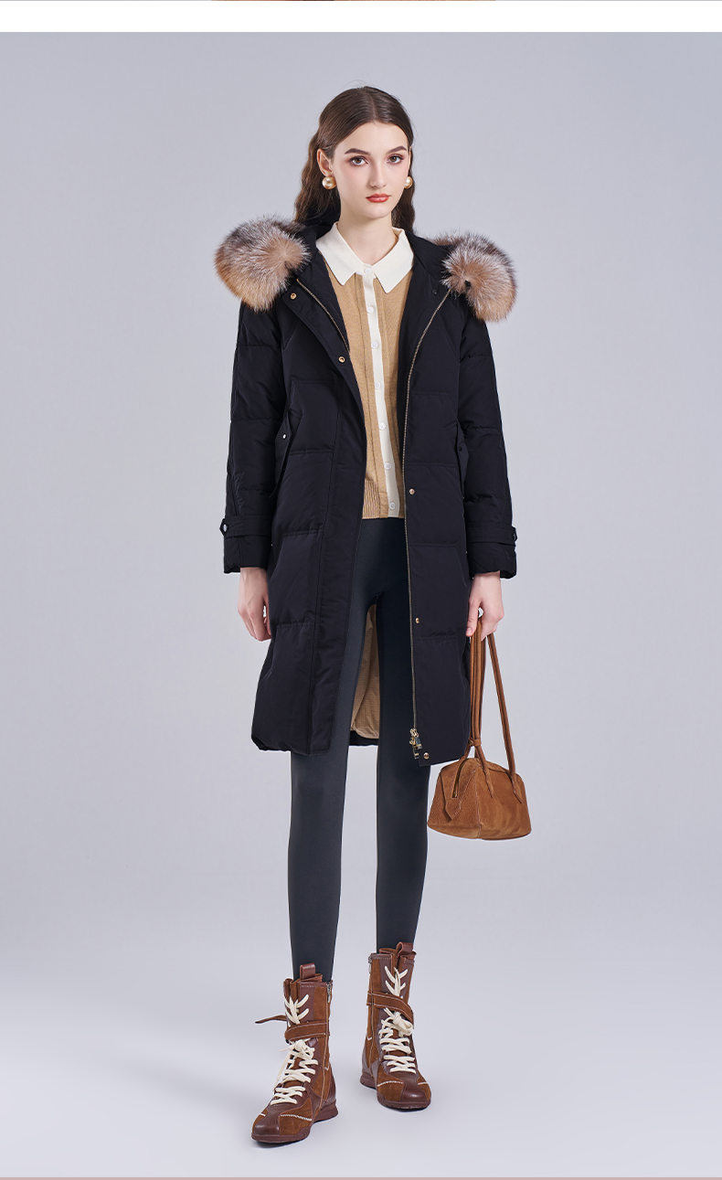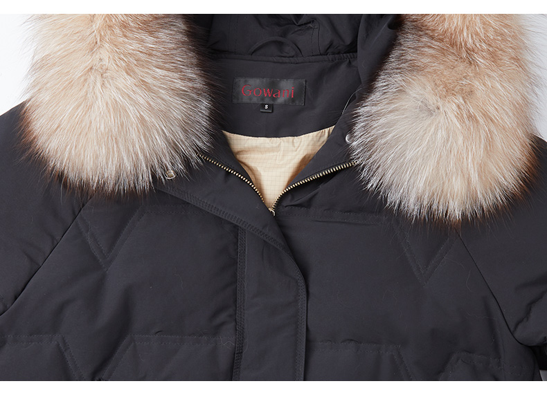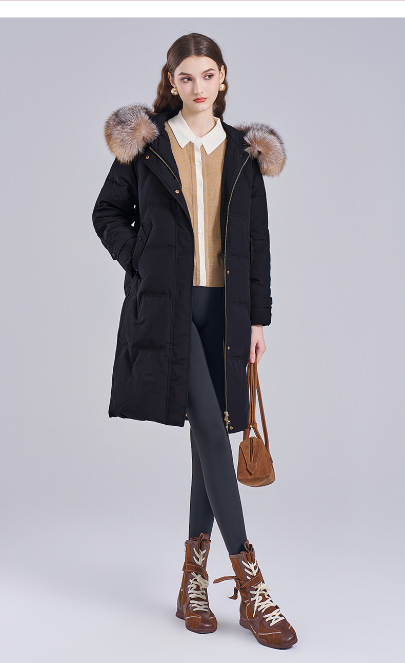 乔万尼冬季新款防寒保暖连帽狐狸毛领中长款羽绒服ET4T982