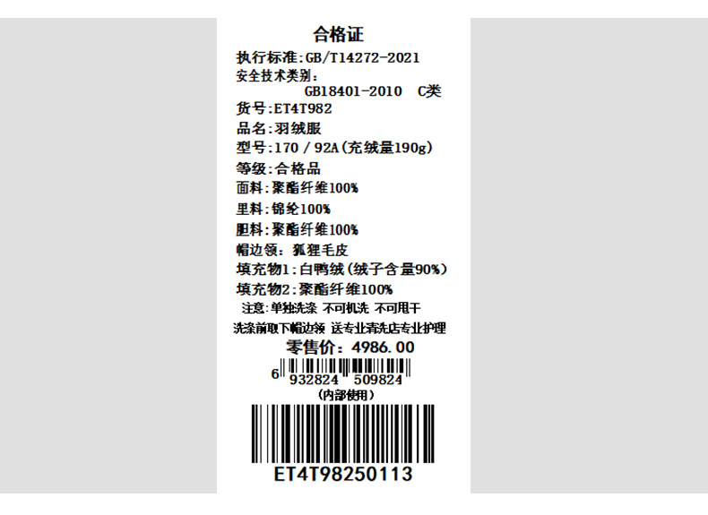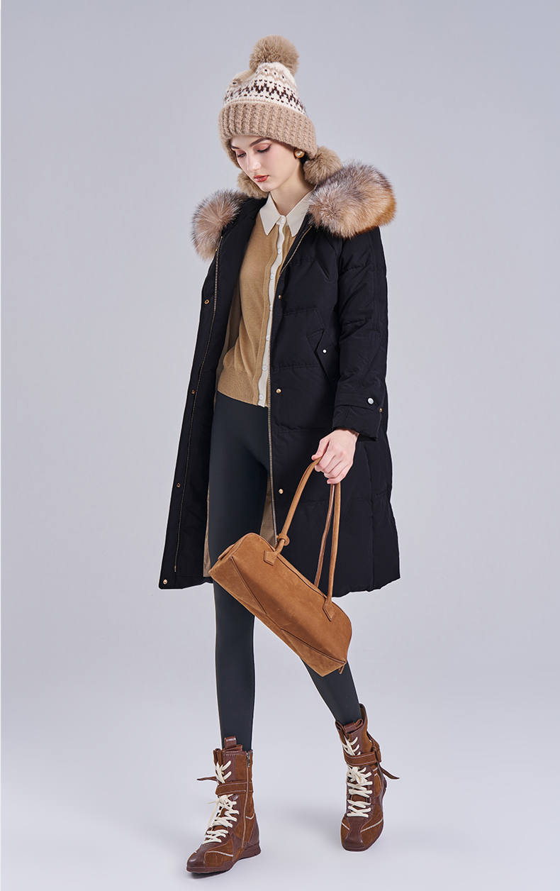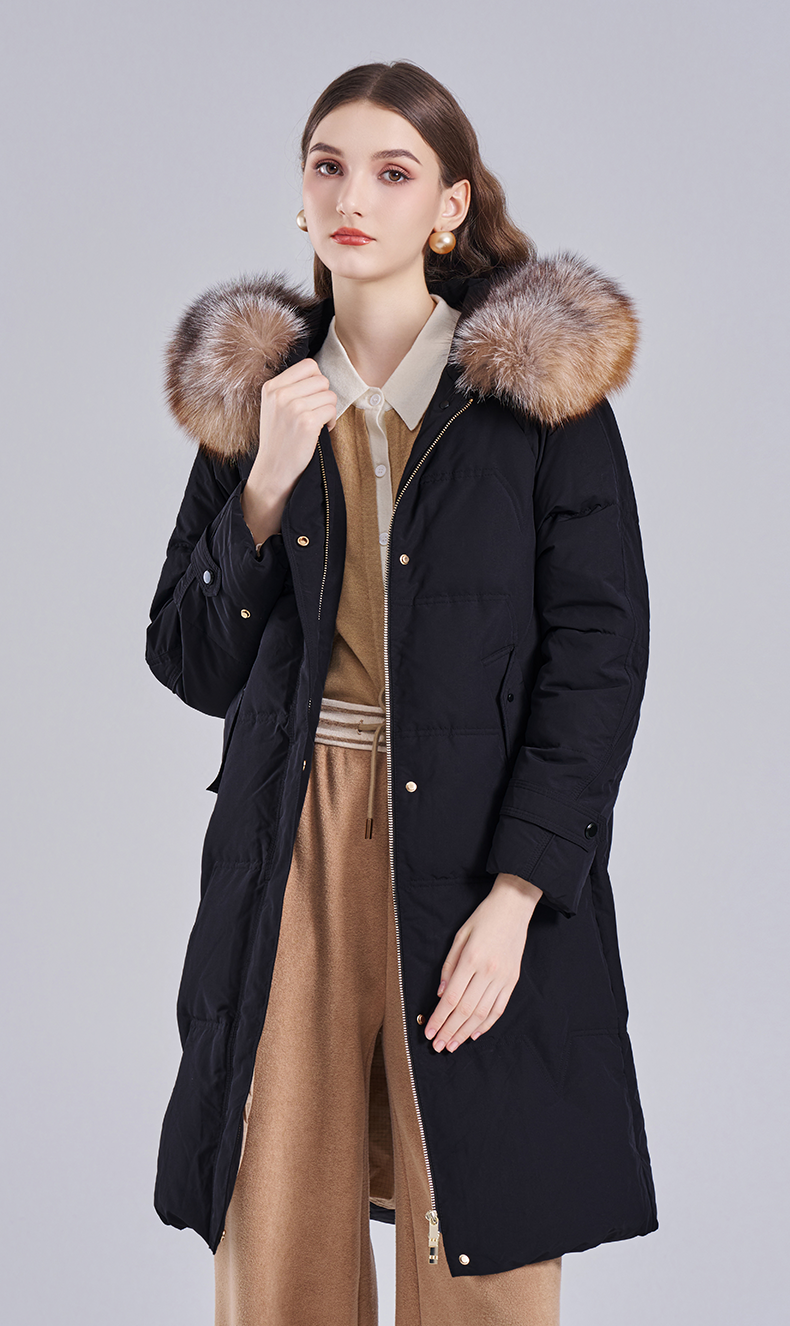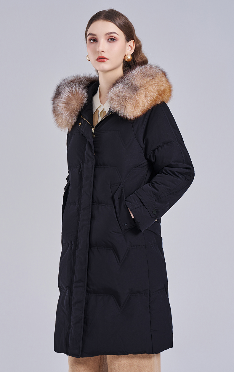 乔万尼冬季新款防寒保暖连帽狐狸毛领中长款羽绒服ET4T982