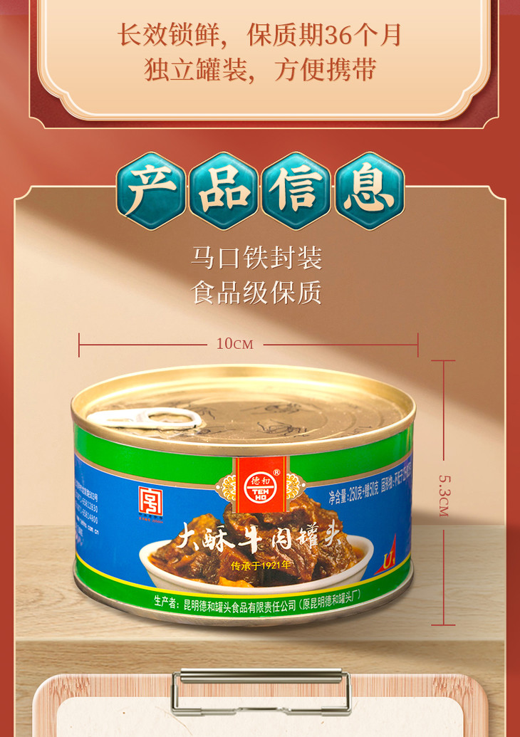 - 昆明德和罐头厂是中国最早开始生产制造罐头的企业之一,至今已有九十八年的悠久历史,现已形成以罐头食品为主,腌腊制品、糕点月饼等为辅的云南省规模最大和最具影响力综合食品制造企业,奠定了云南罐头行业的基石。