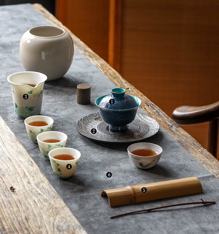 茶香记 古帛扒花内松石绿盖碗(黛蓝)140ml陶瓷主泡器茶室茶具
