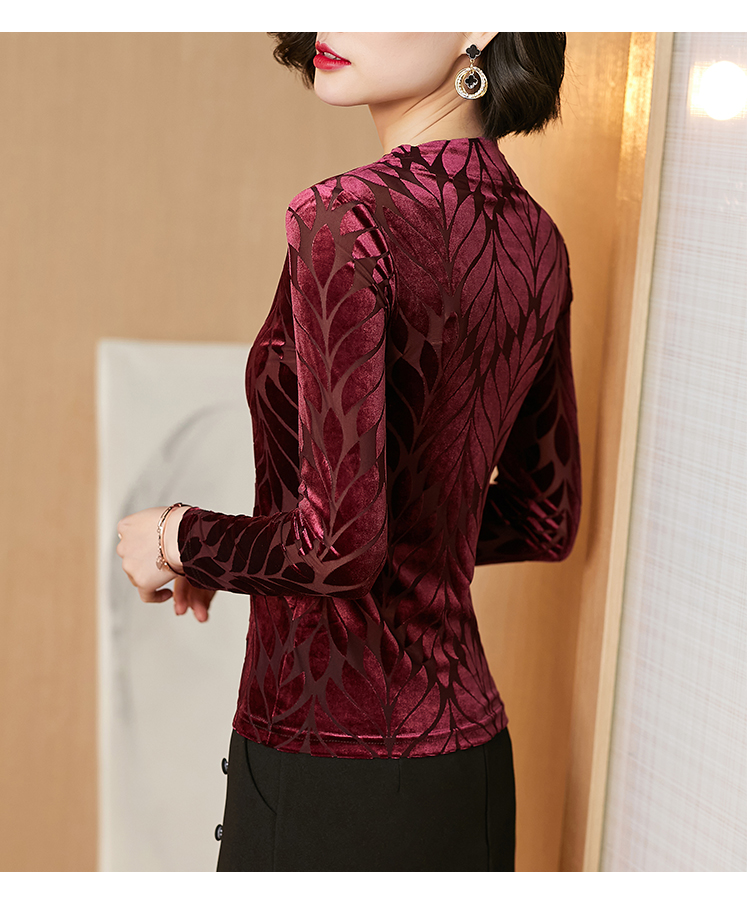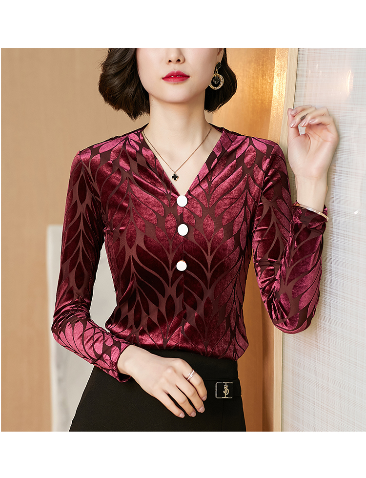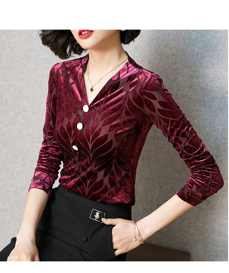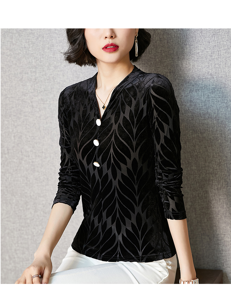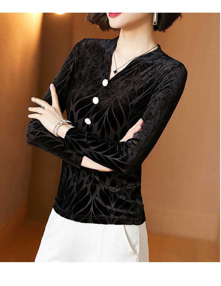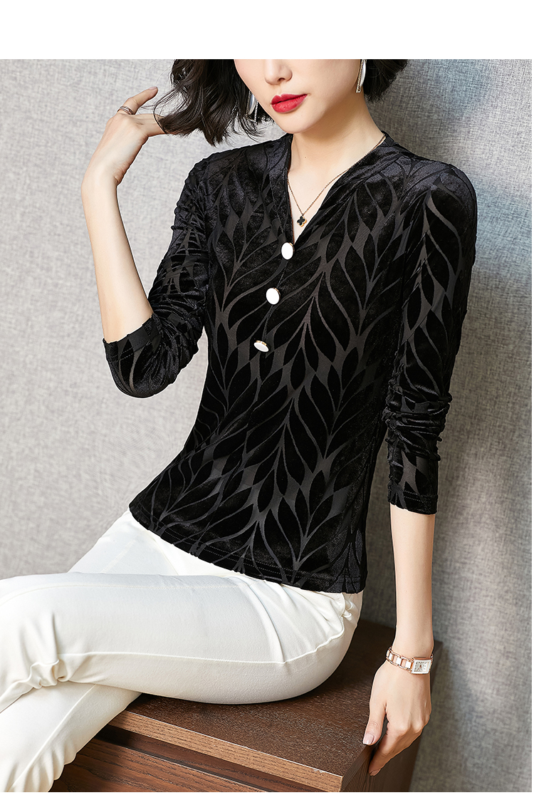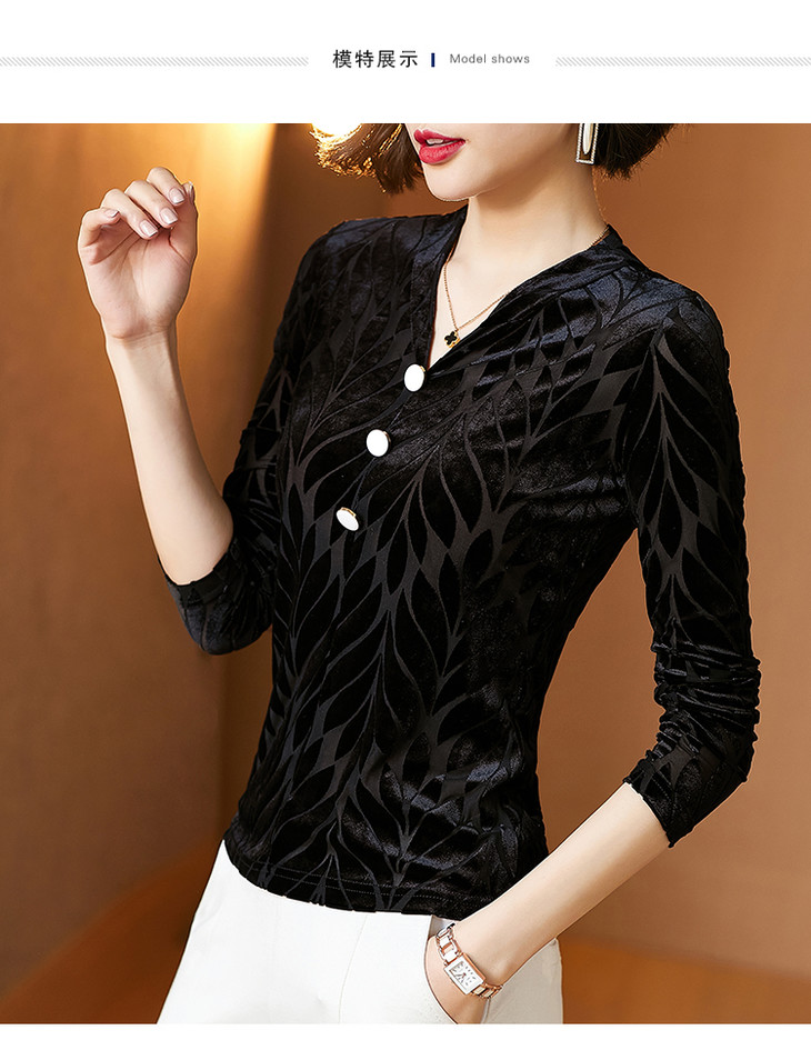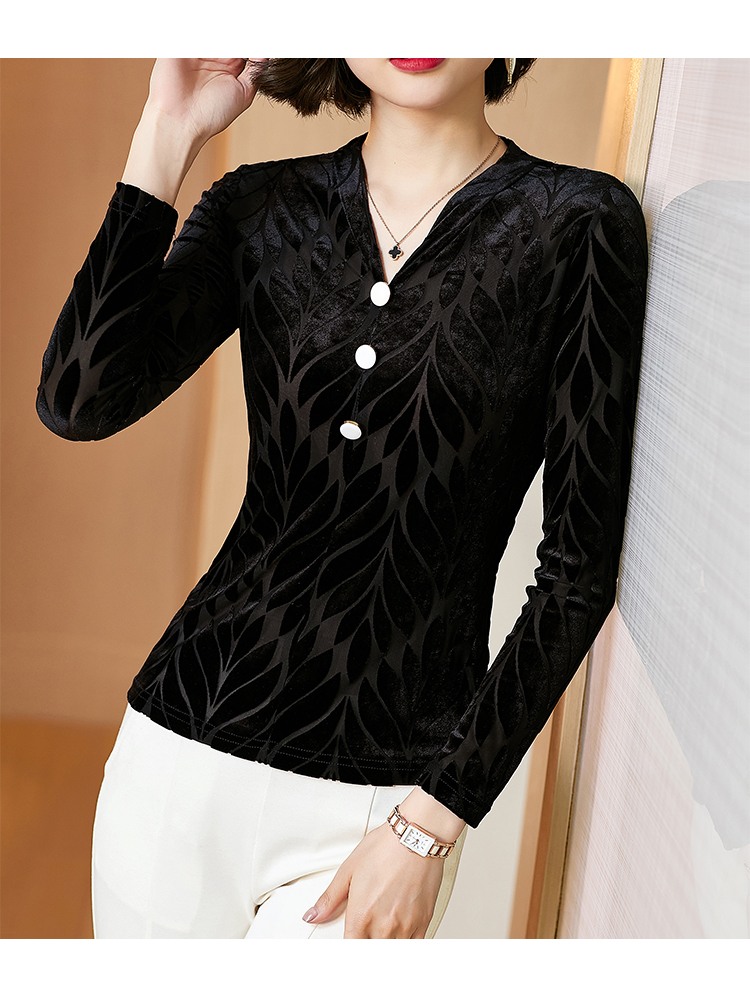 KQL-D046M820新款时尚洋气V领长袖丝绒打底衫