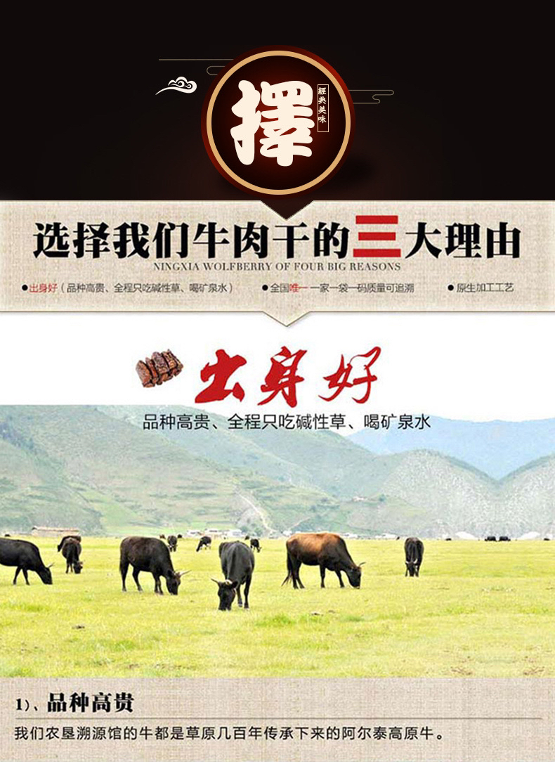 【有机认证】阿吾勒牛肉干 新疆阿勒泰北屯特产肉制品 新疆美食 休闲零食