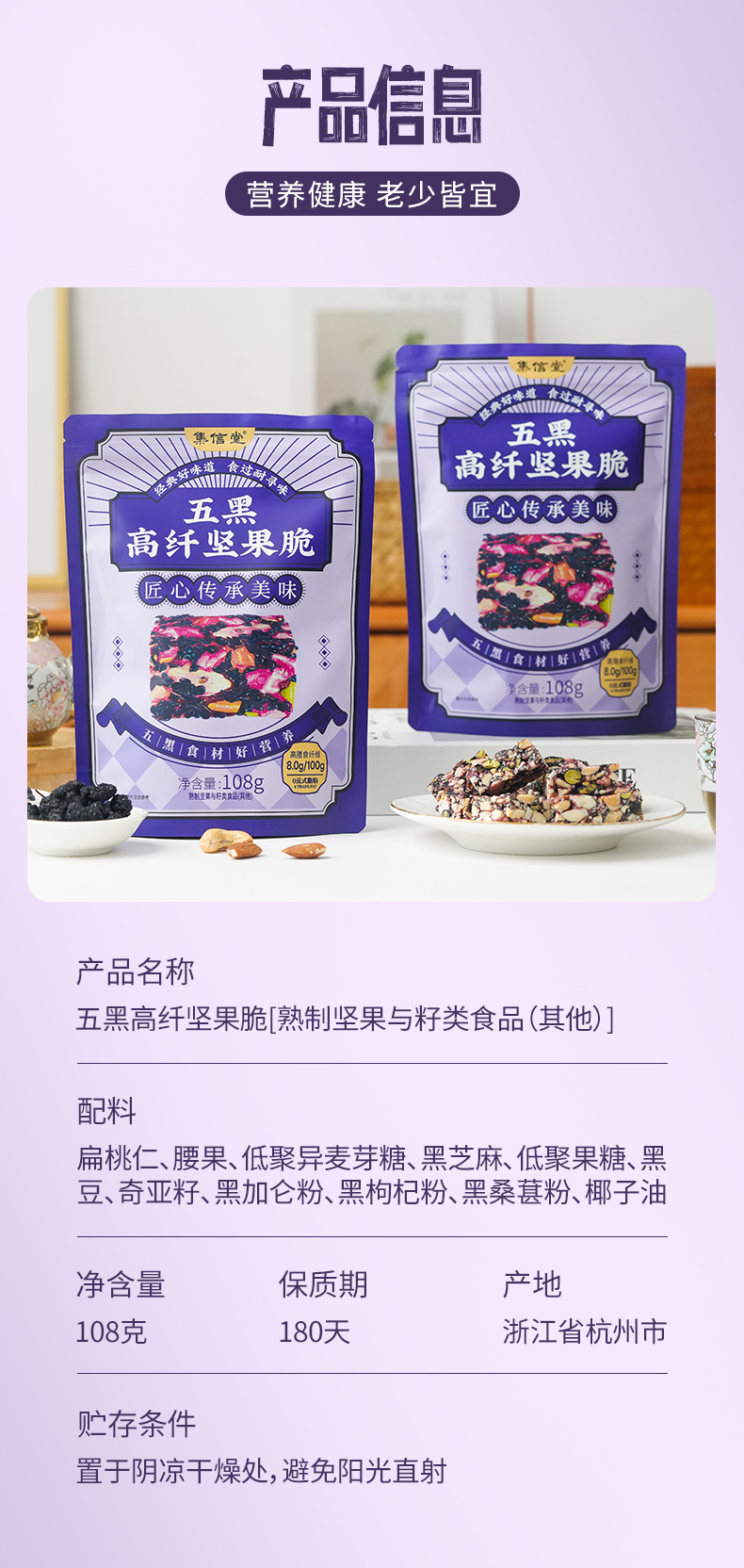 优选 | 集信堂五黑高纤坚果脆 精选五黑食材,扁桃仁+腰果含量≥50%,高膳食纤维,0反式脂肪酸 口感酥脆 108克/袋