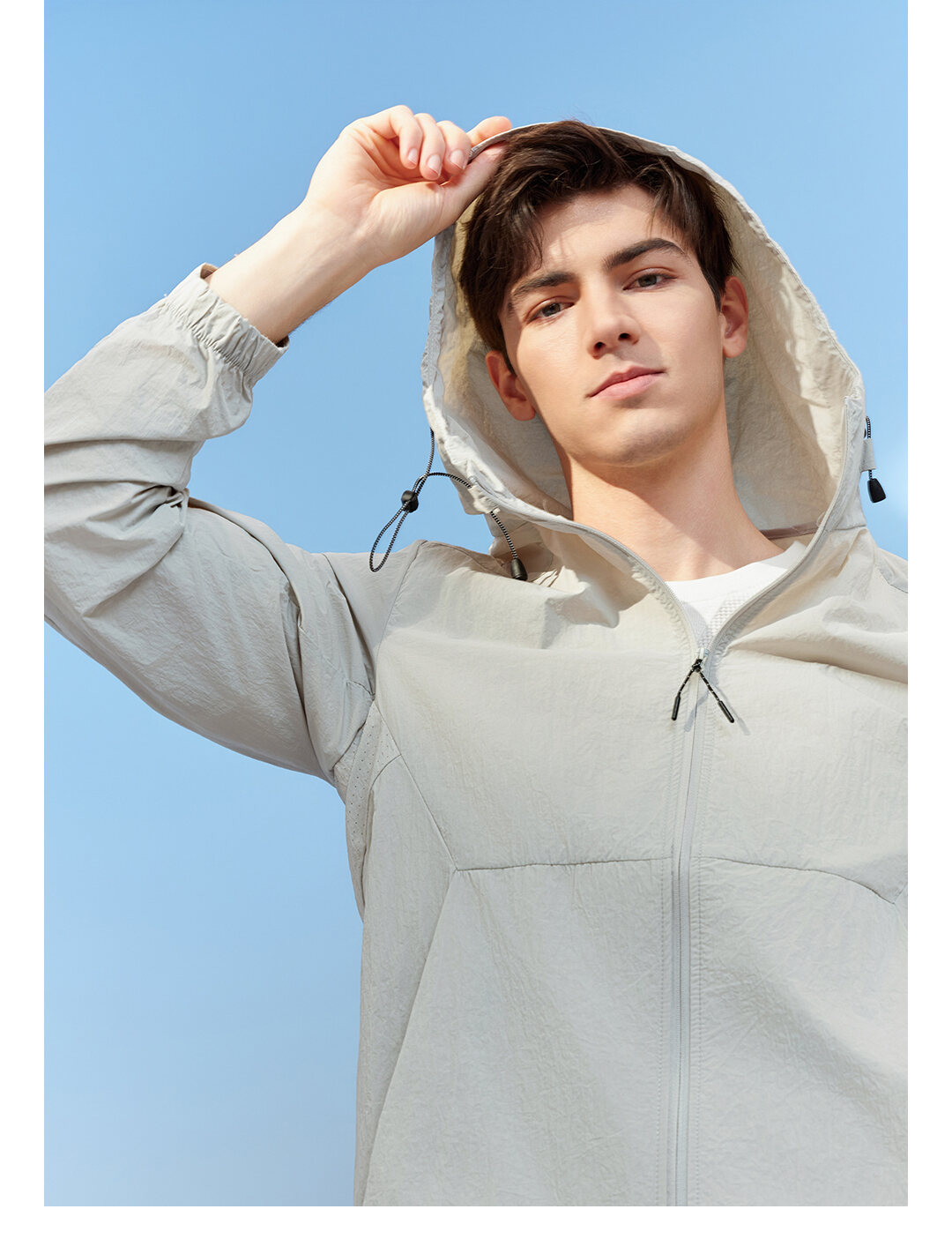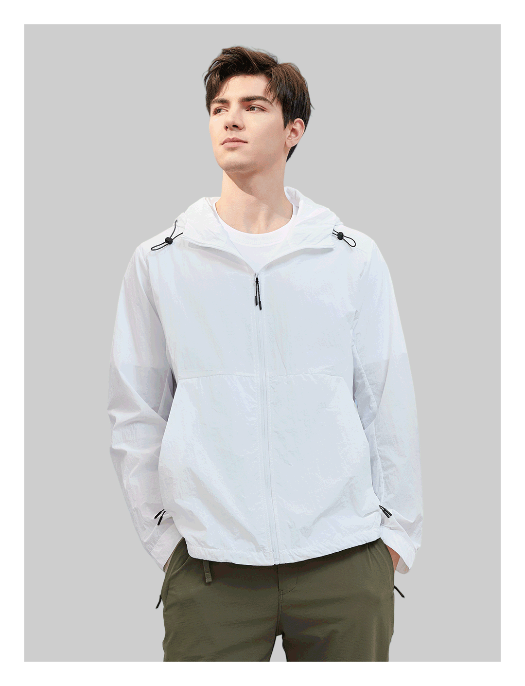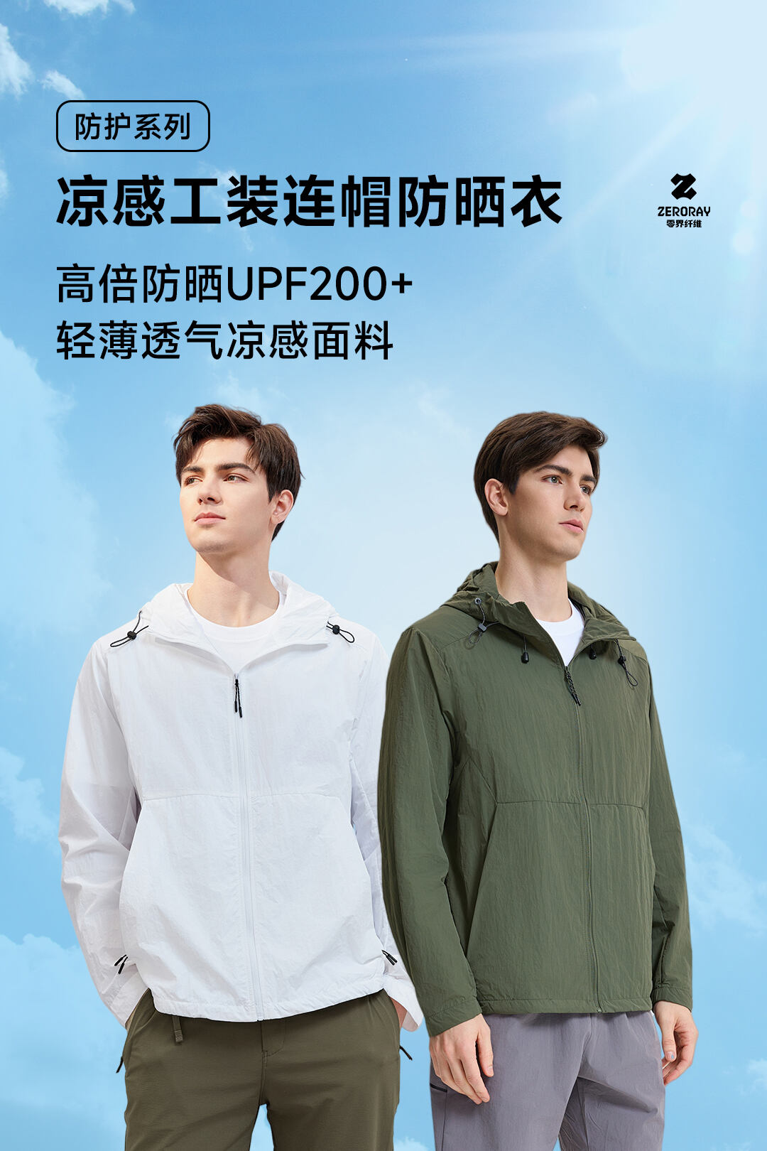 零界纤维 尼龙微皱凉感工装连帽薄款情侣款防晒衣-hf001