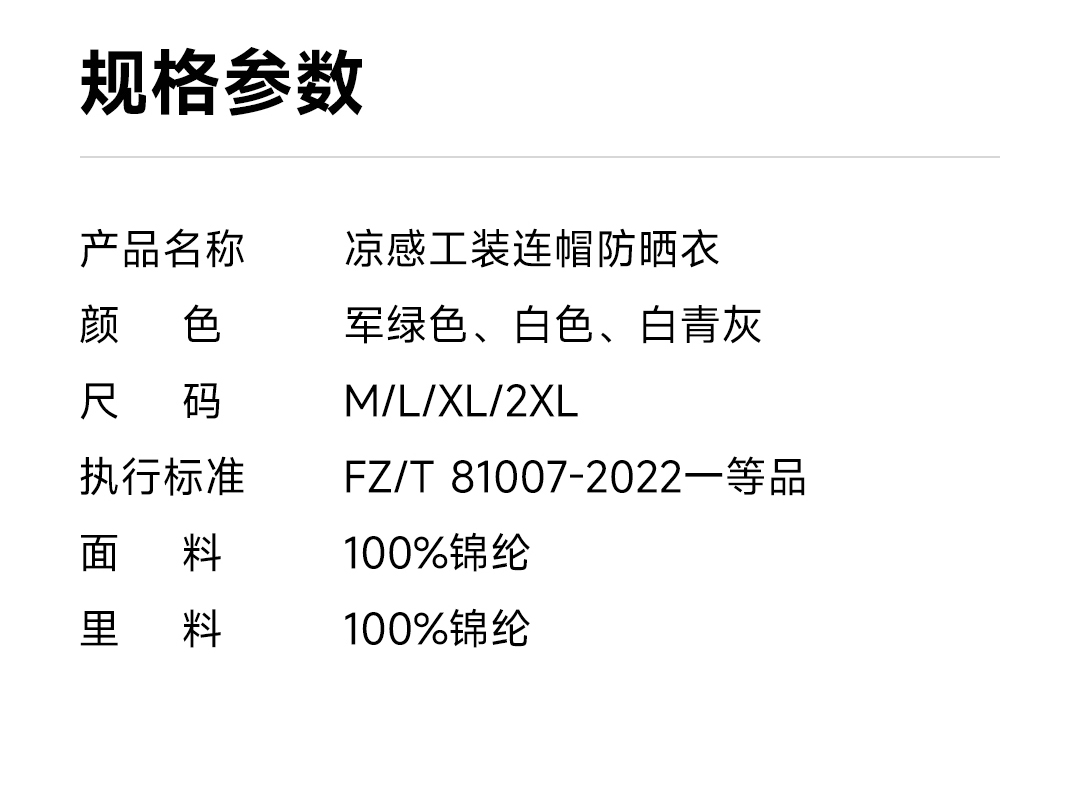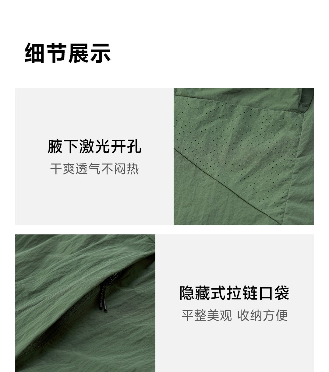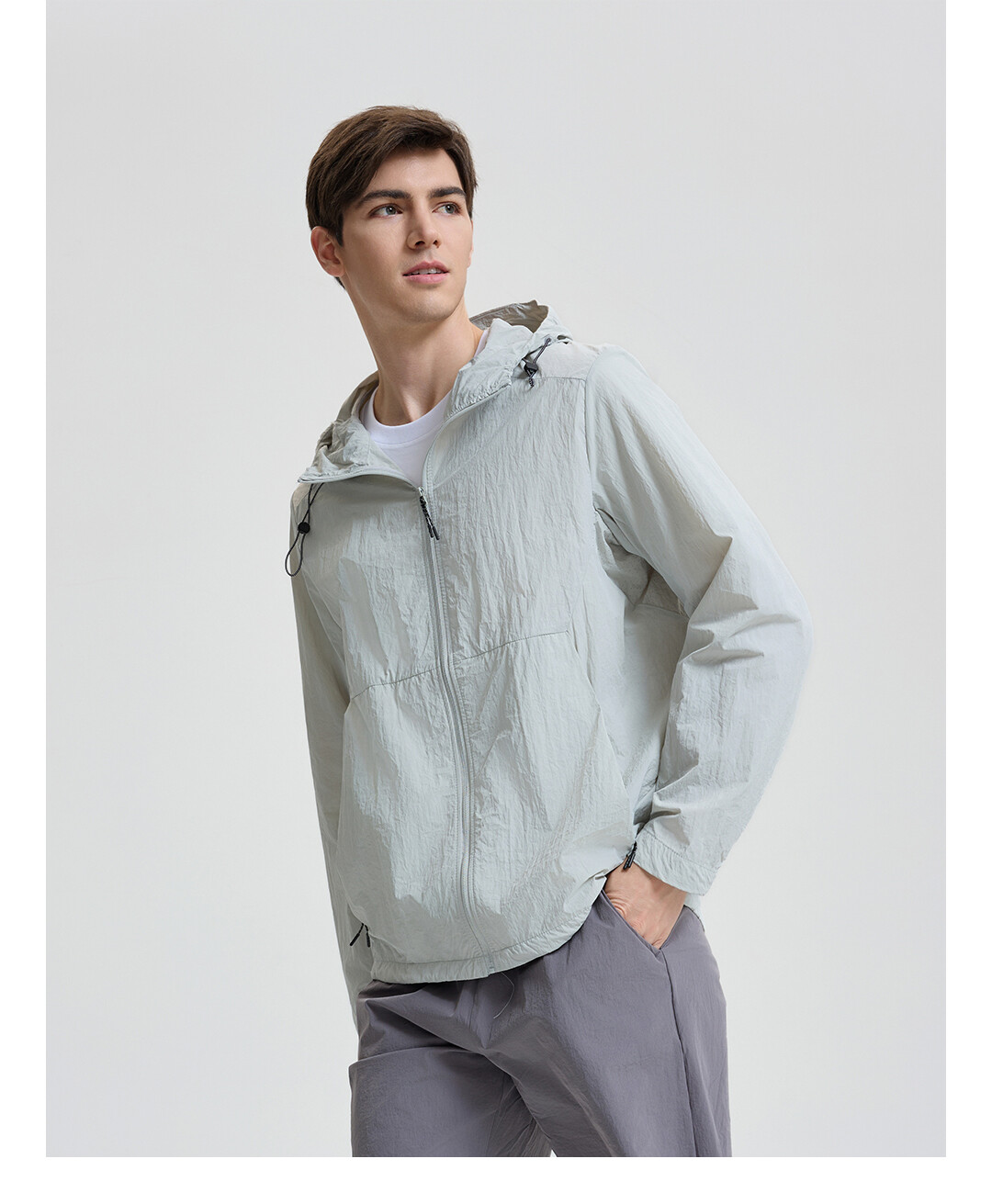 零界纤维 尼龙微皱凉感工装连帽薄款情侣款防晒衣-hf001