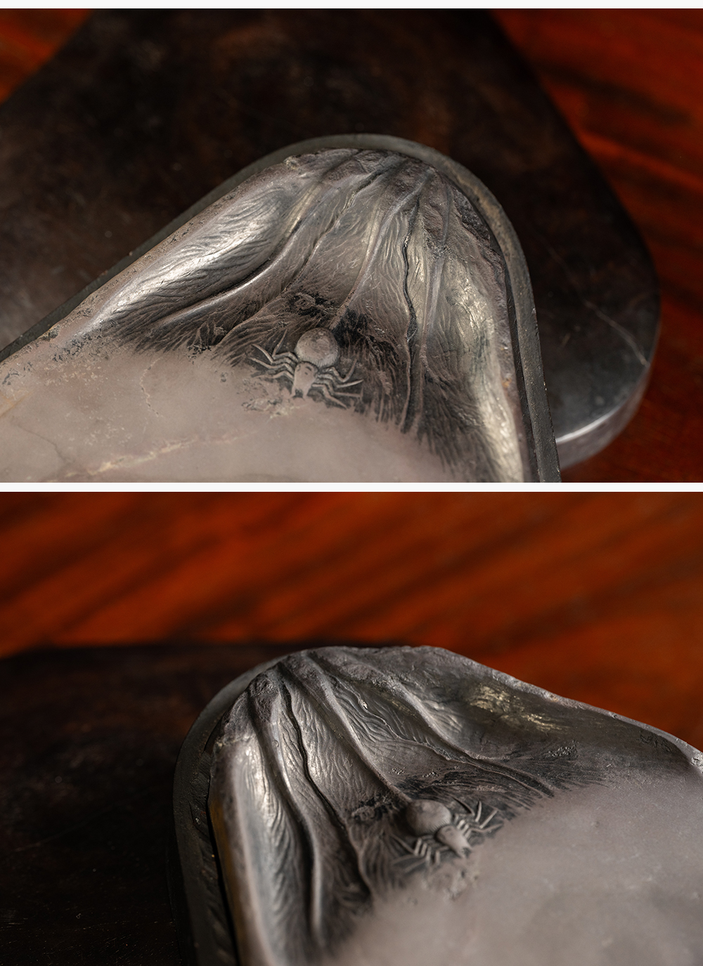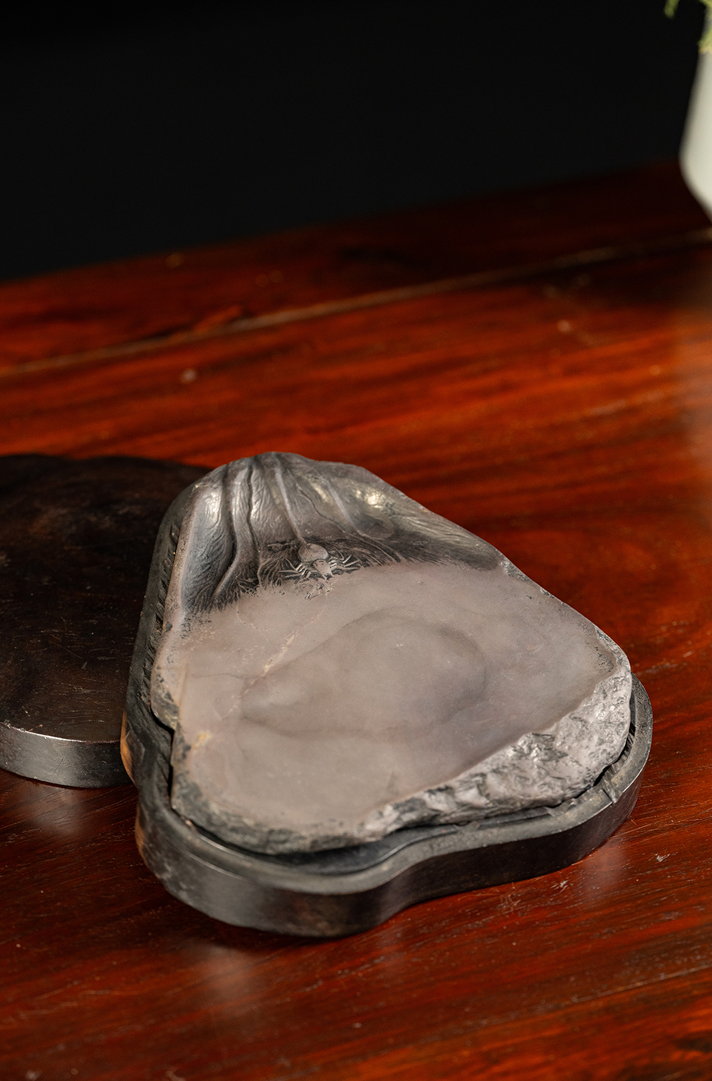 清中期 黄花梨镶云石云纹三弯腿带托泥四足方形器座