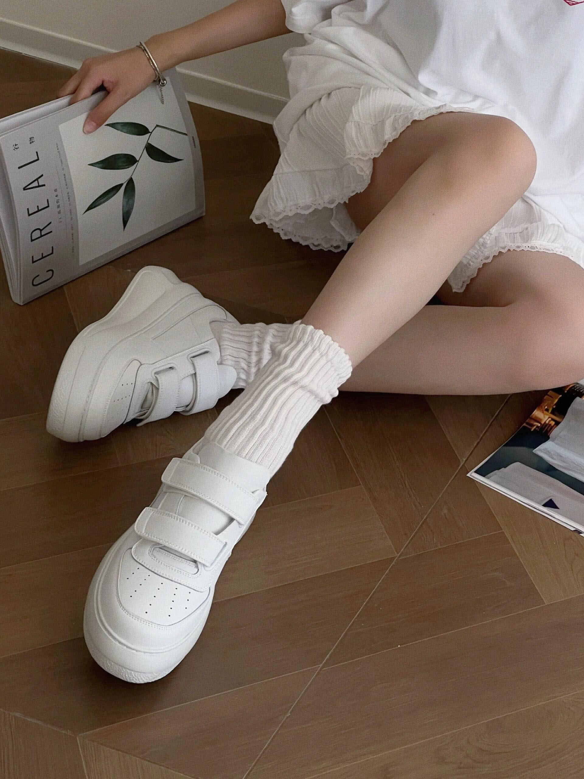 洛诗琳05328厚底小白鞋2025新款魔术贴增增高真皮小白鞋女8097