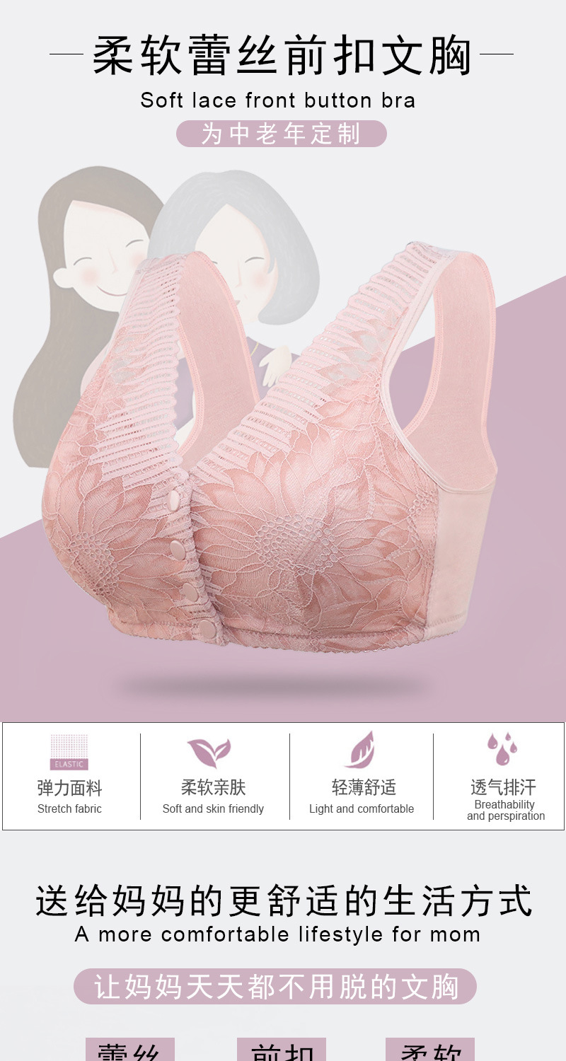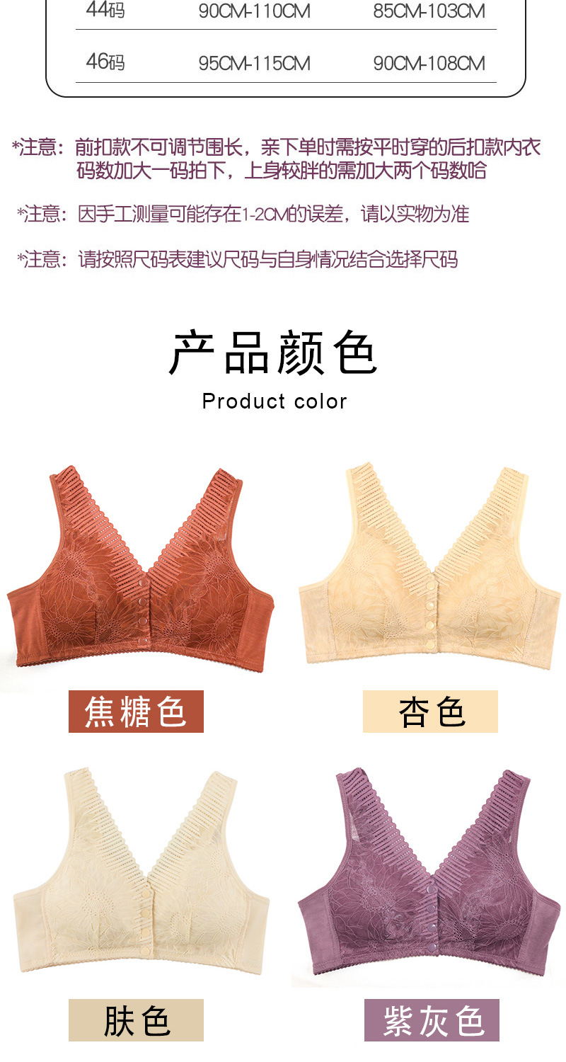 上海旗袍厂YY-180新款蕾丝前扣内衣 女士软棉可插片背心式大码无钢圈文胸