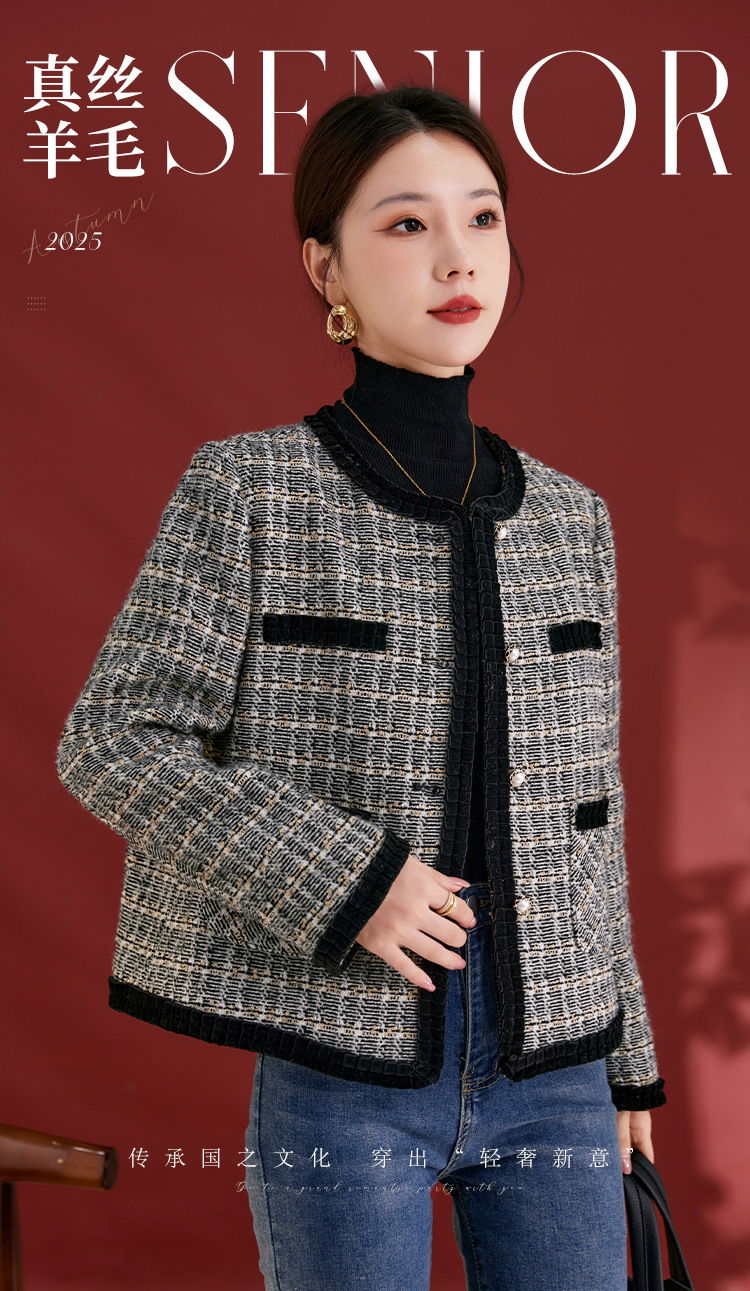 丁摩四季青羊毛法式小香风外套基础百搭秋冬新款上衣女AL1763 商品图1