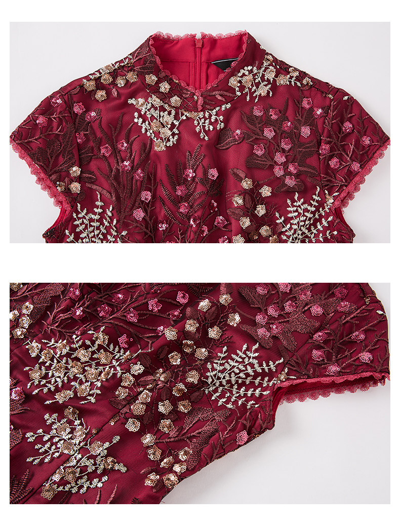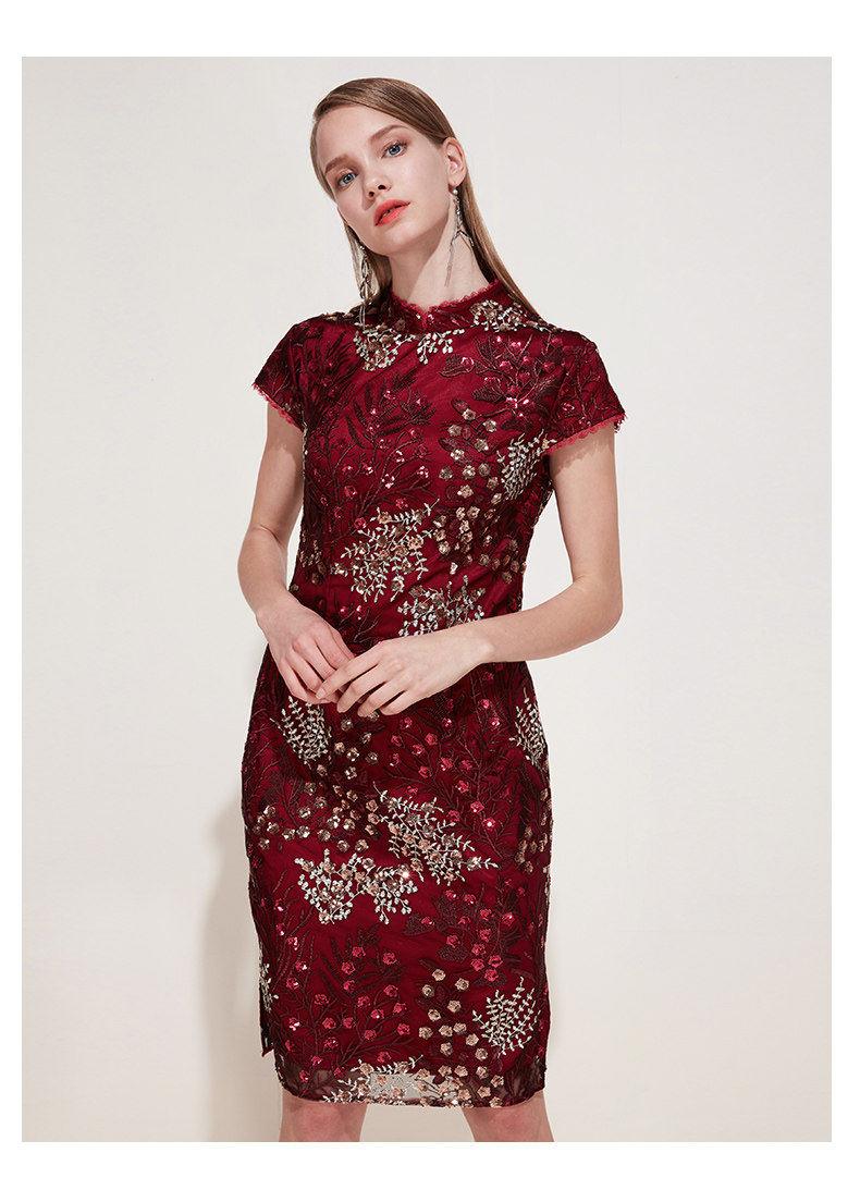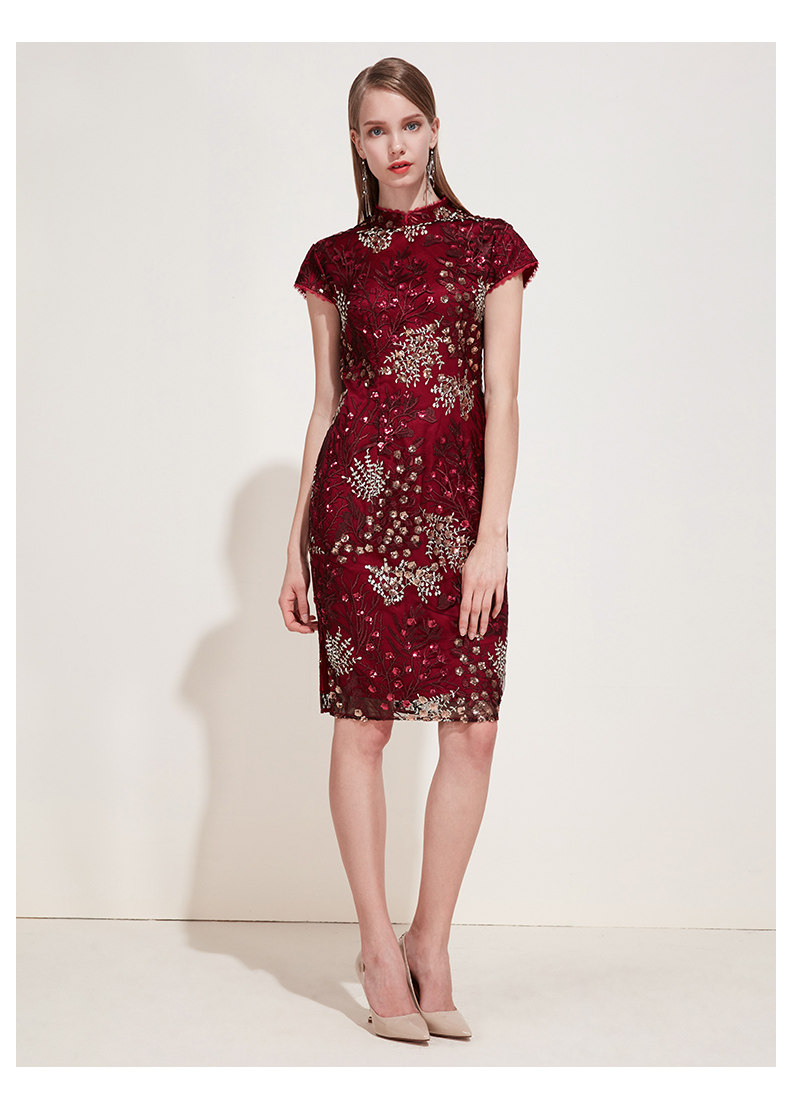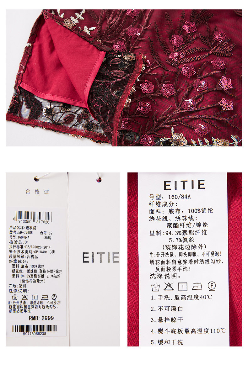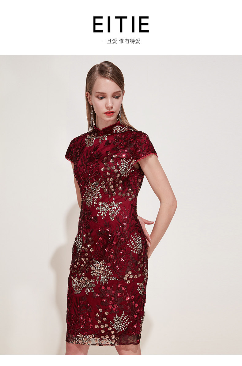 EITIE爱特爱品牌女装春季花边领口刺绣旗袍式礼服连衣裙5977606