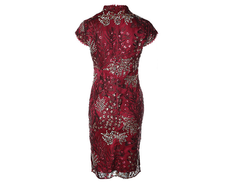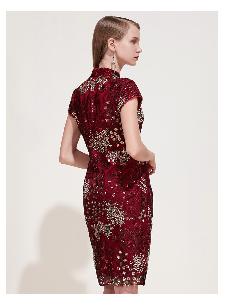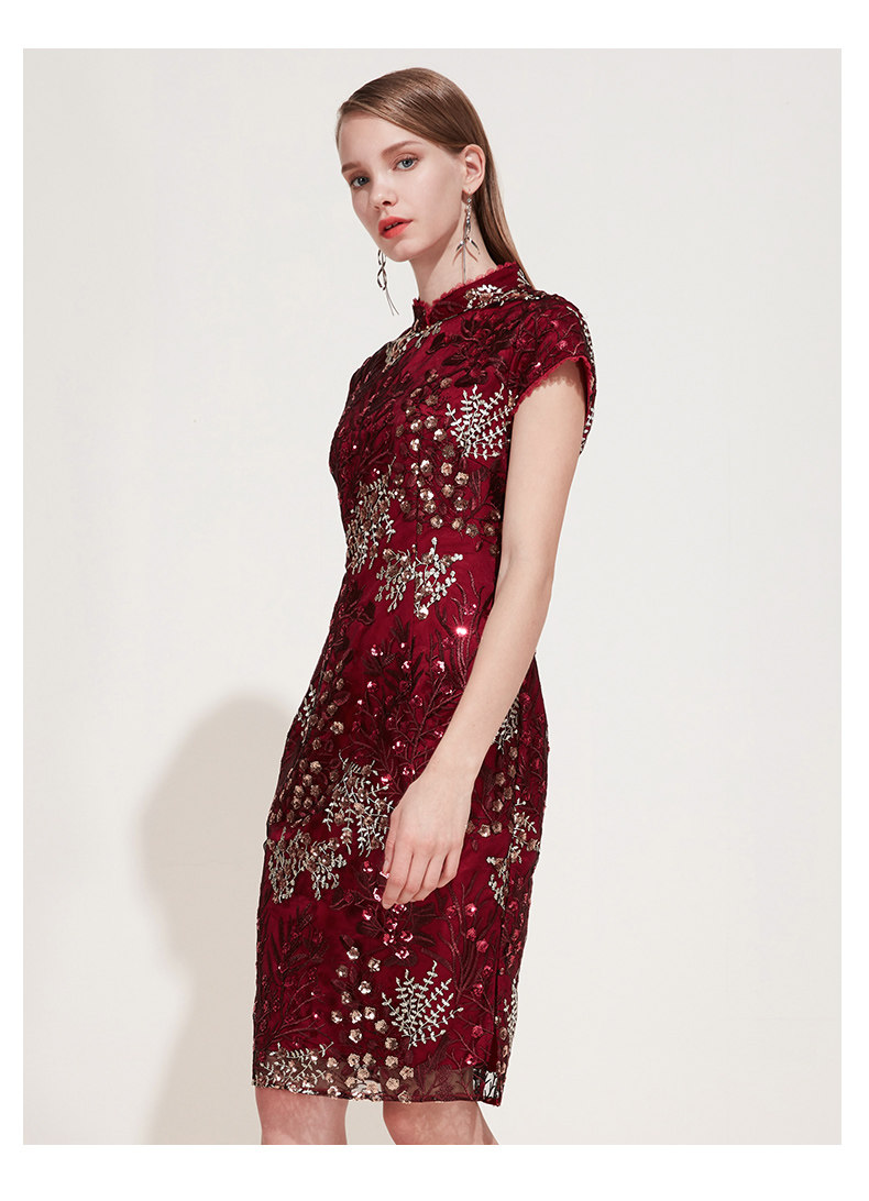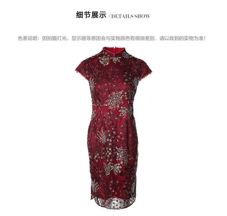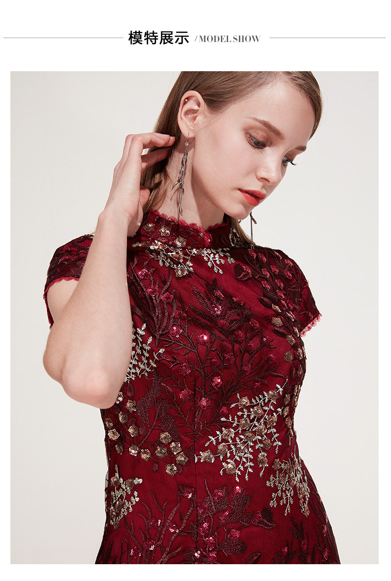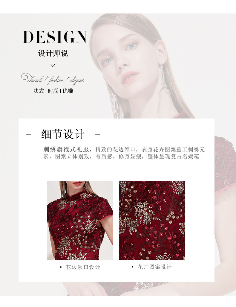 EITIE爱特爱品牌女装春季花边领口刺绣旗袍式礼服连衣裙5977606