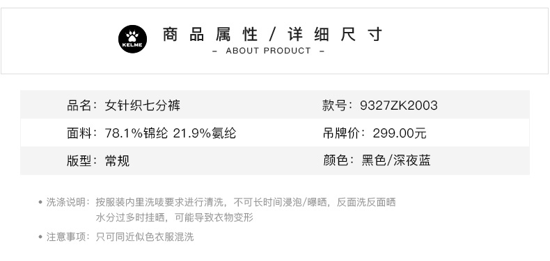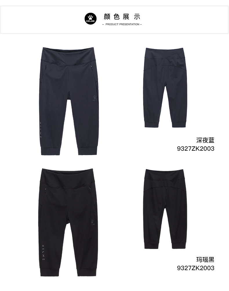 KELME卡尔美弹力针织七分裤女2023夏季新款凉感训练瑜伽运动裤子