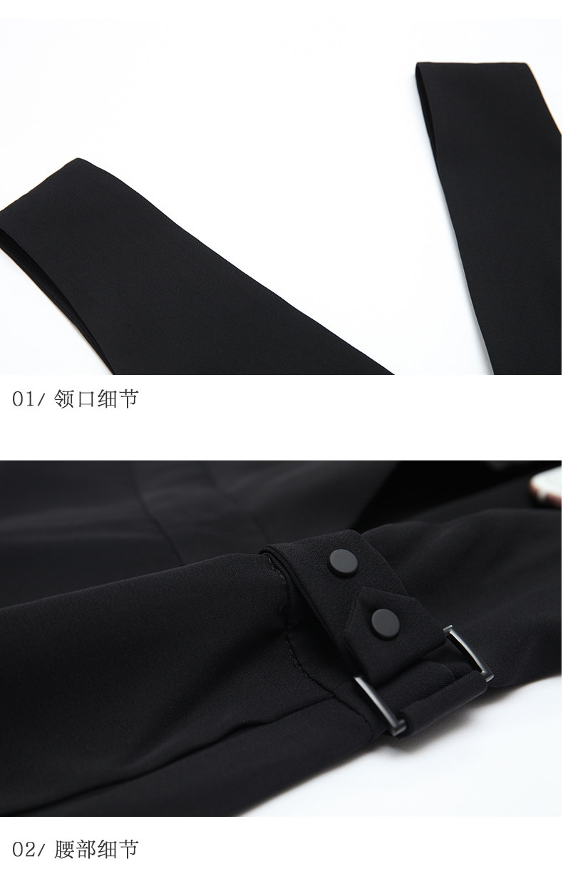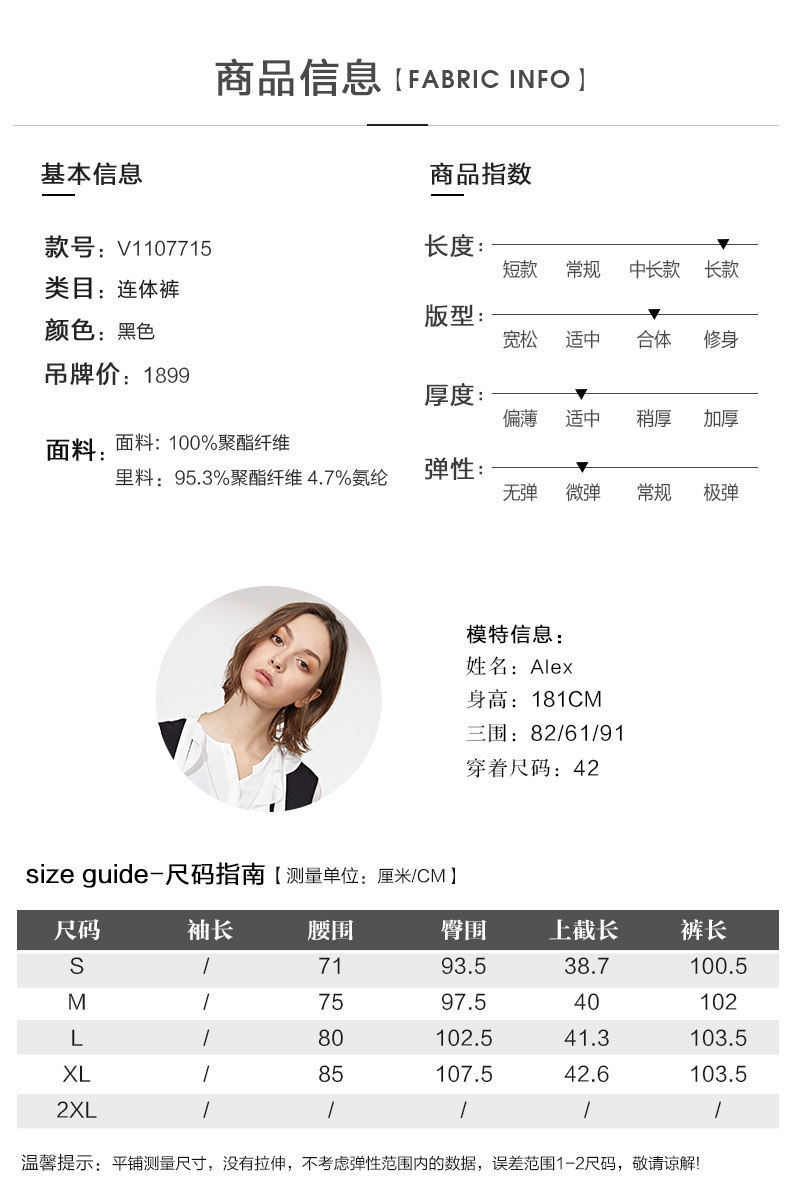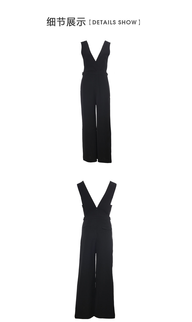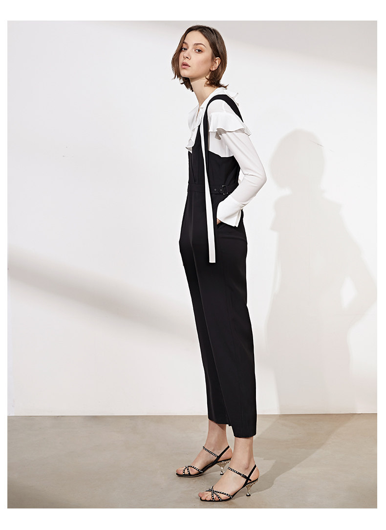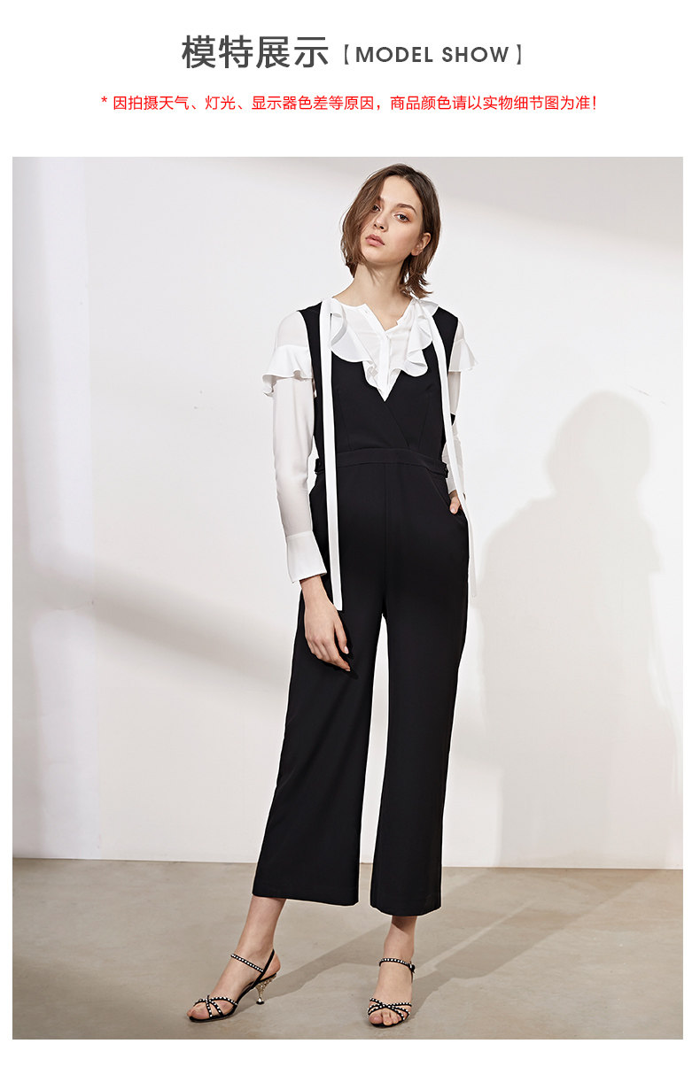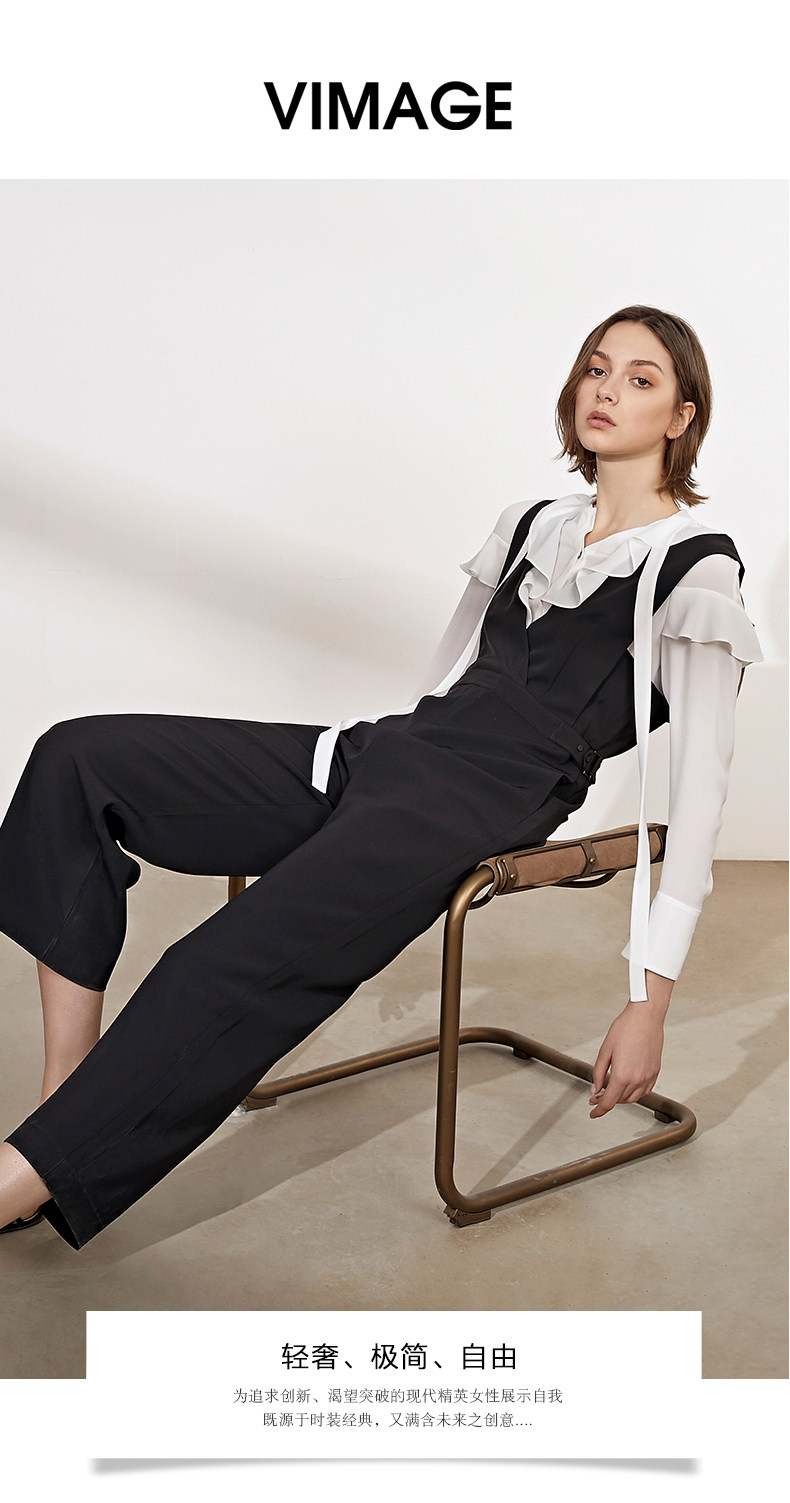 VIMAGE纬漫纪春季黑色商务时尚显瘦V领肩带连体裤V1107715