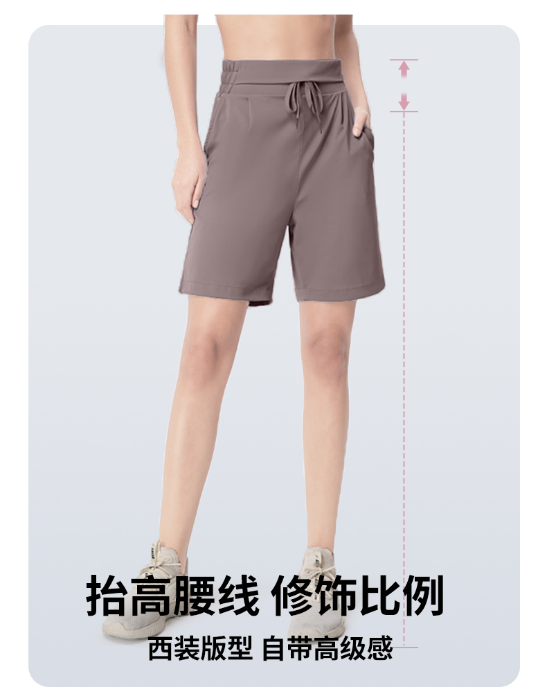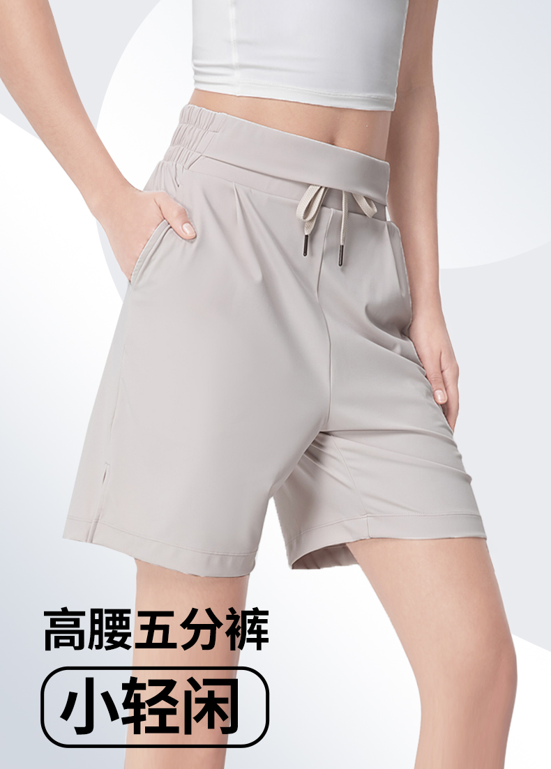 跃牌【明丽逸动】系列轻速运动短裤女高腰显瘦宽松休闲五分裤带口袋AL7988