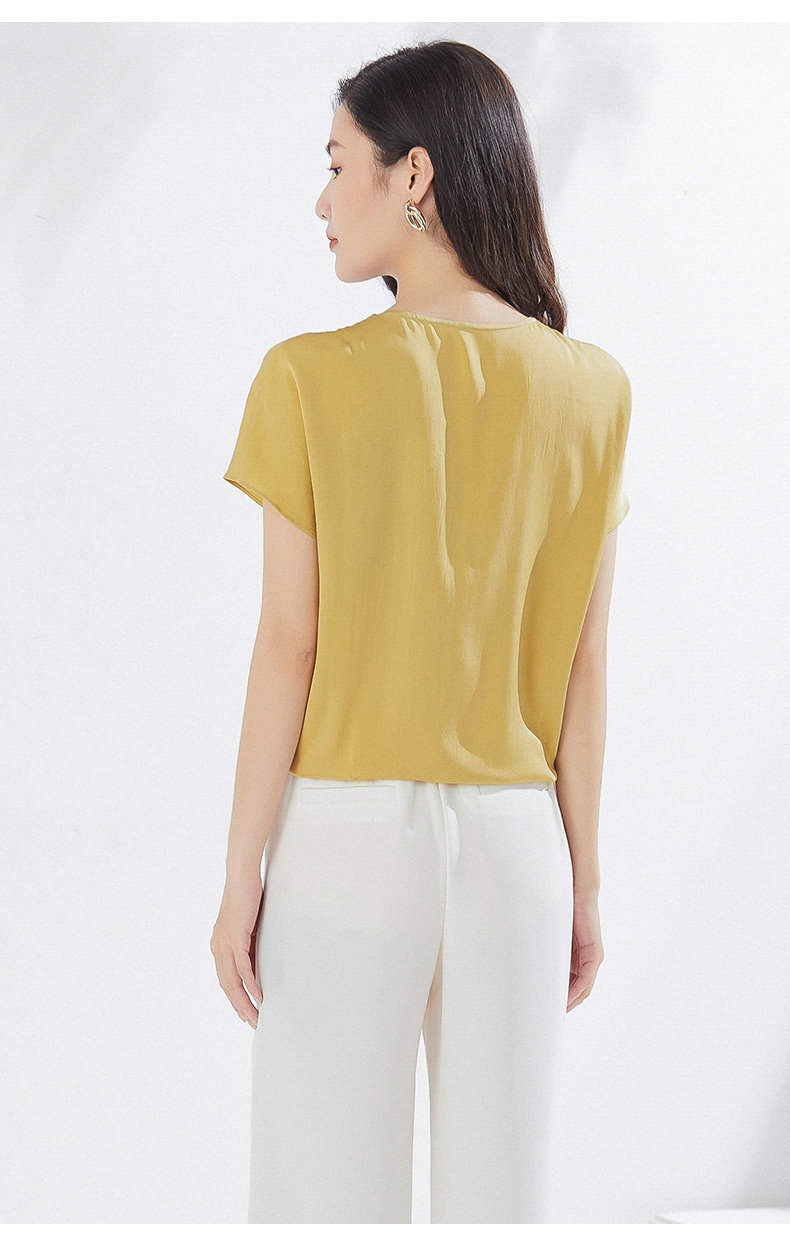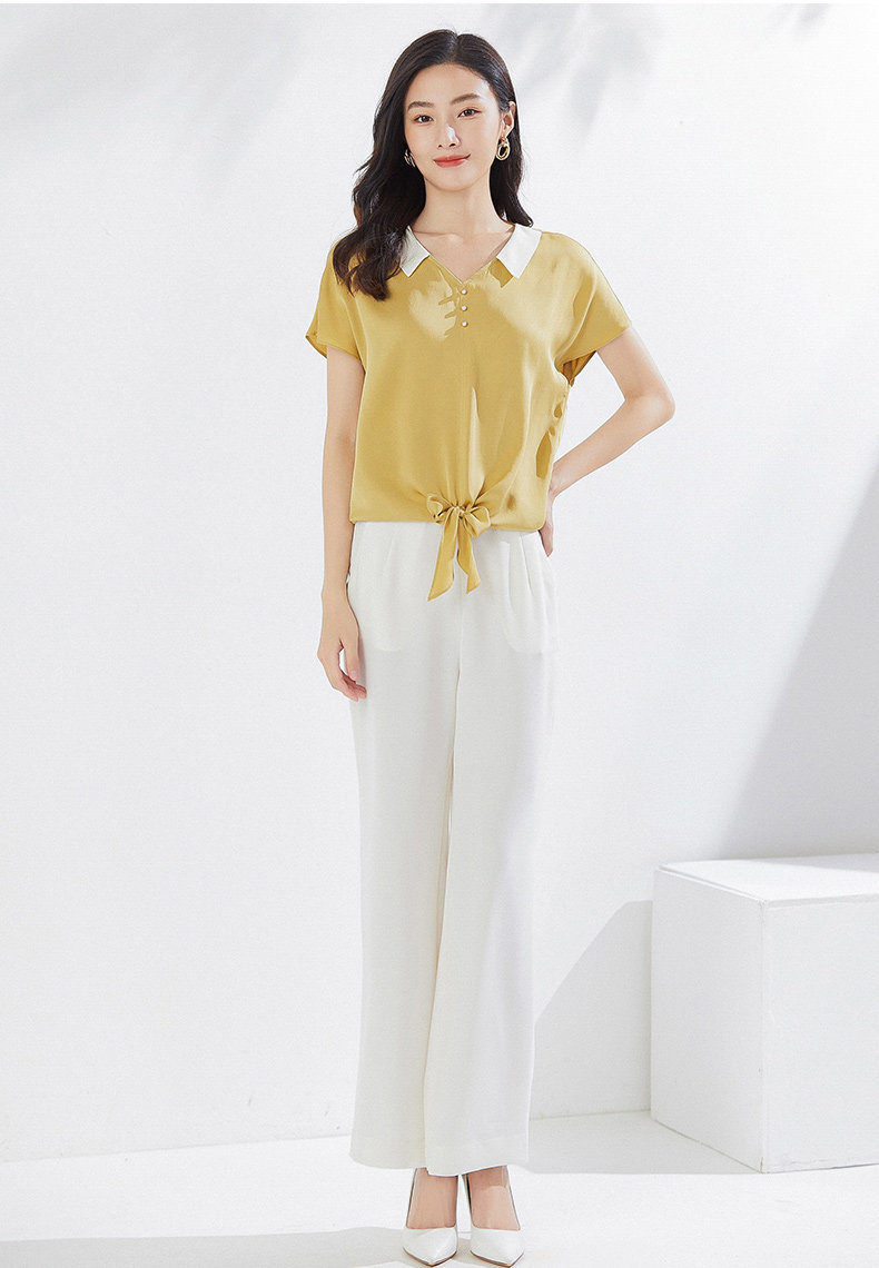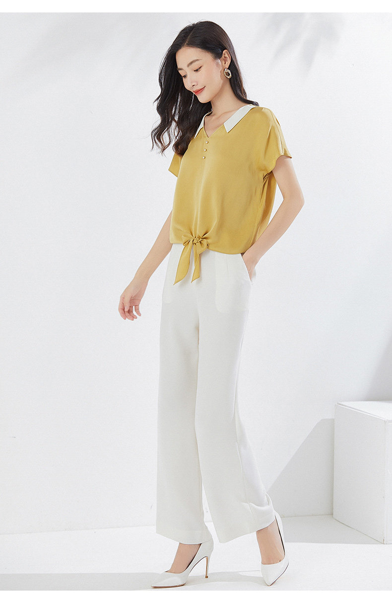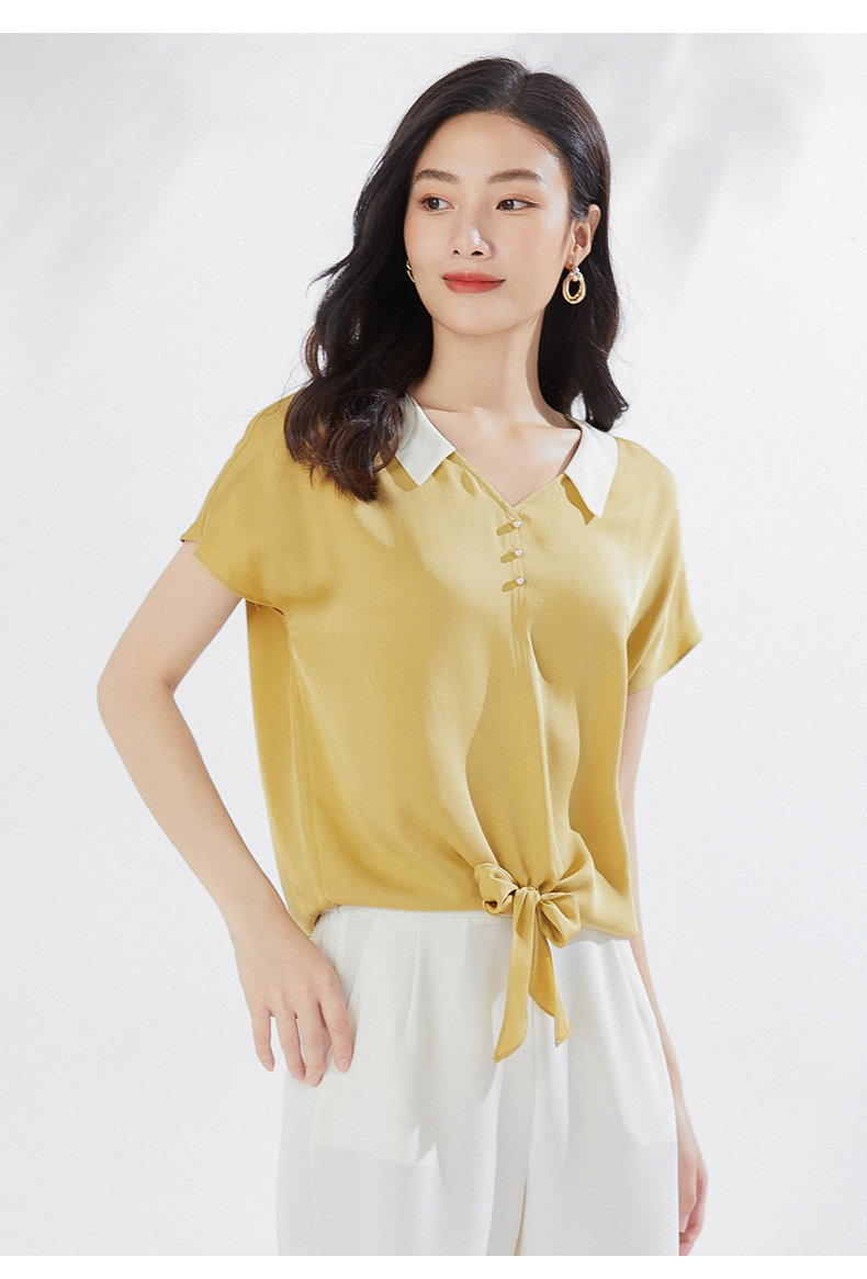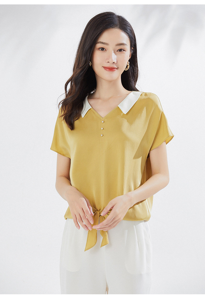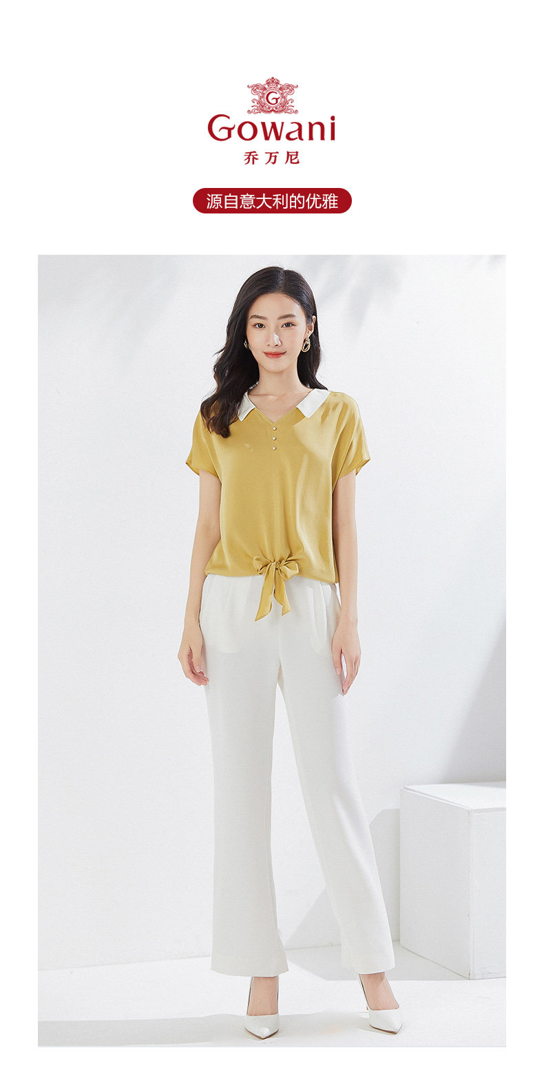 乔万尼真丝桑蚕丝衬衣v领撞色设计感小衫EI2C875
