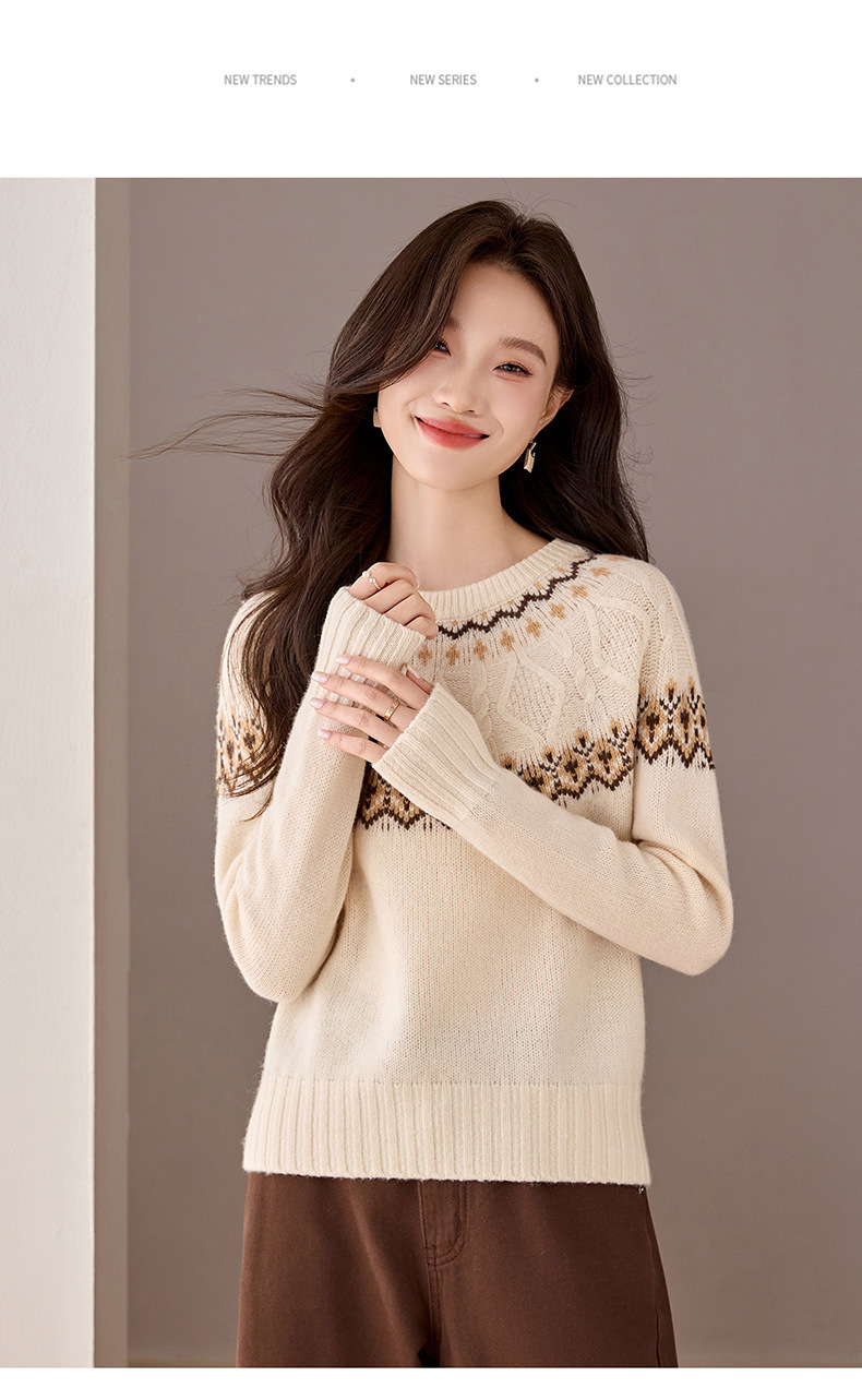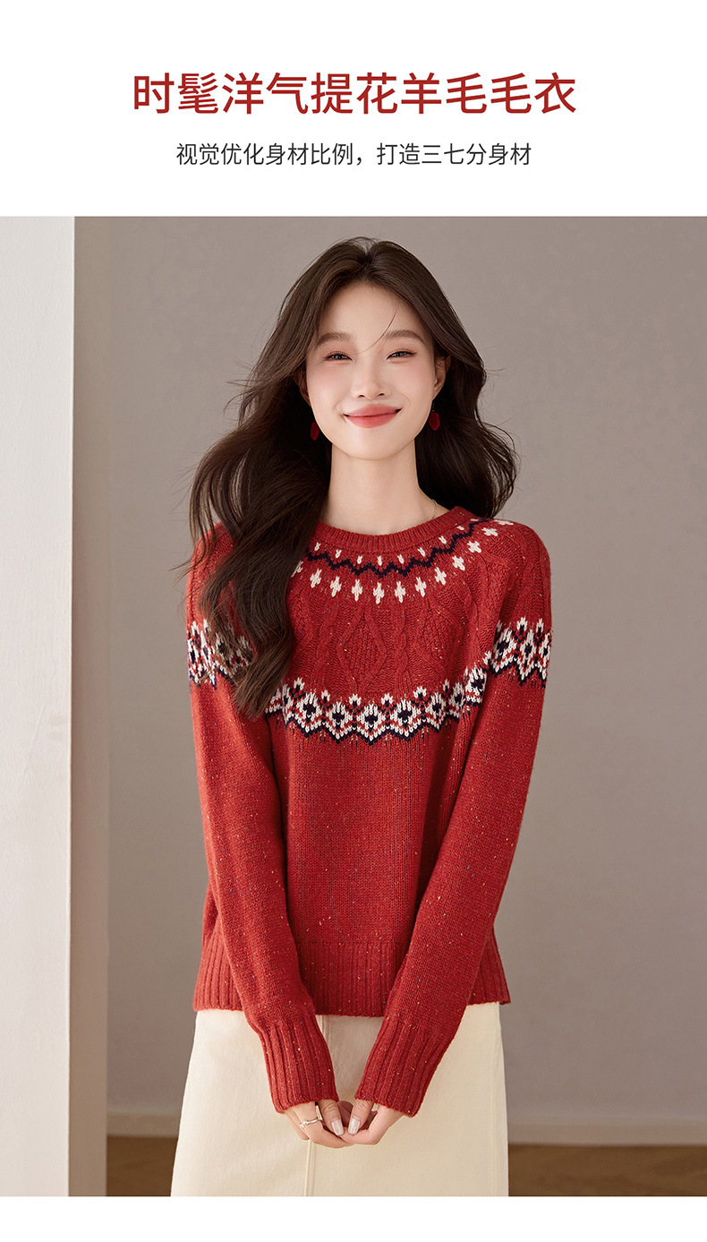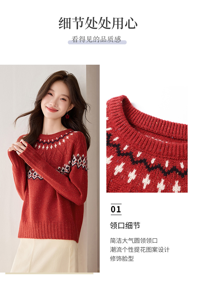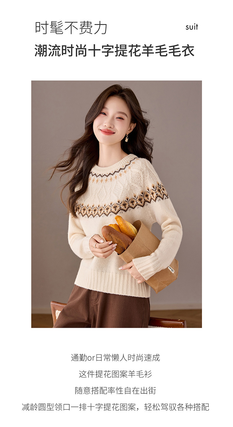 QF 20-1573麻花羊毛毛衣软糯圆领提花针织衫上衣 商品图4