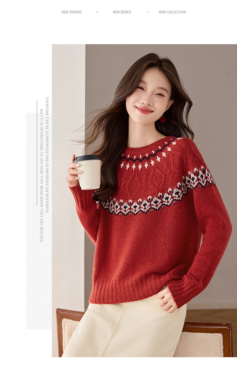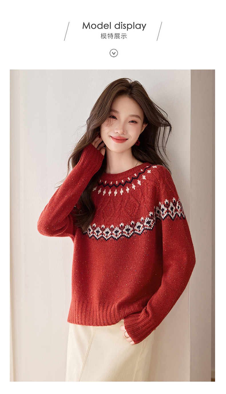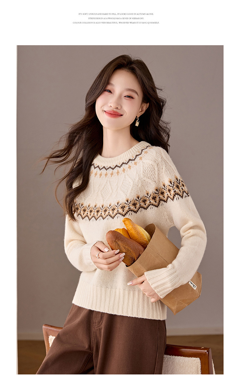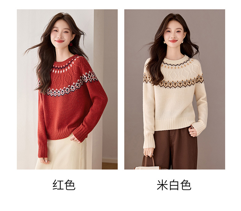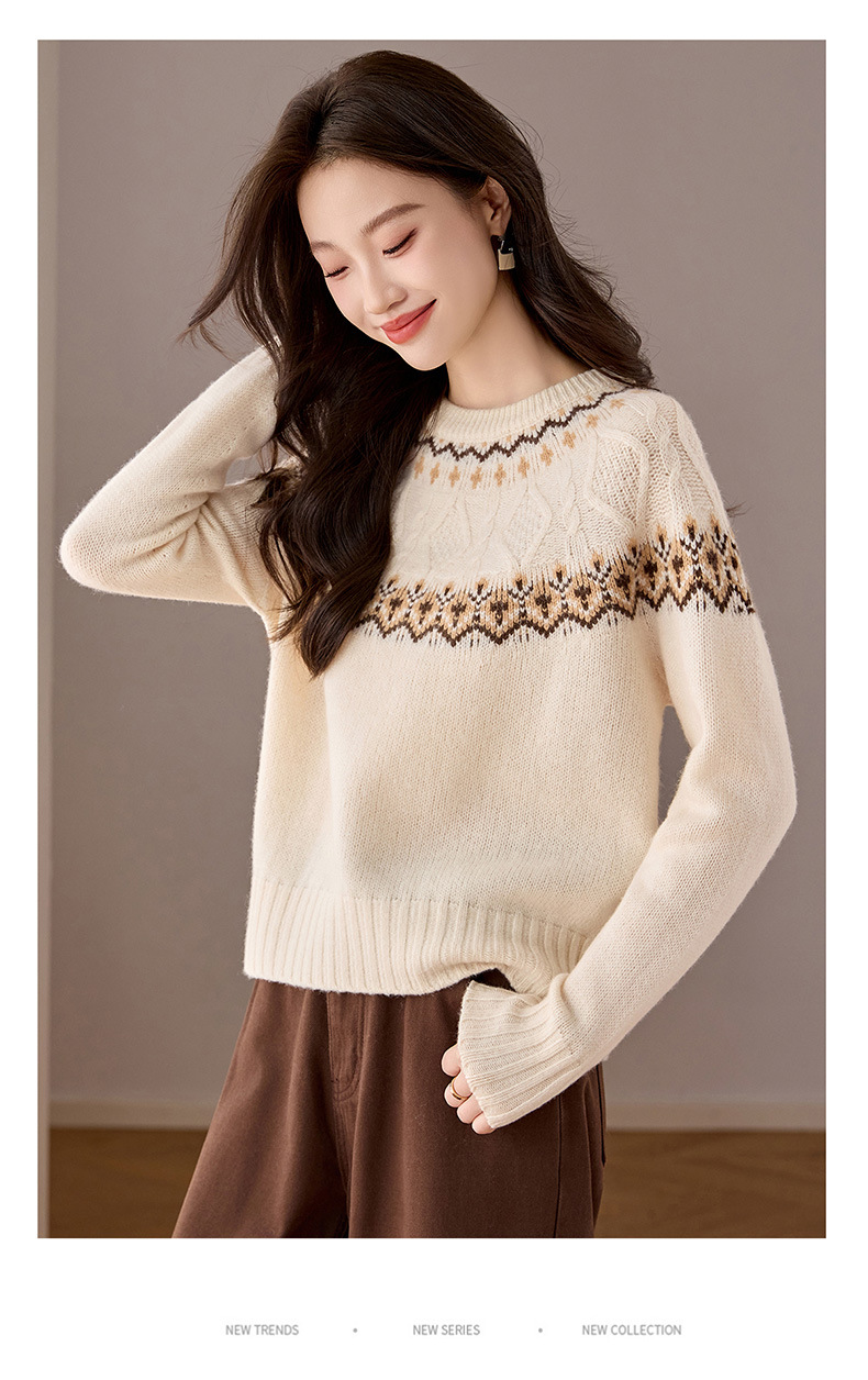 QF 20-1573麻花羊毛毛衣软糯圆领提花针织衫上衣 商品图4