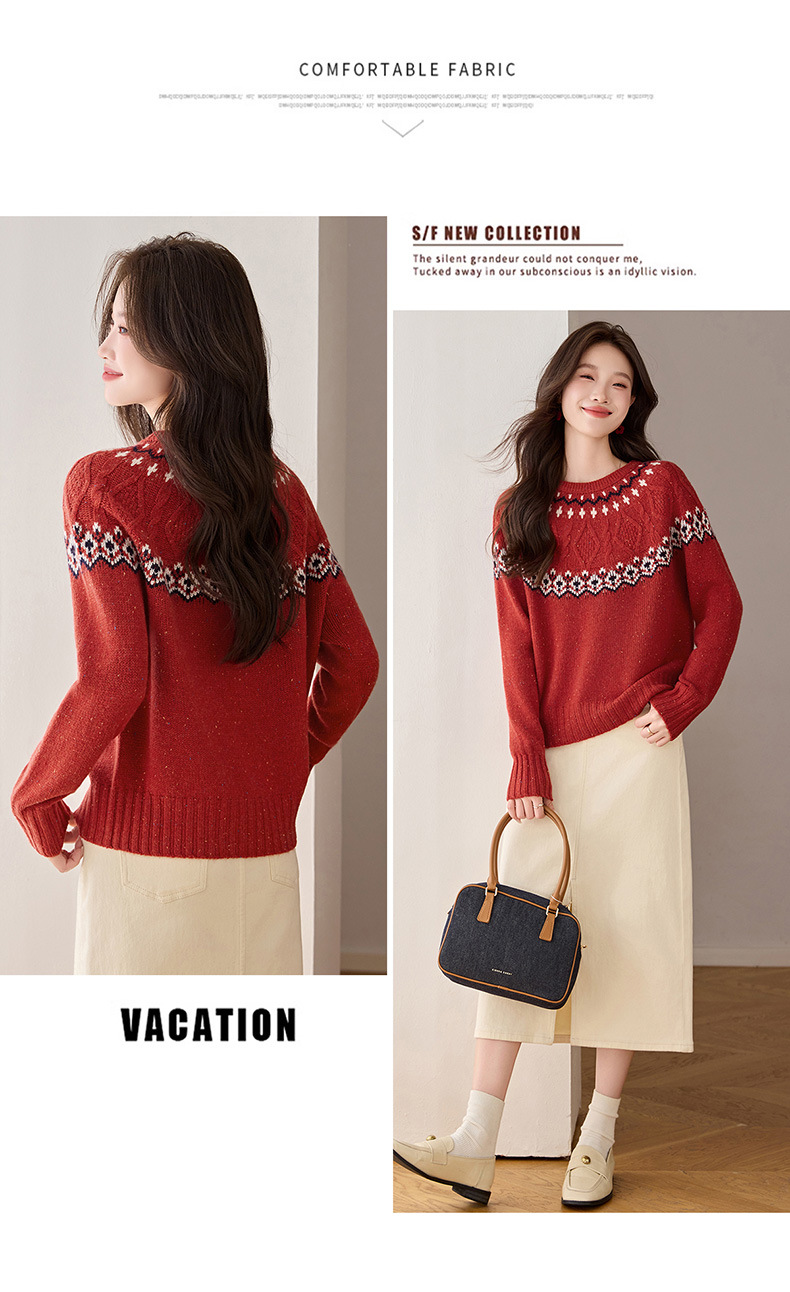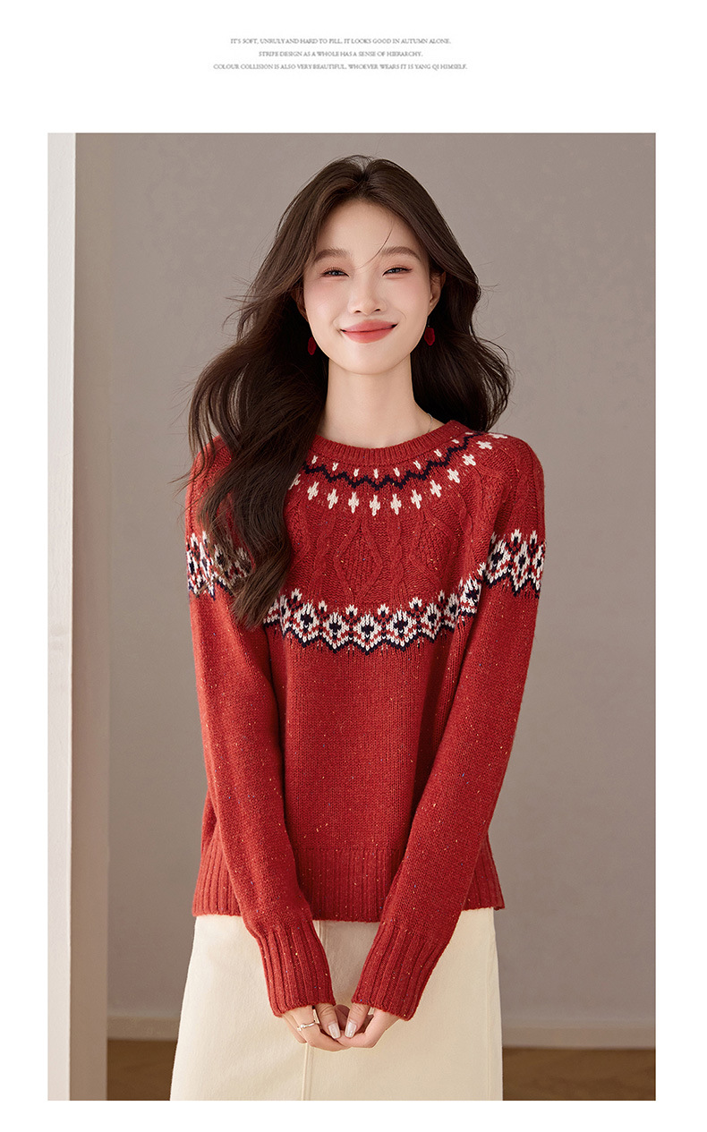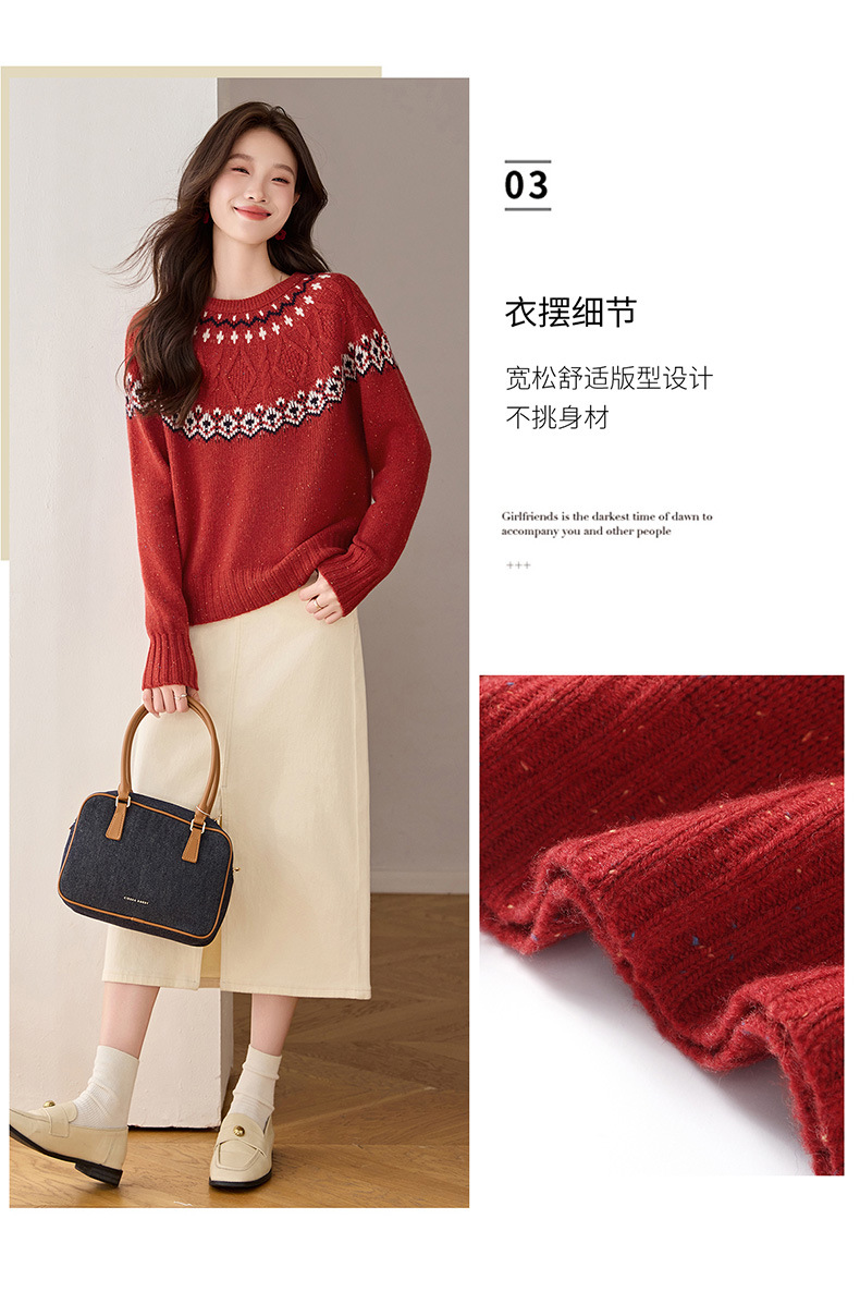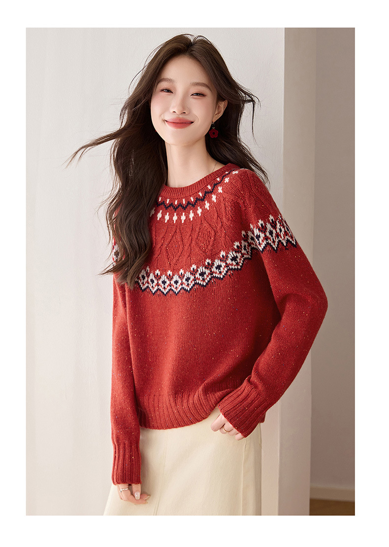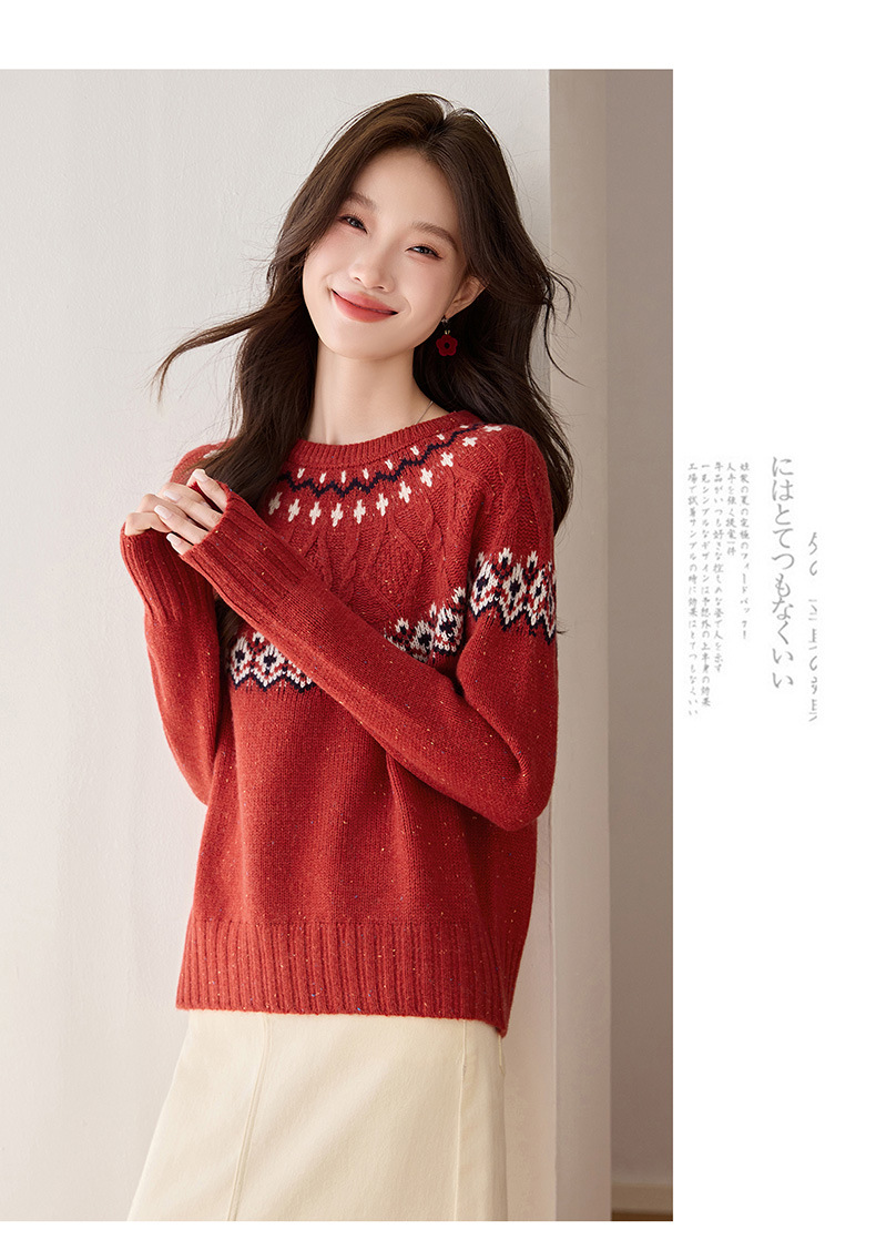 QF 20-1573麻花羊毛毛衣软糯圆领提花针织衫上衣 商品图4