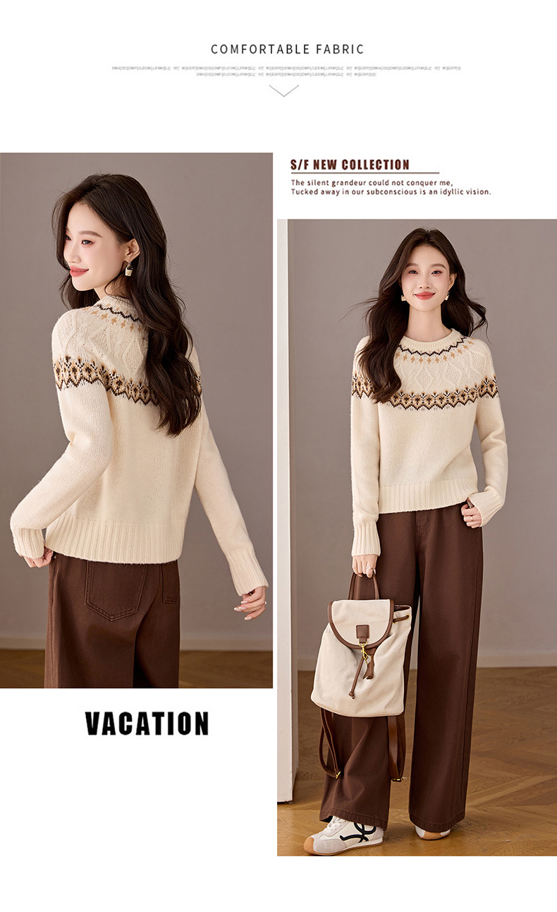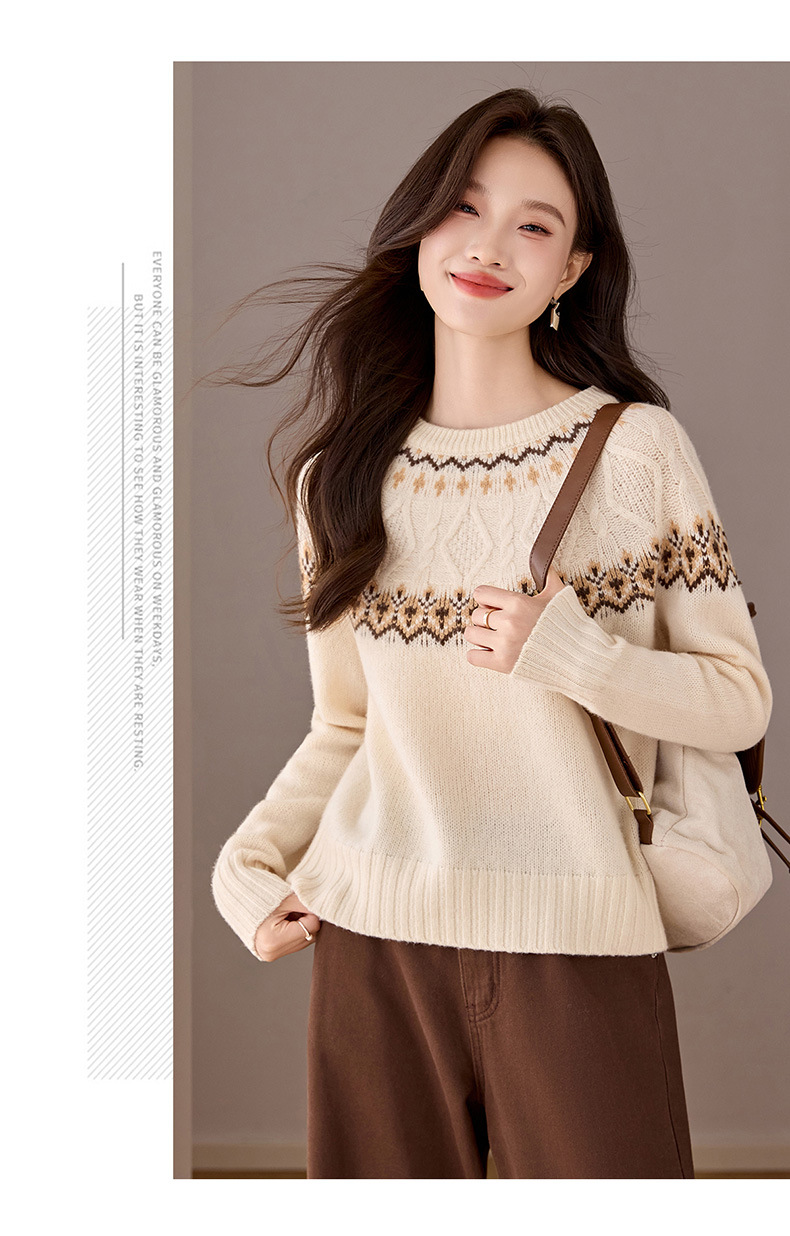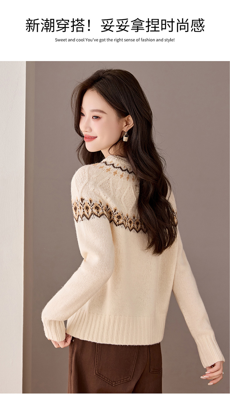 QF 20-1573麻花羊毛毛衣软糯圆领提花针织衫上衣 商品图3