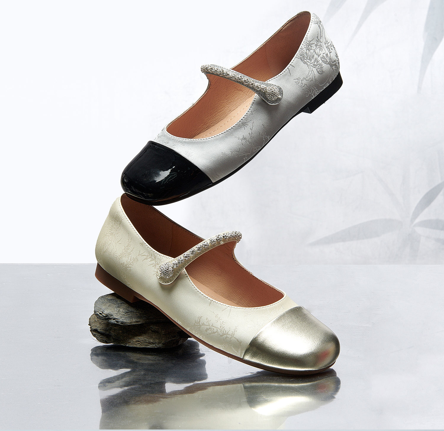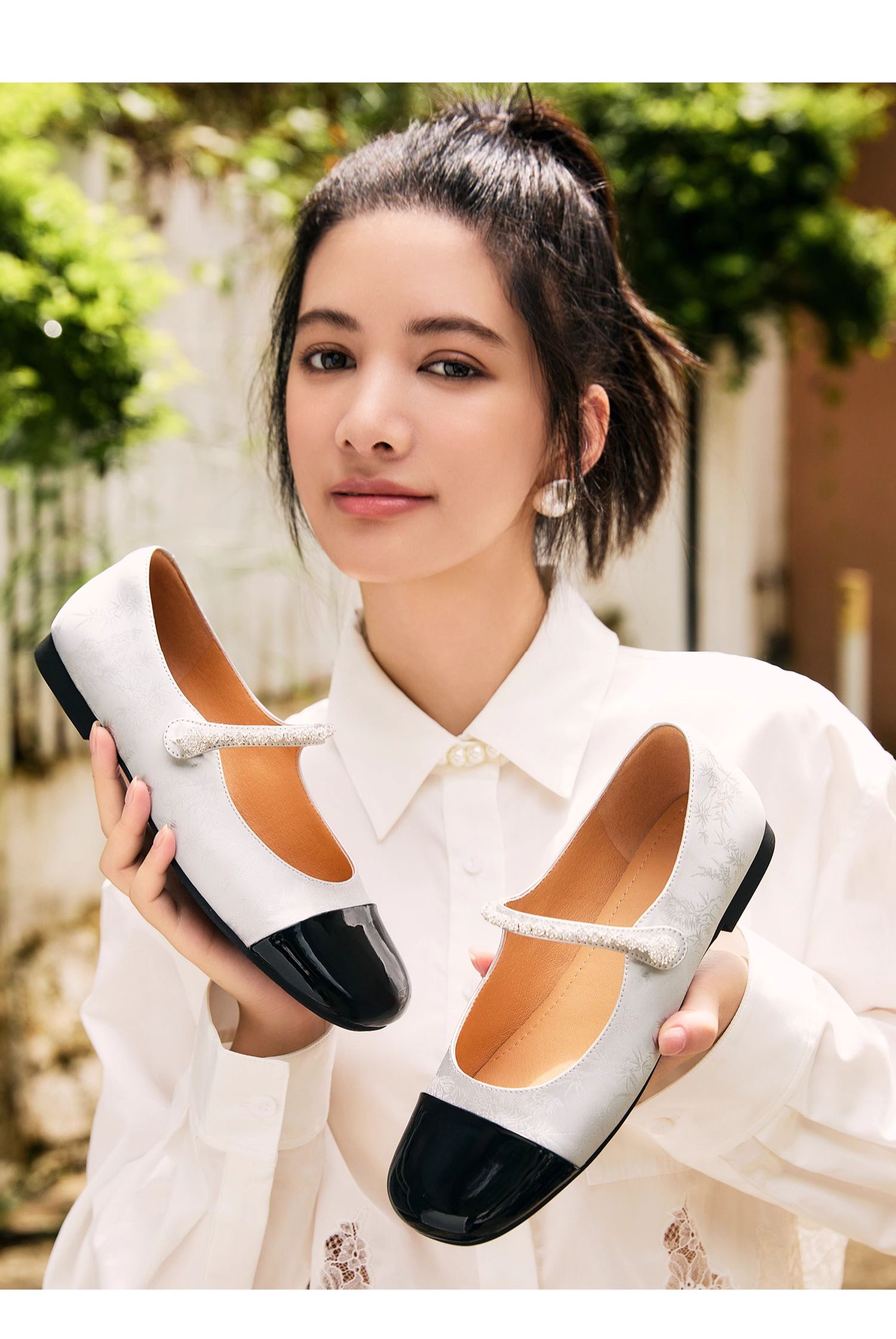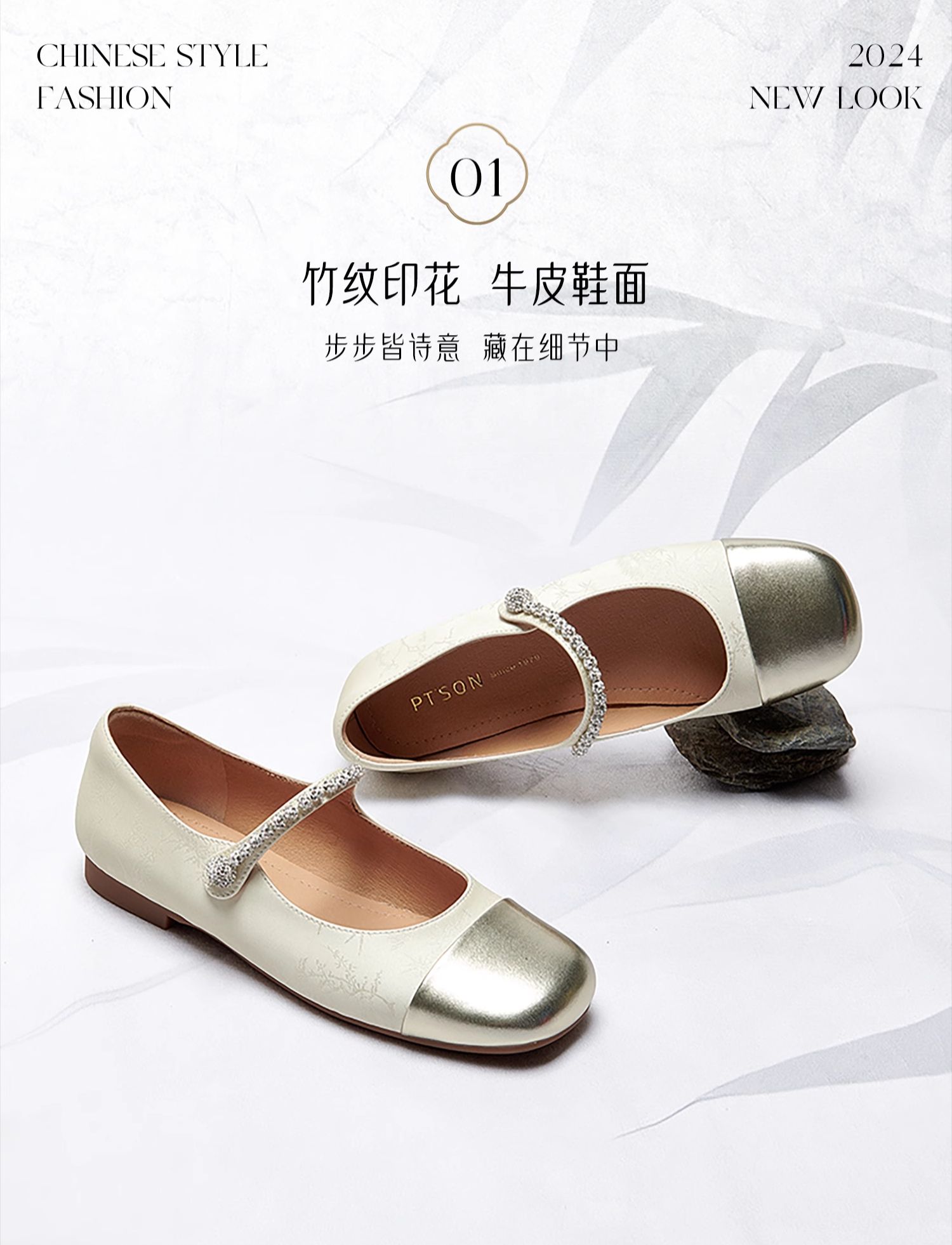 百田森PYQ2C666商场同款国风复古玛丽珍鞋秋新水钻牛皮中式平底单鞋