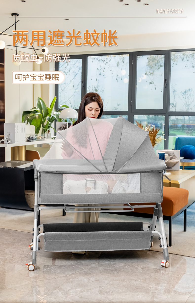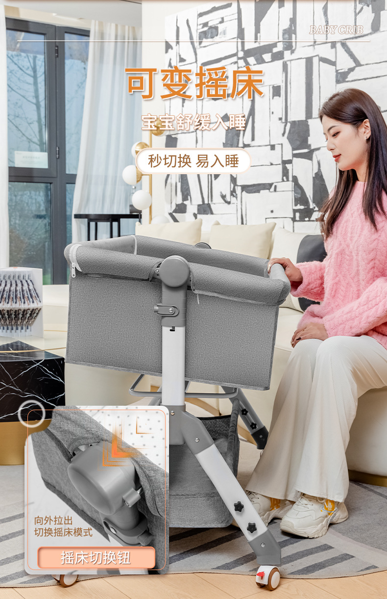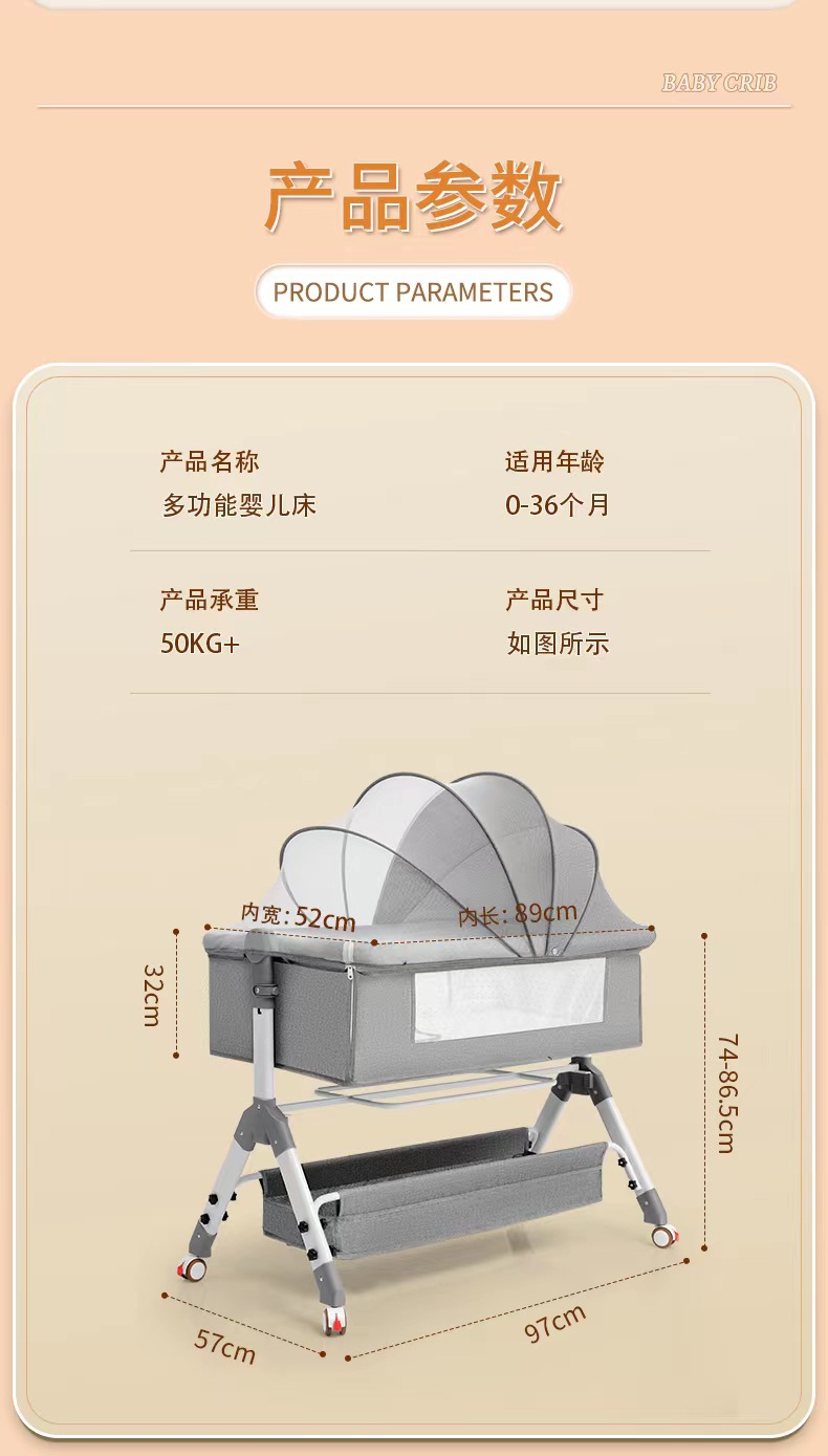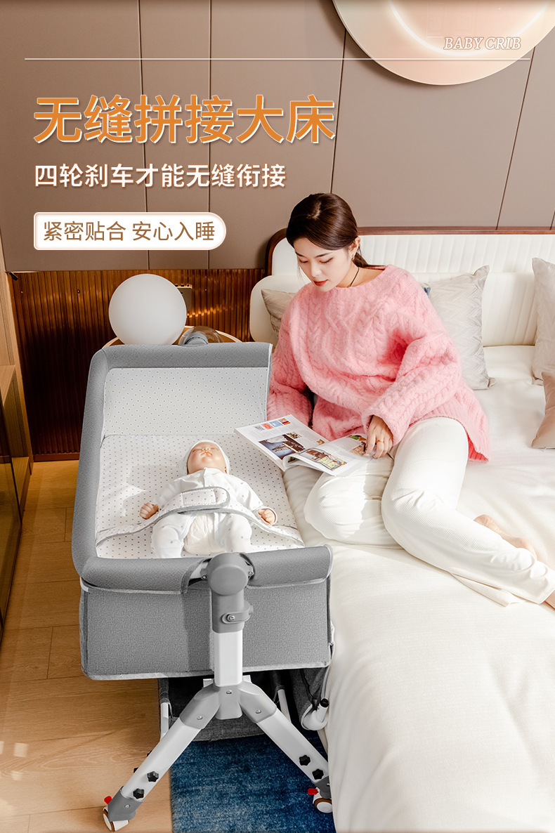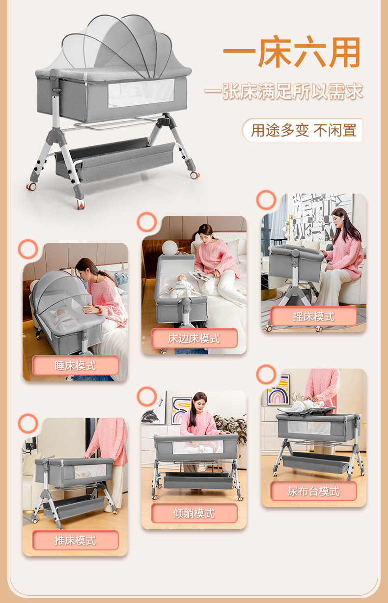 【宝宝安心睡,妈妈好帮手,搭配可拆卸尿布台】婴儿床新生儿床拼接大床 宝宝摇床bb儿童床摇篮床 多功能移动可折叠婴儿床-QQ