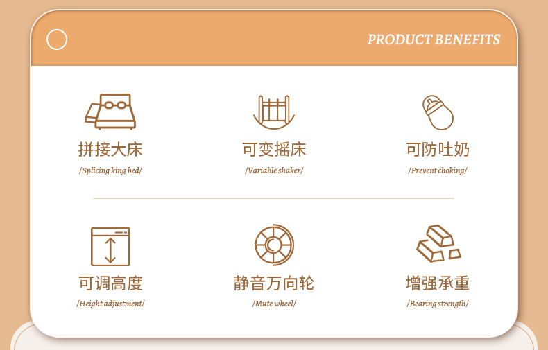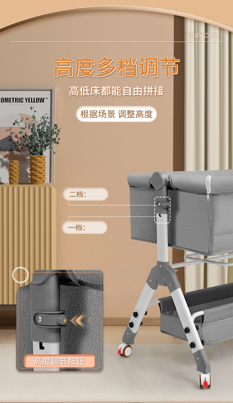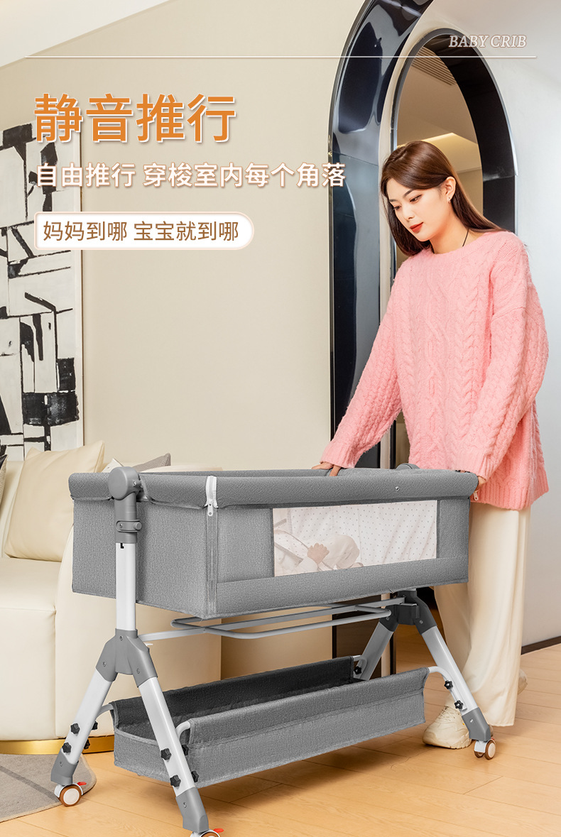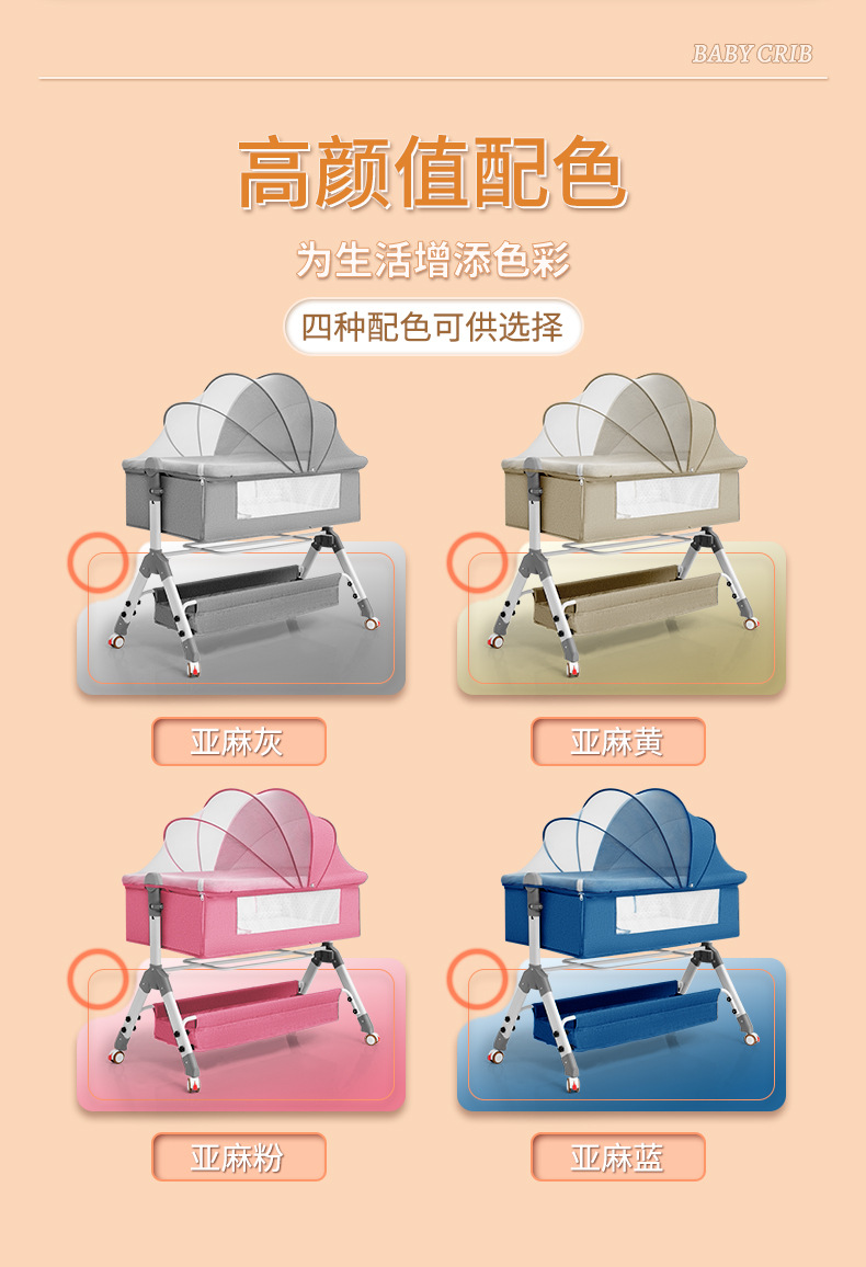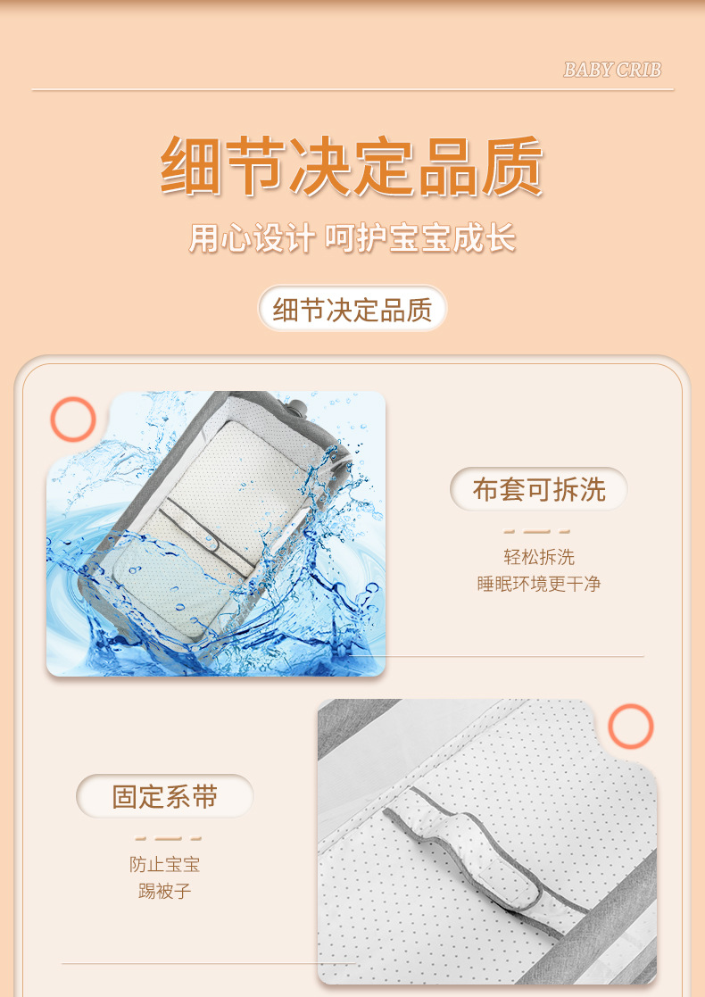 【宝宝安心睡,妈妈好帮手,搭配可拆卸尿布台】婴儿床新生儿床拼接大床 宝宝摇床bb儿童床摇篮床 多功能移动可折叠婴儿床-QQ