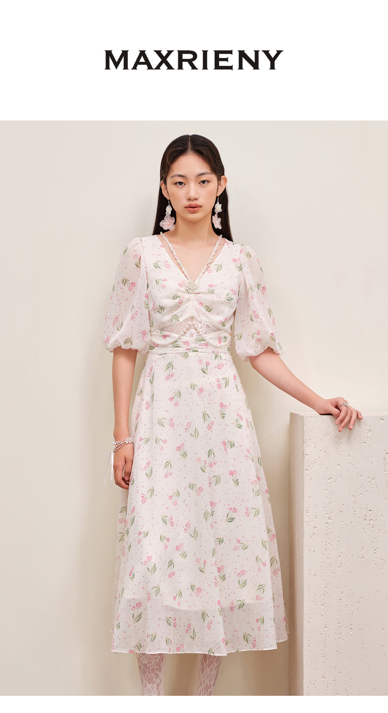 MAXRIENY欧式园艺风连衣裙裙子复古浪漫碎花长裙(货号:MS88DR540)