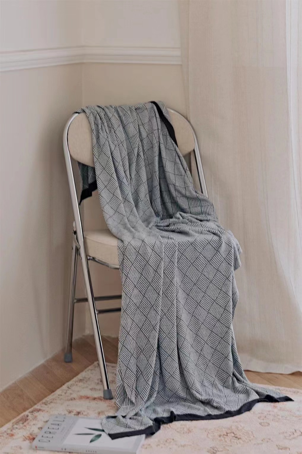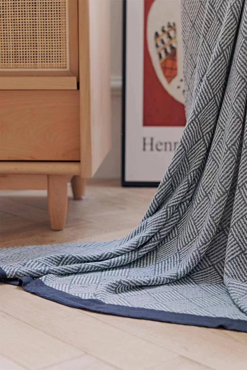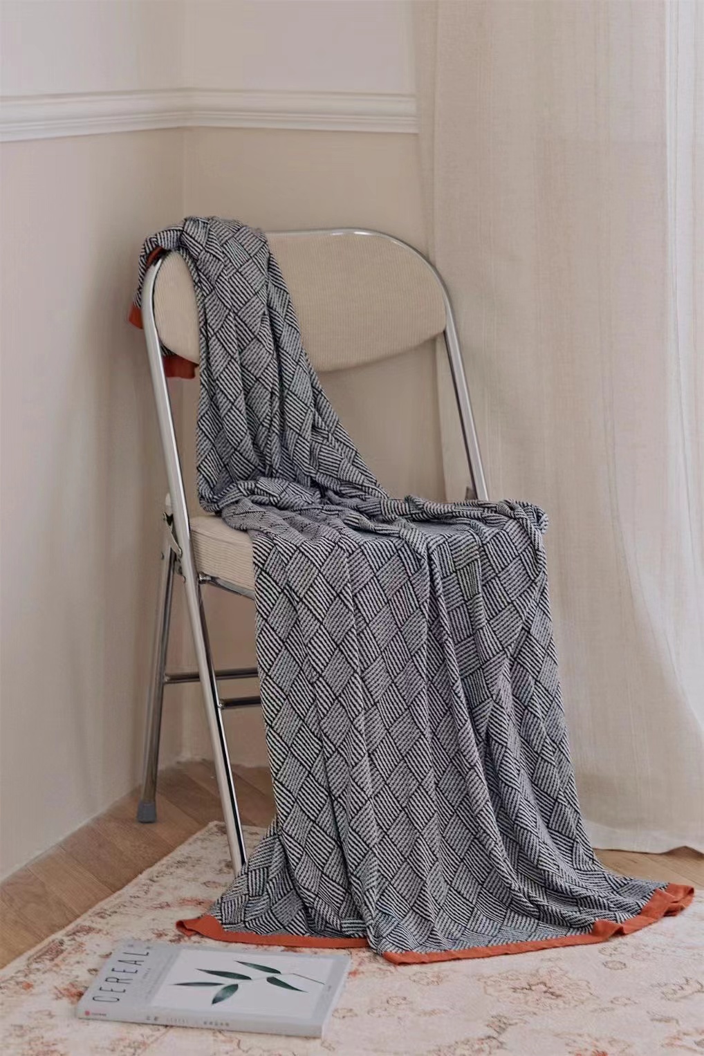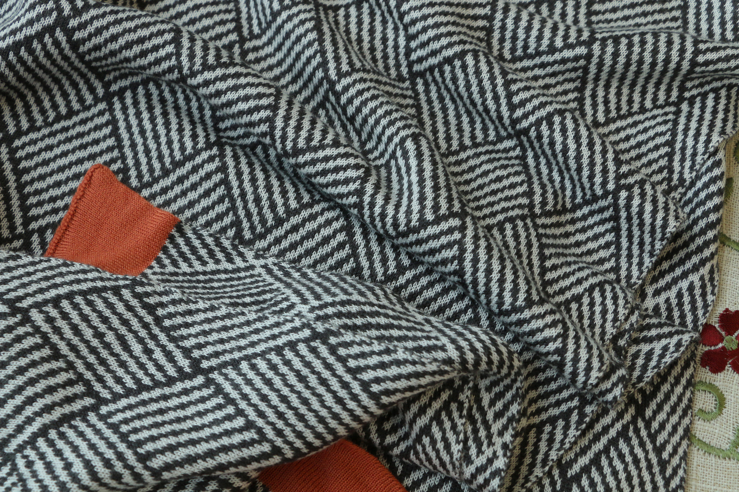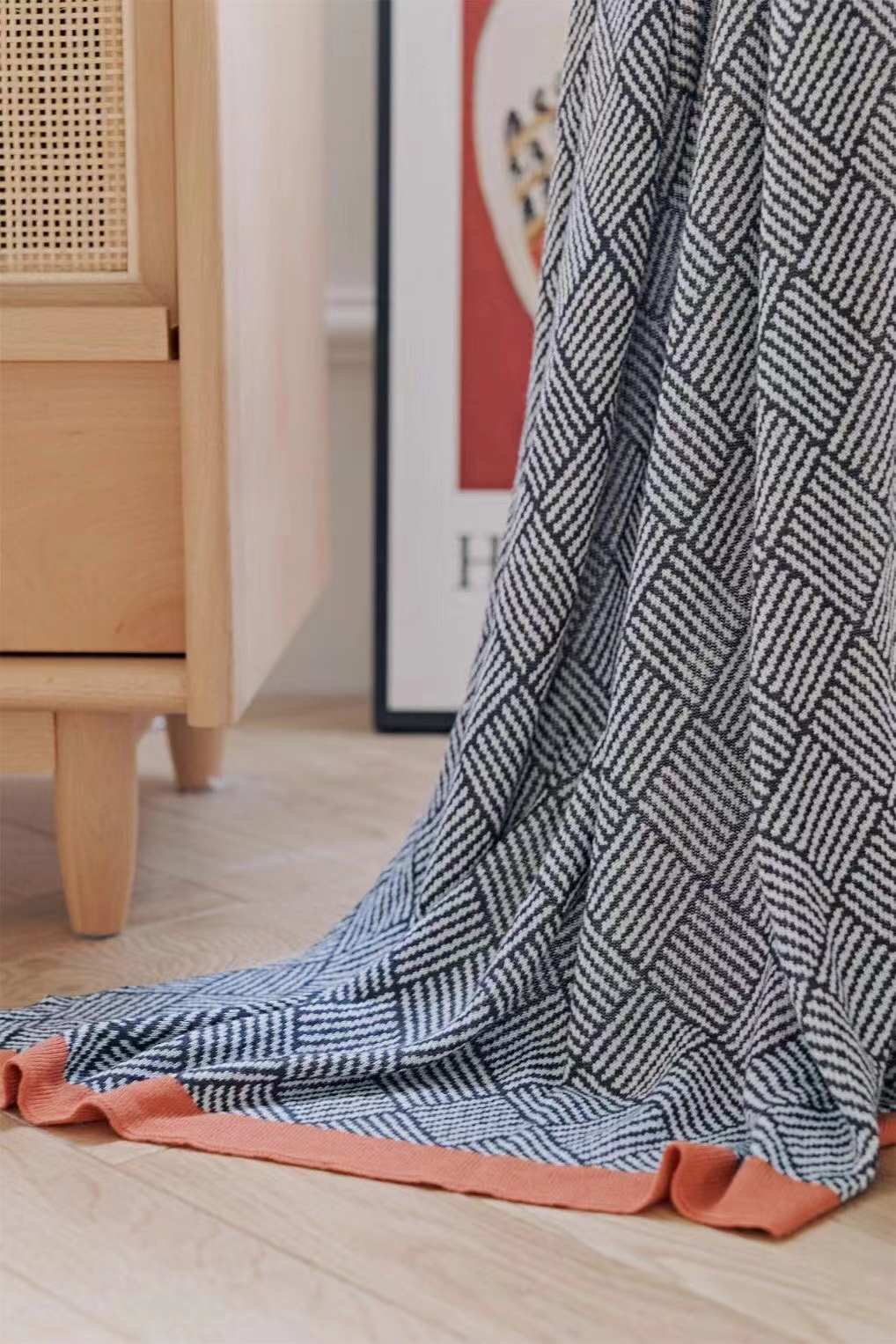 毯子做了针织工艺,可与床具、家具组合,提花肌理,颜值在线。