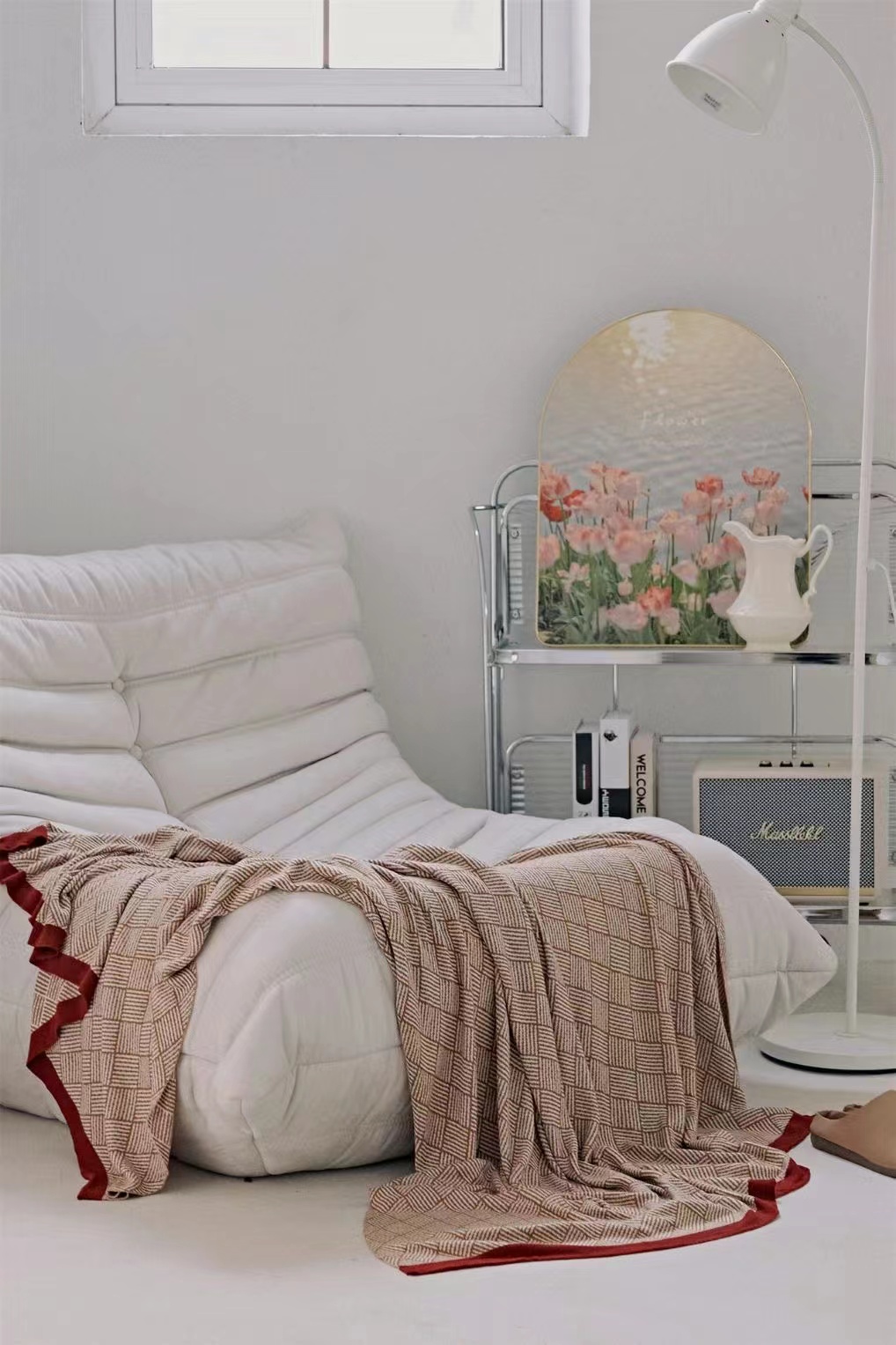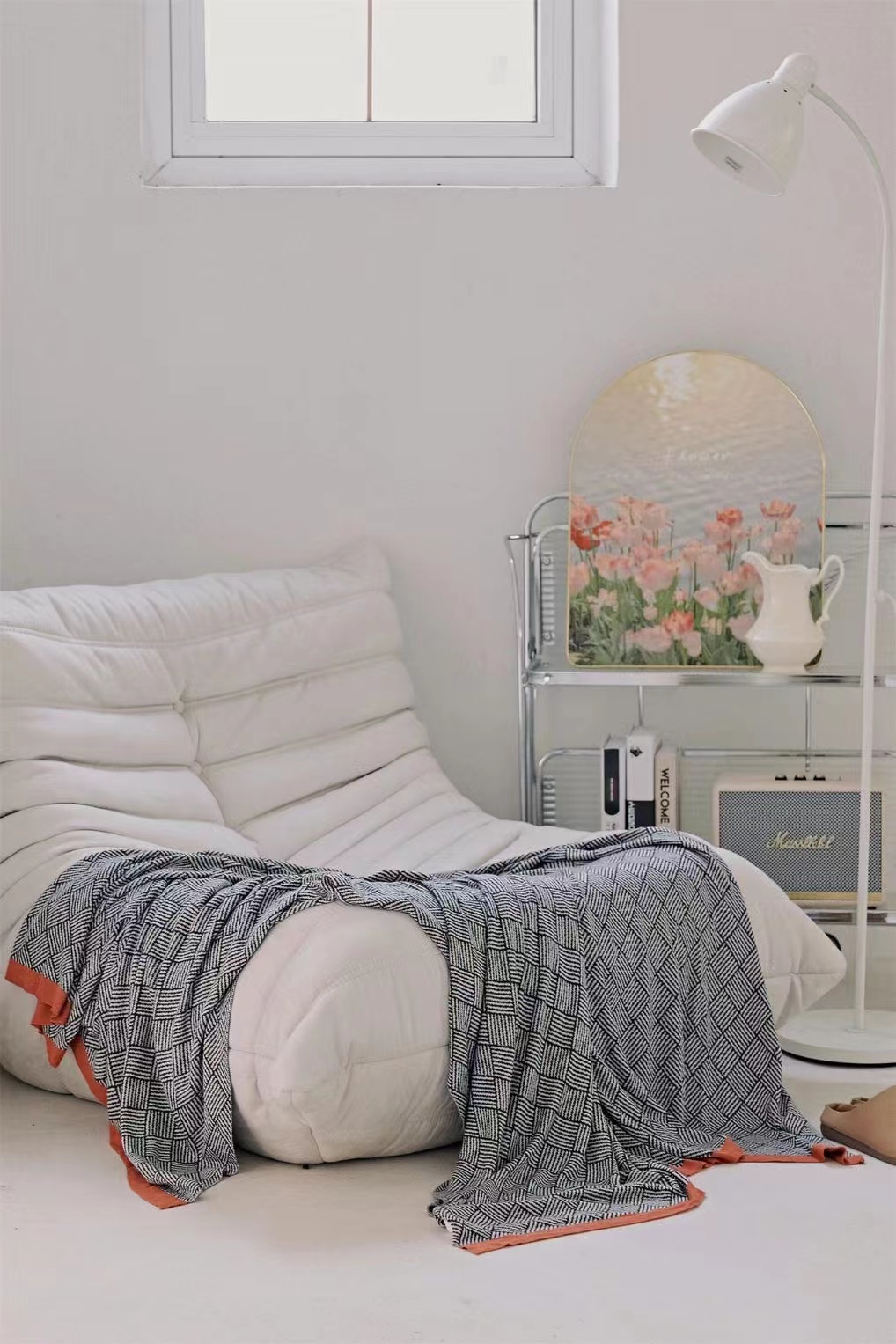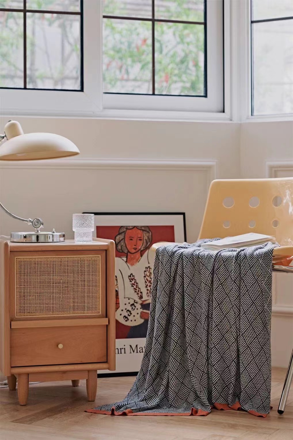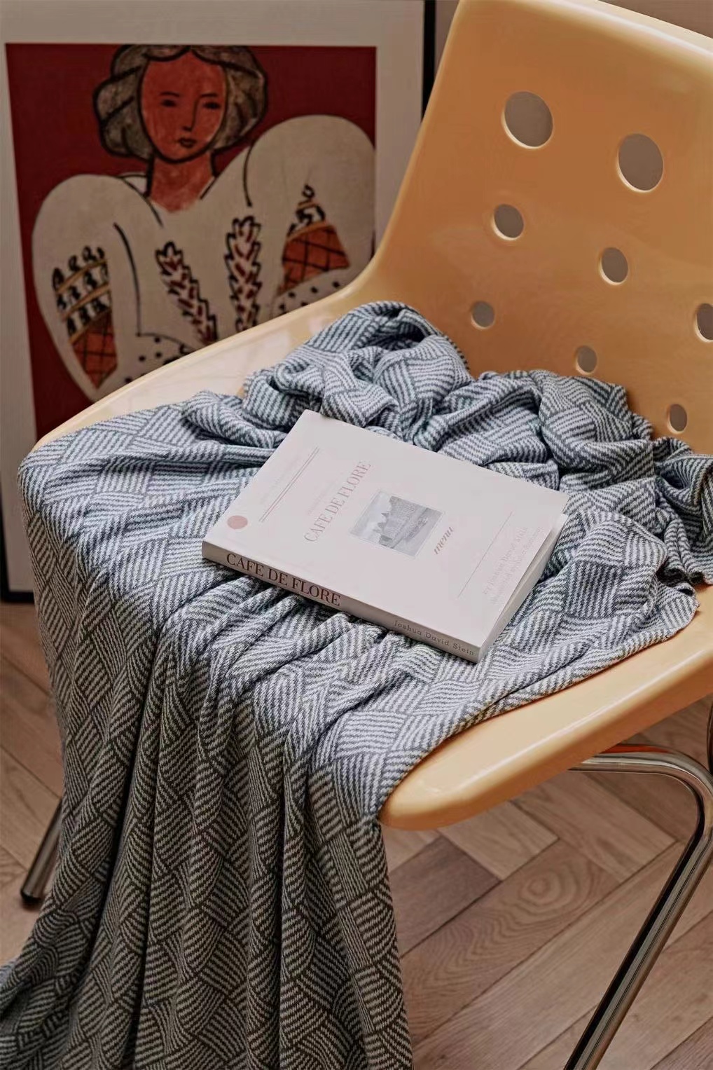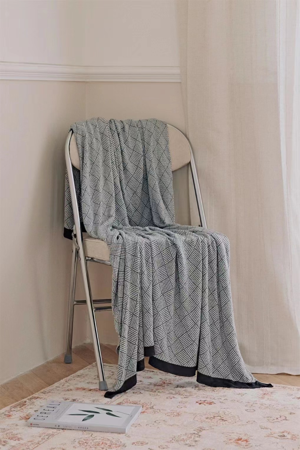 毯子做了针织工艺,可与床具、家具组合,提花肌理,颜值在线。