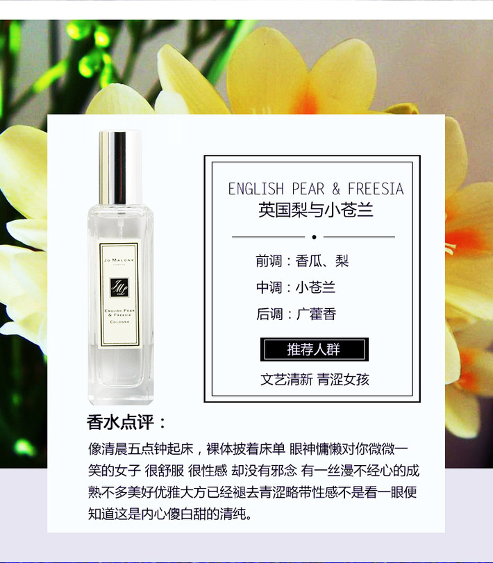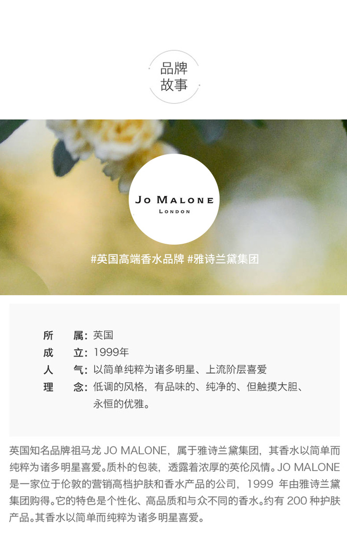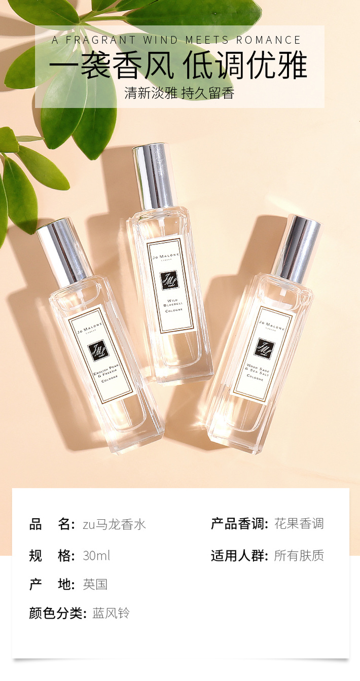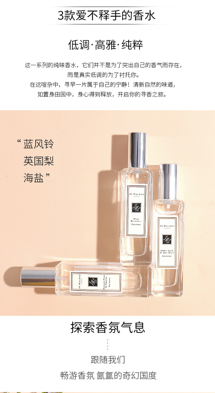 英国 JO MALONE/祖玛珑马龙 蓝风铃/海盐与鼠尾草/英国梨与小苍兰/橙花等香水