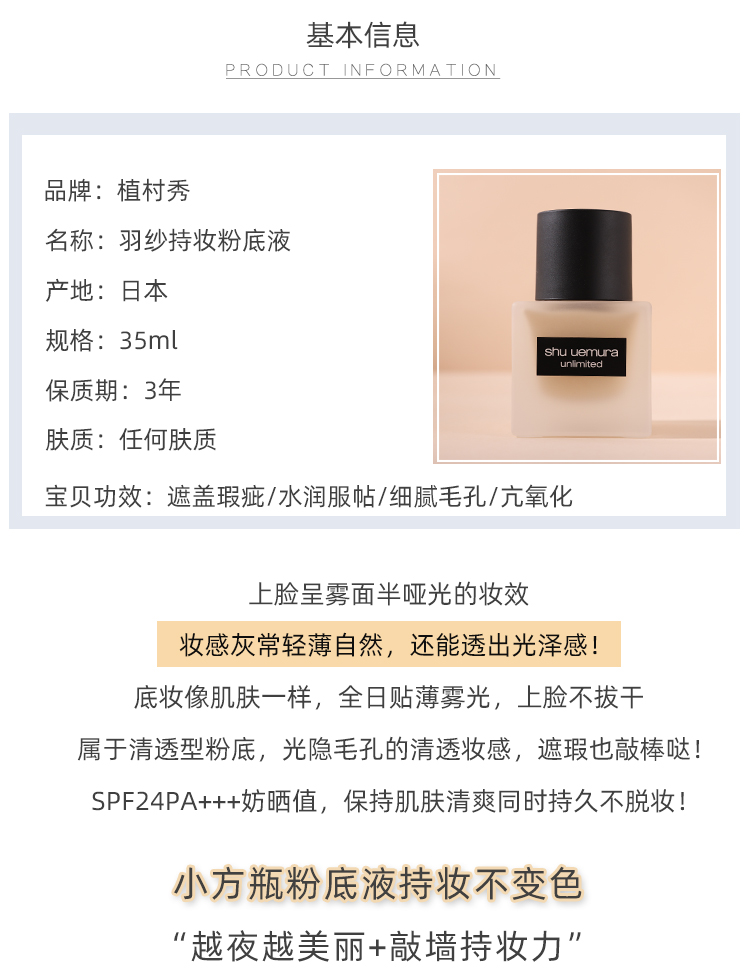 植村秀小方瓶羽纱持妆粉底液遮瑕控油抗氧化不脱妆