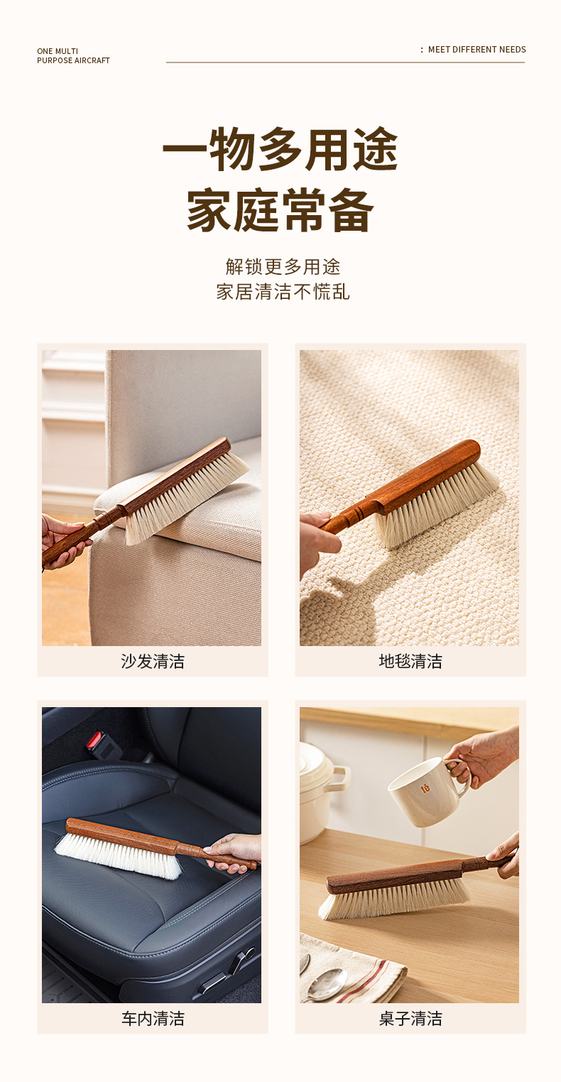 摩登主妇羊毛扫床刷子家用新款扫帚乌檀木软毛除尘刷床上打扫神器