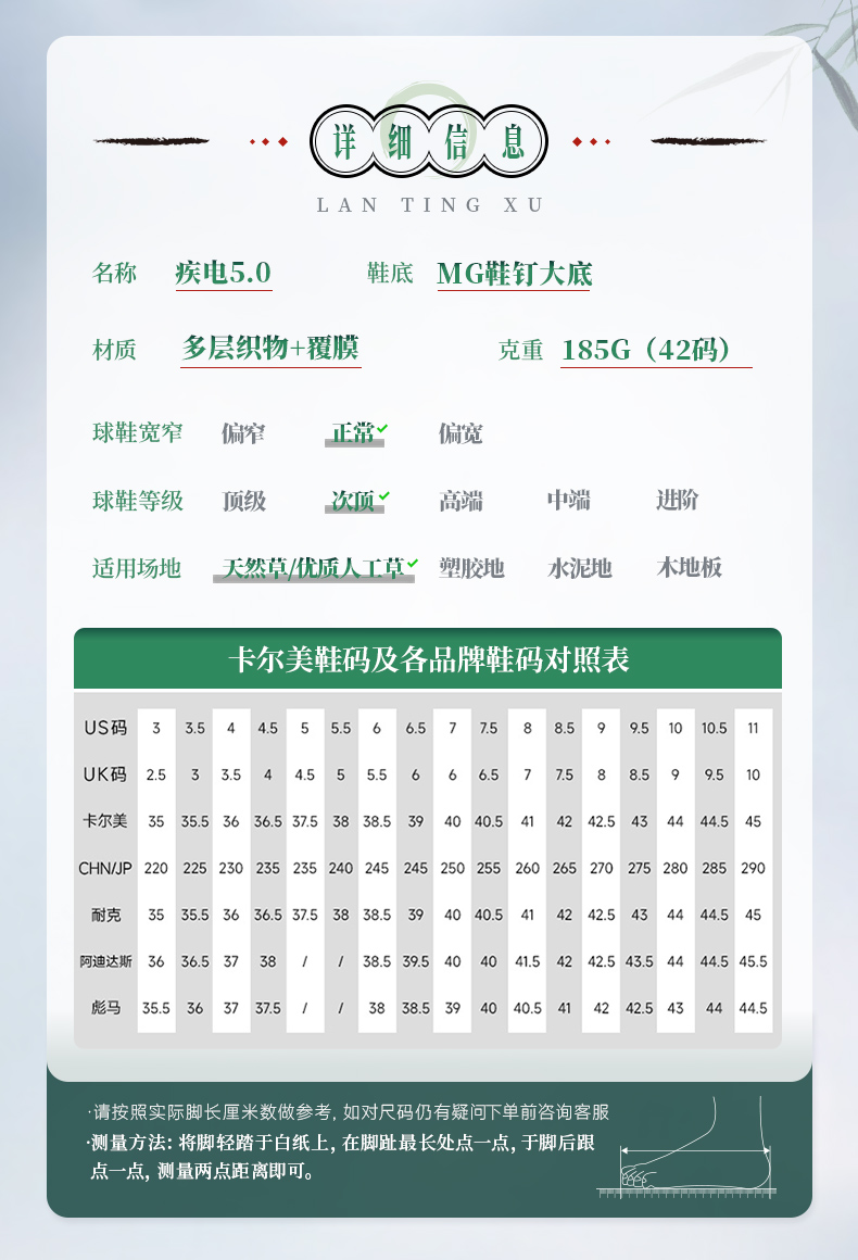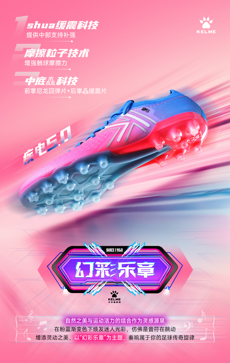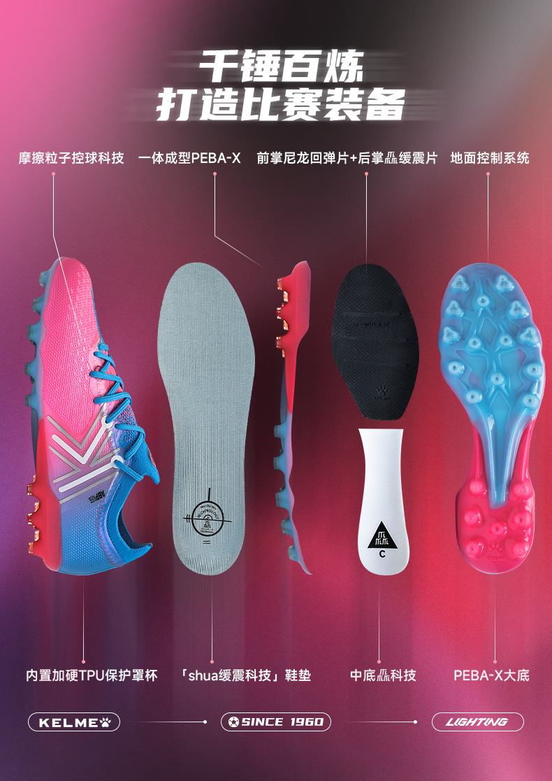 卡尔美新款兰亭序疾电5.0速度型MG次顶级男足球鞋男足球鞋