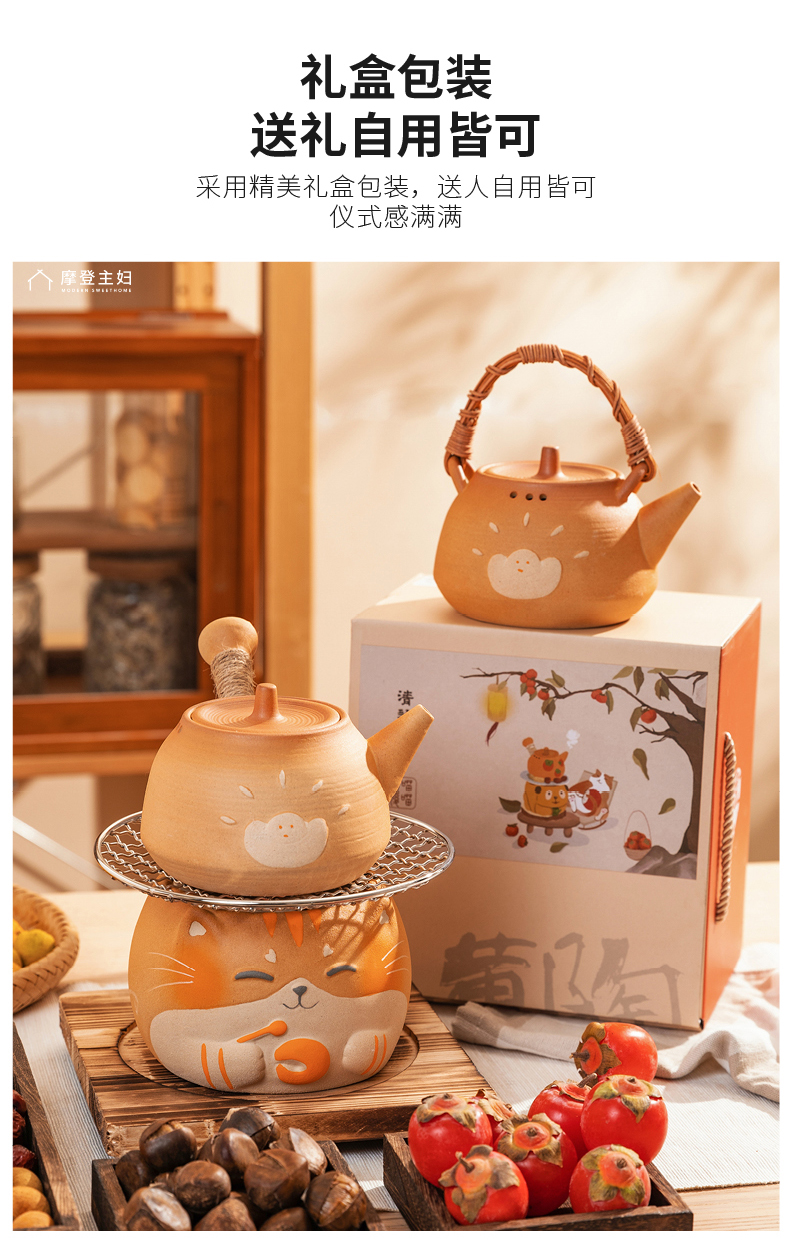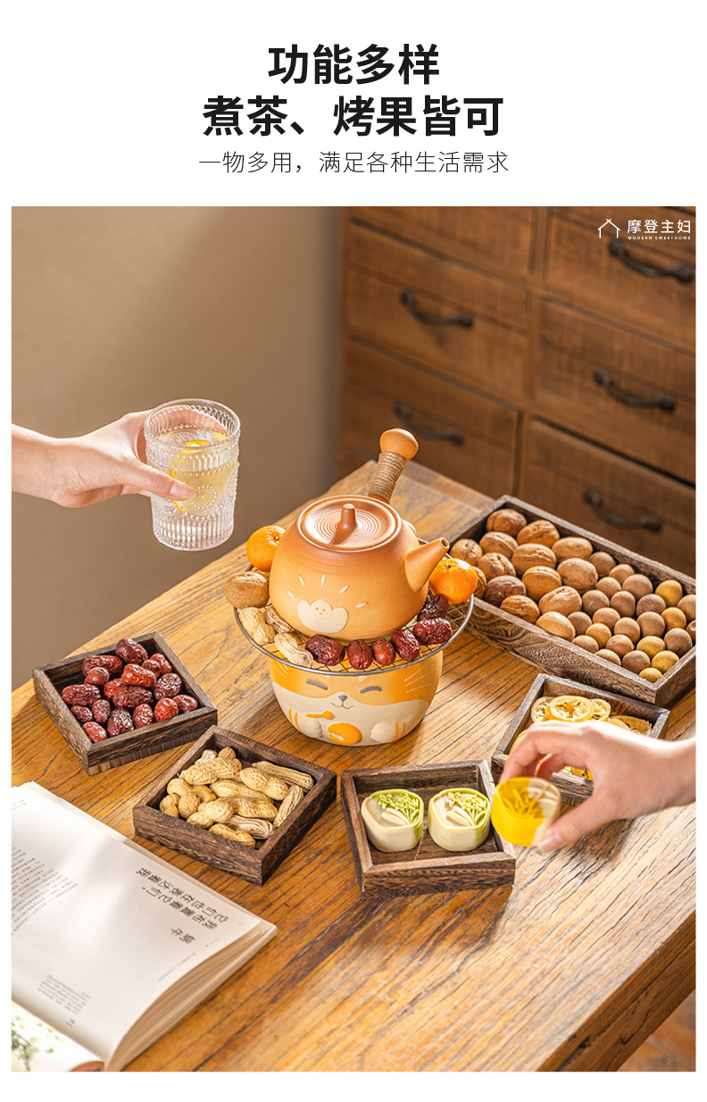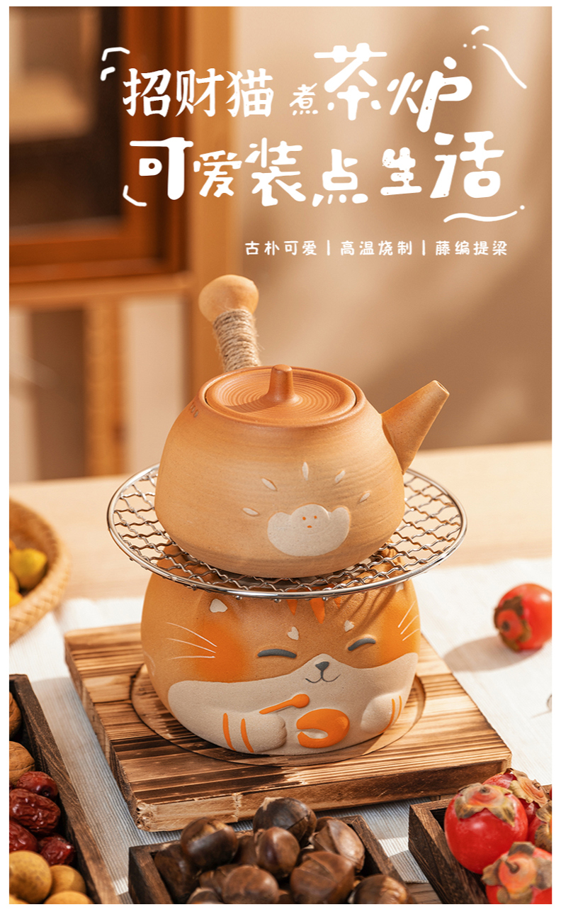 摩登主妇招财猫煮茶炉围炉煮茶器具全套家用电陶炉茶壶茶具烤火炉套装