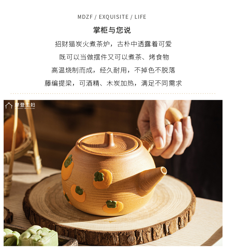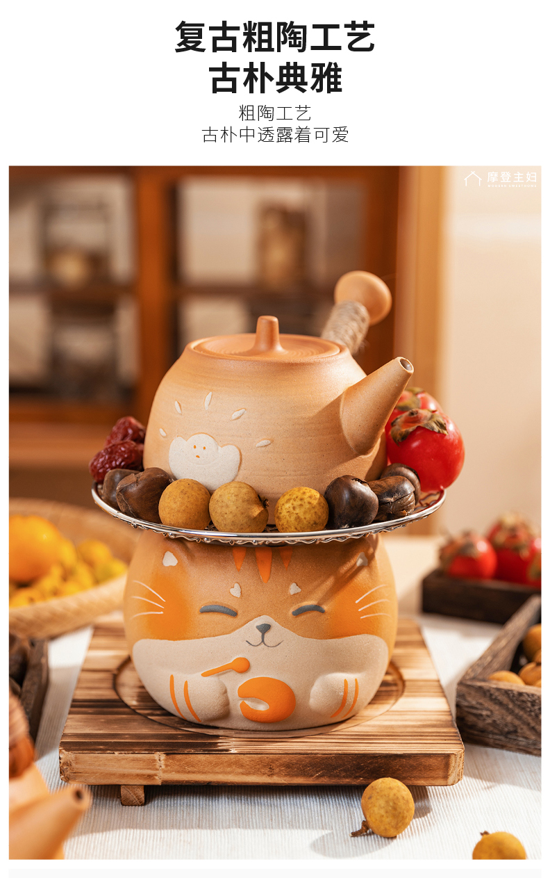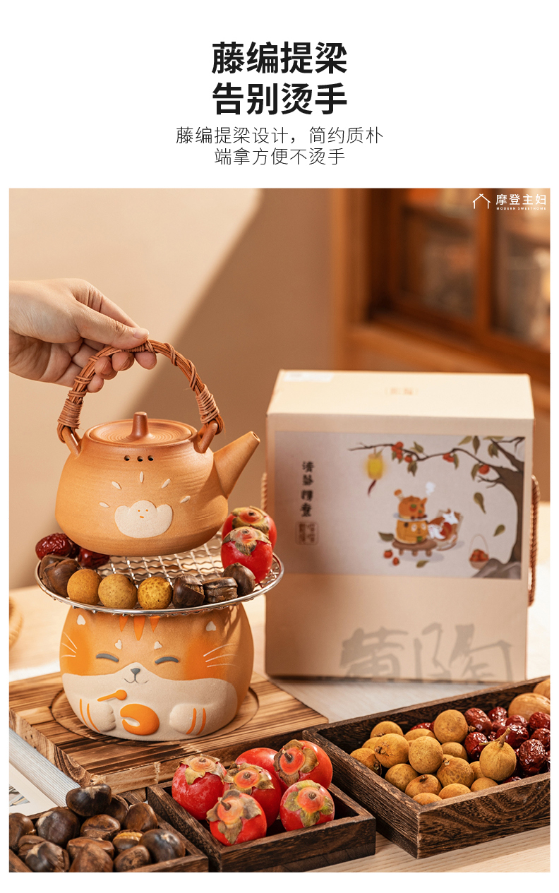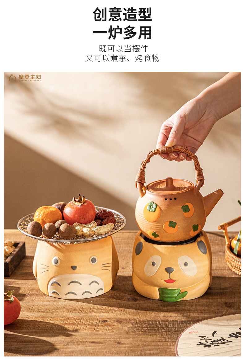 摩登主妇招财猫煮茶炉围炉煮茶器具全套家用电陶炉茶壶茶具烤火炉套装