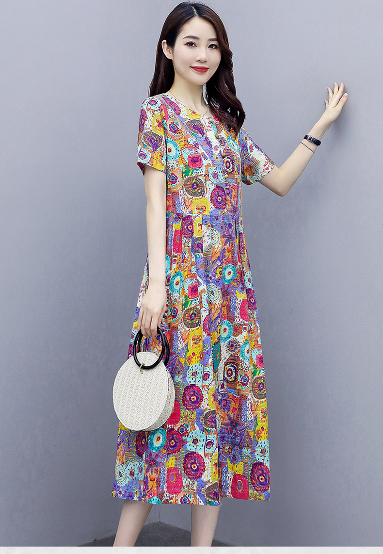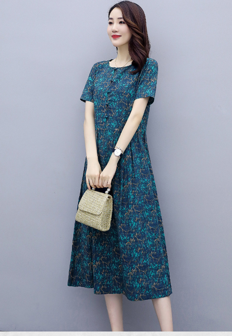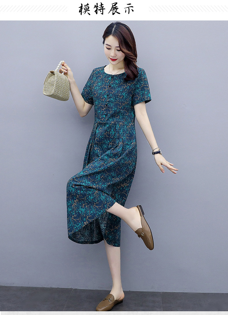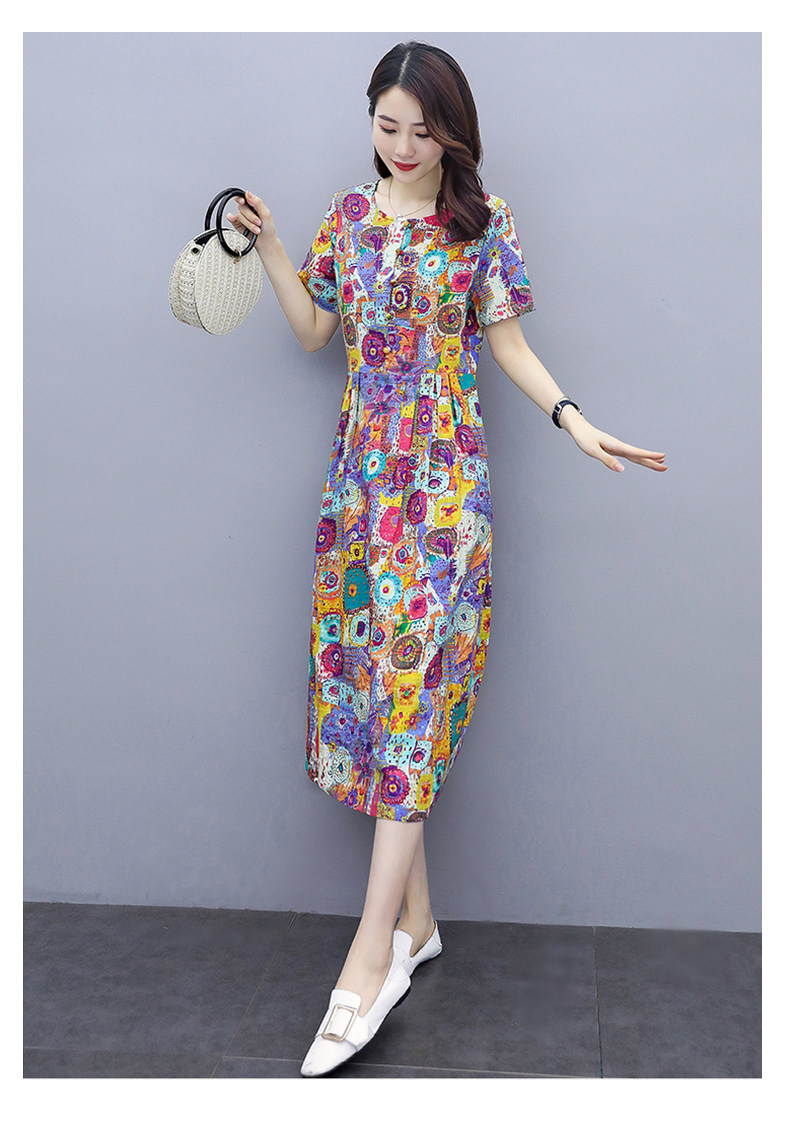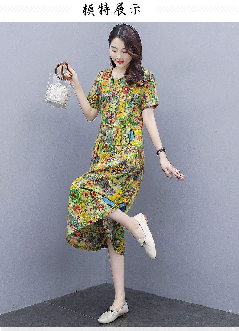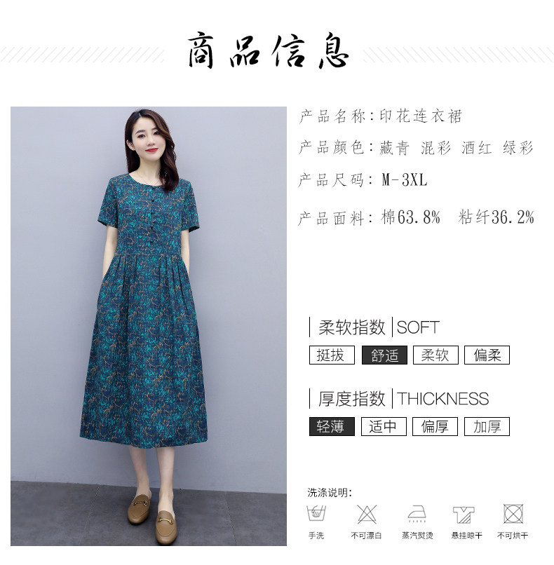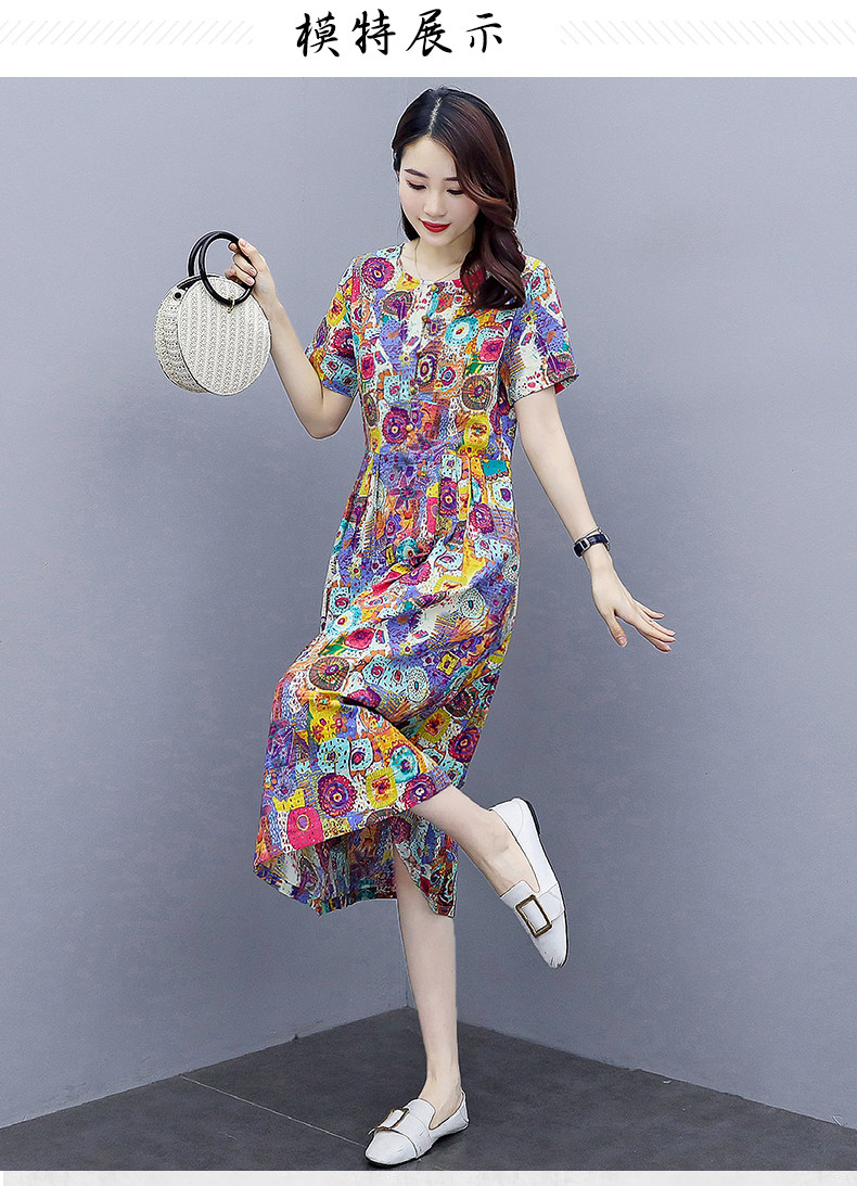 WZNH-NYMYZ502夏季时尚气质优雅印花圆领大码连衣裙