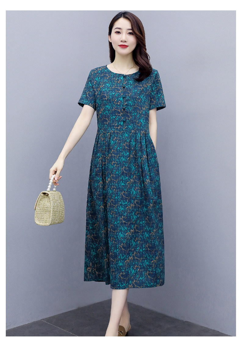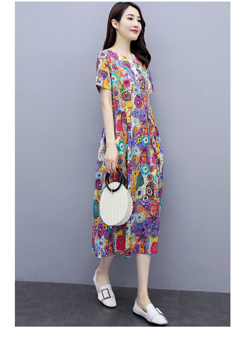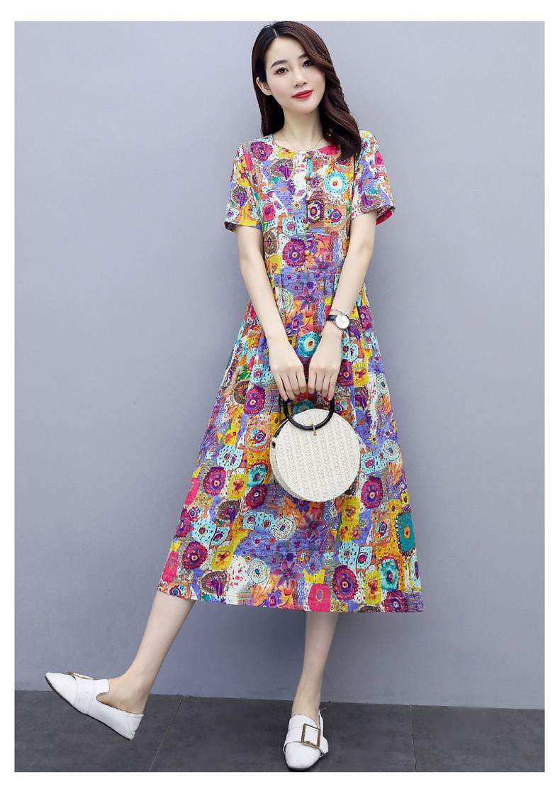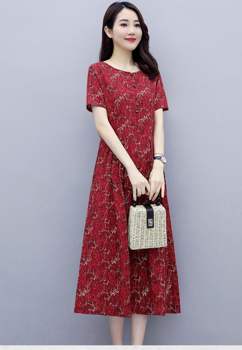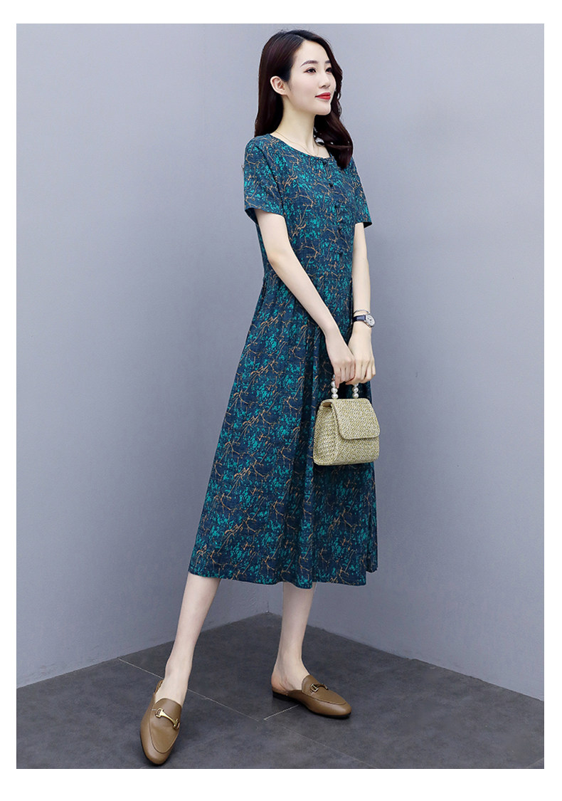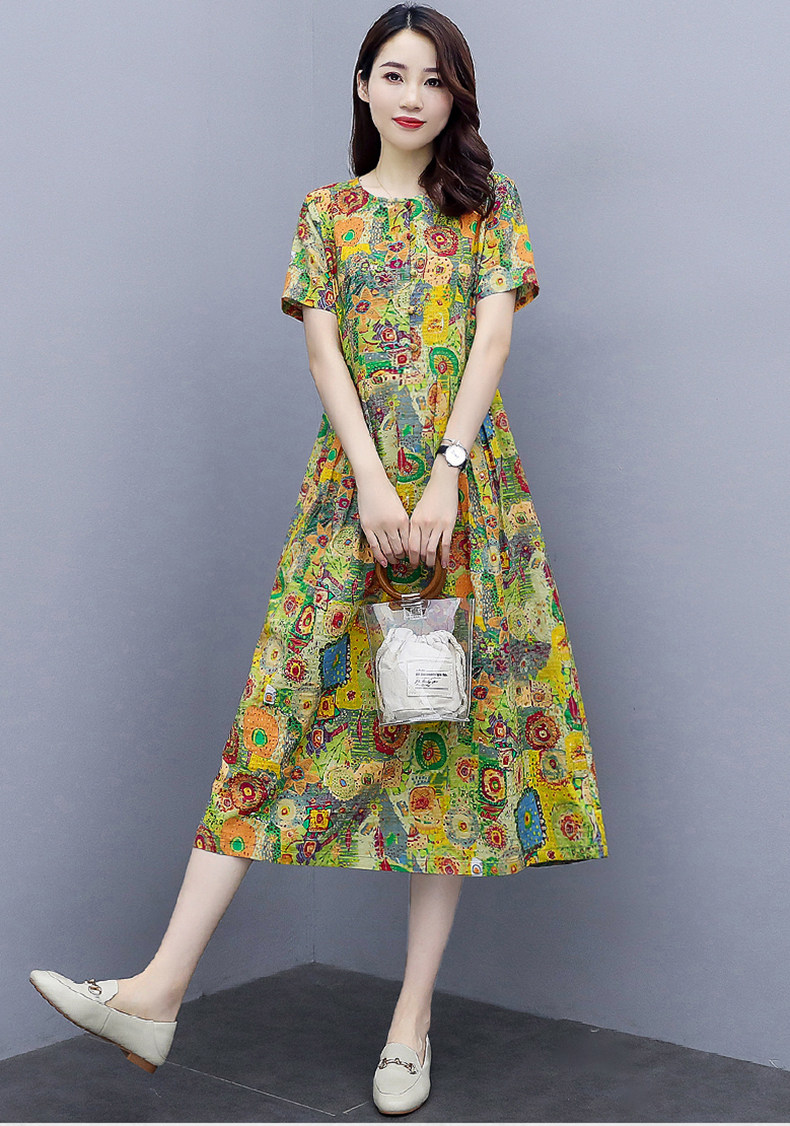WZNH-NYMYZ502夏季时尚气质优雅印花圆领大码连衣裙