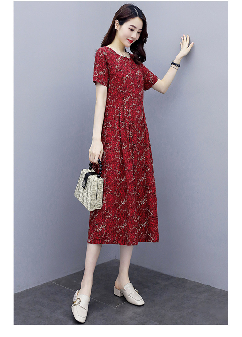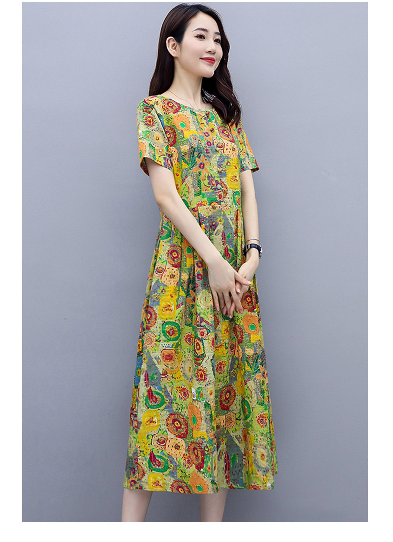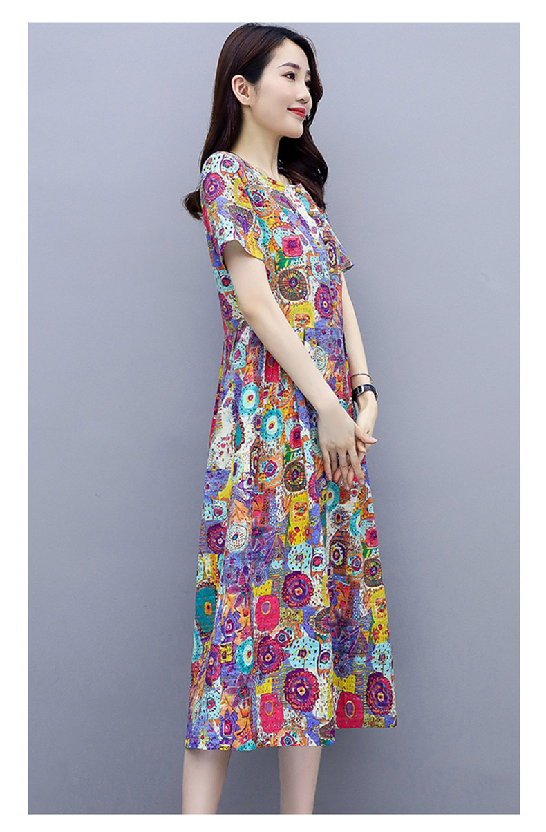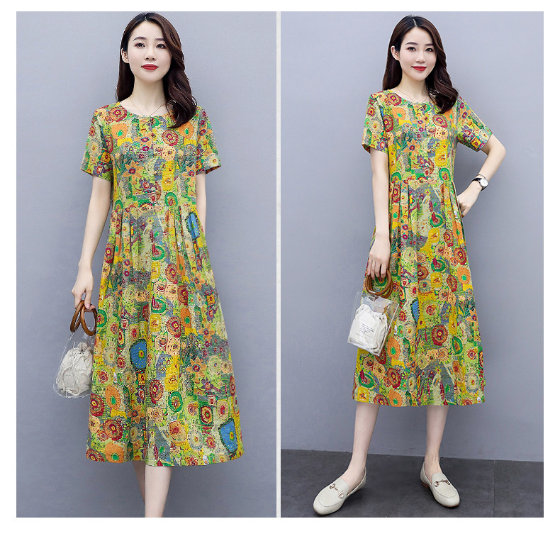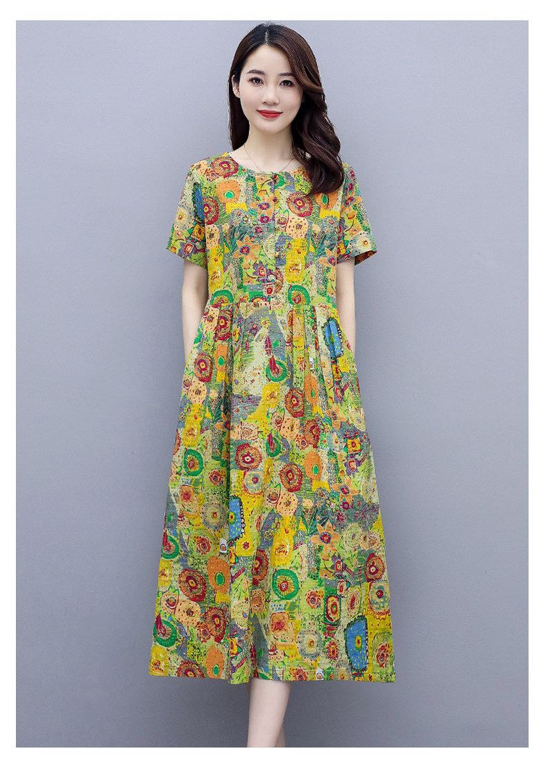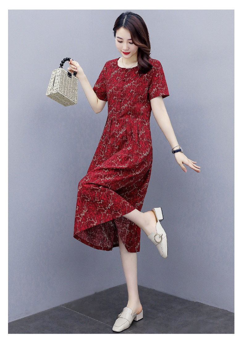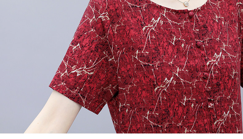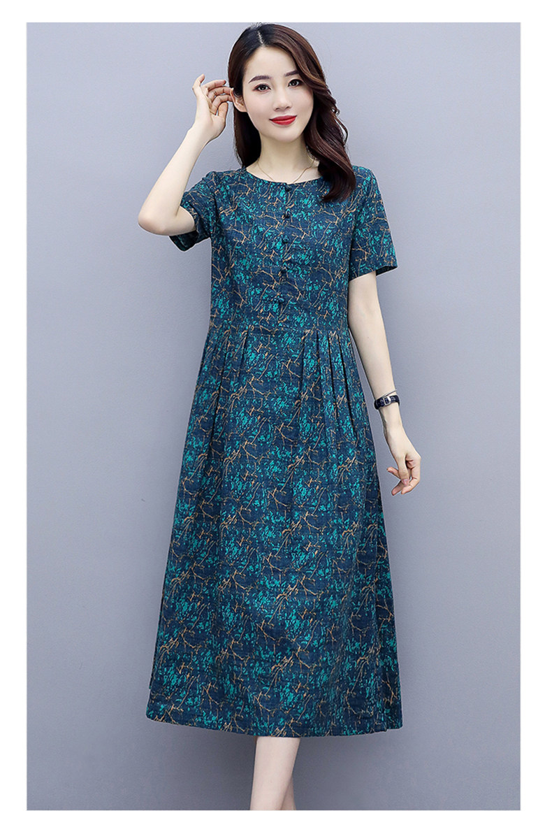 WZNH-NYMYZ502夏季时尚气质优雅印花圆领大码连衣裙