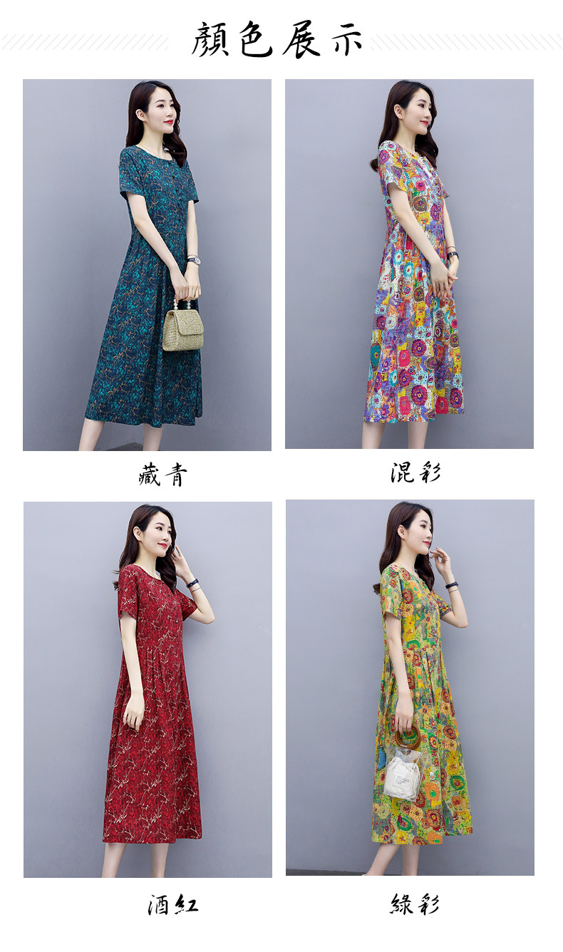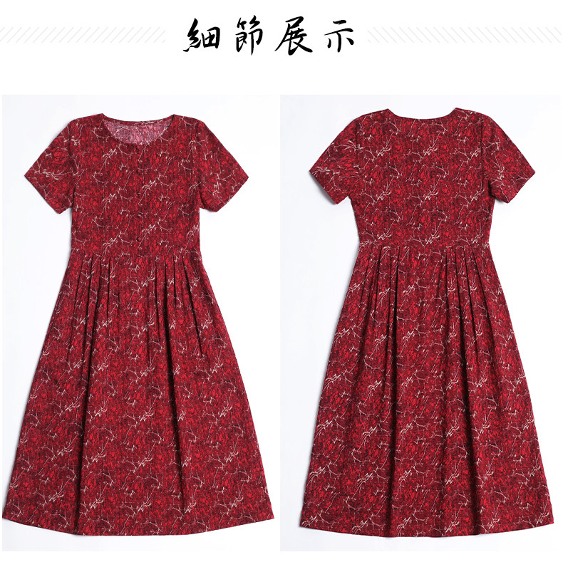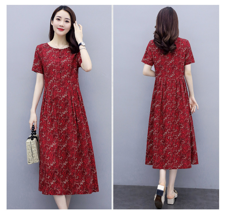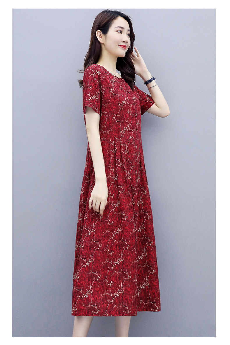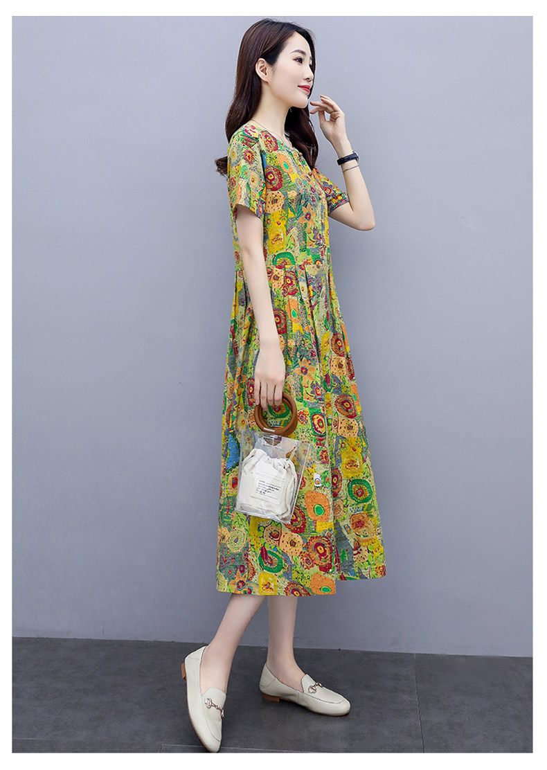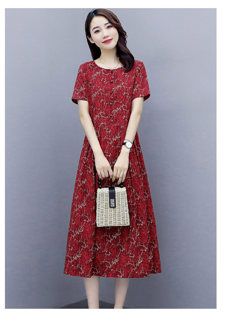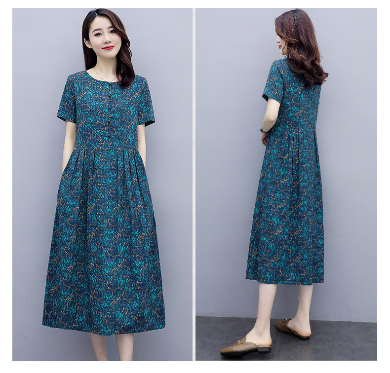 WZNH-NYMYZ502夏季时尚气质优雅印花圆领大码连衣裙