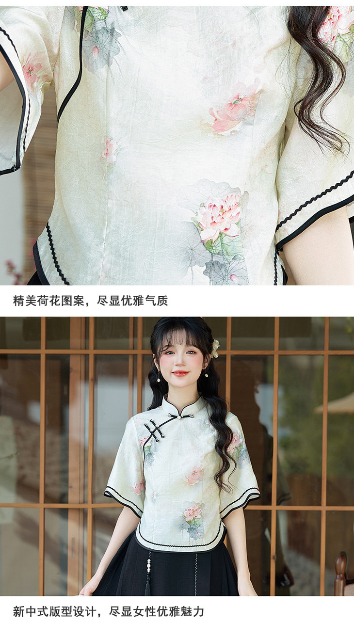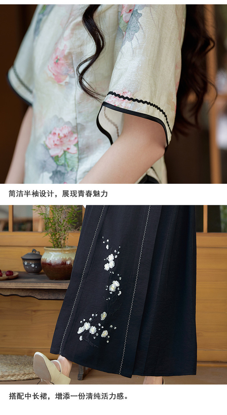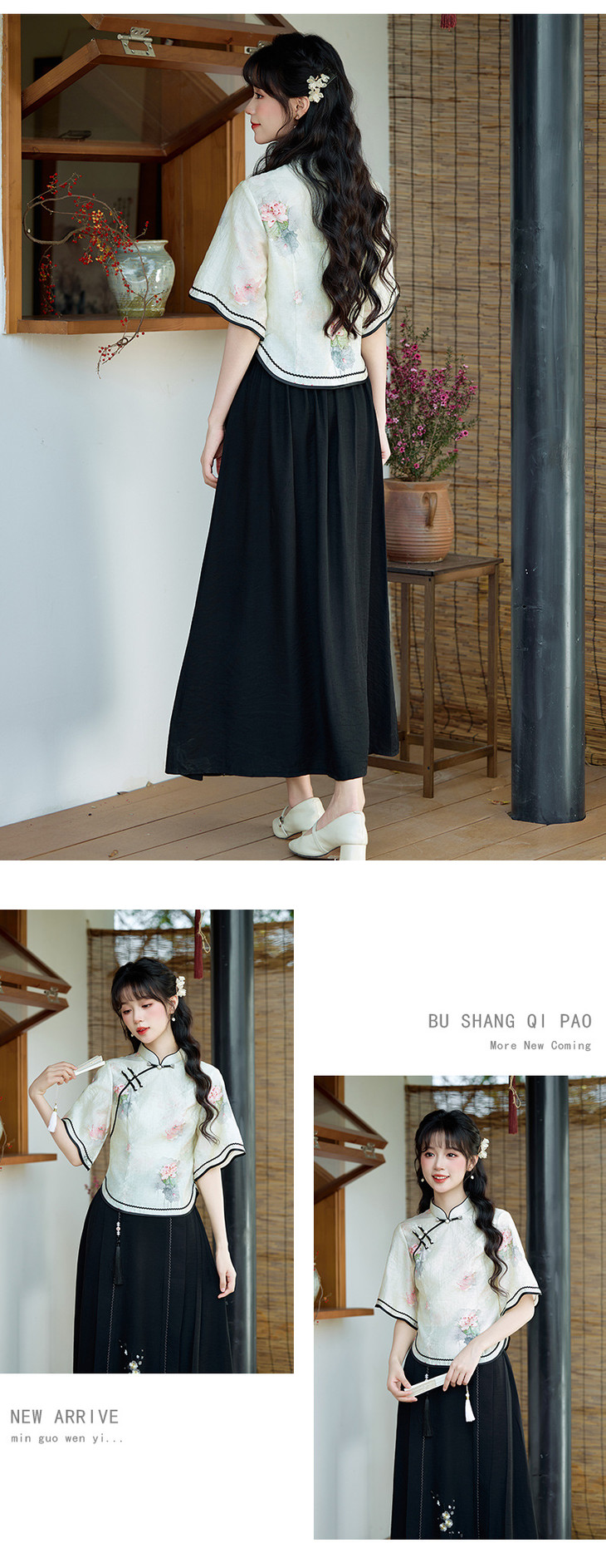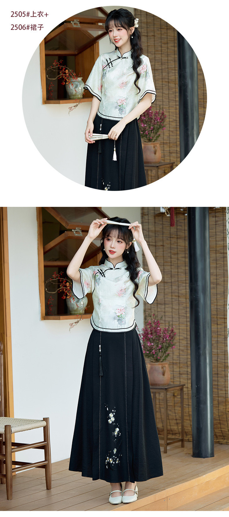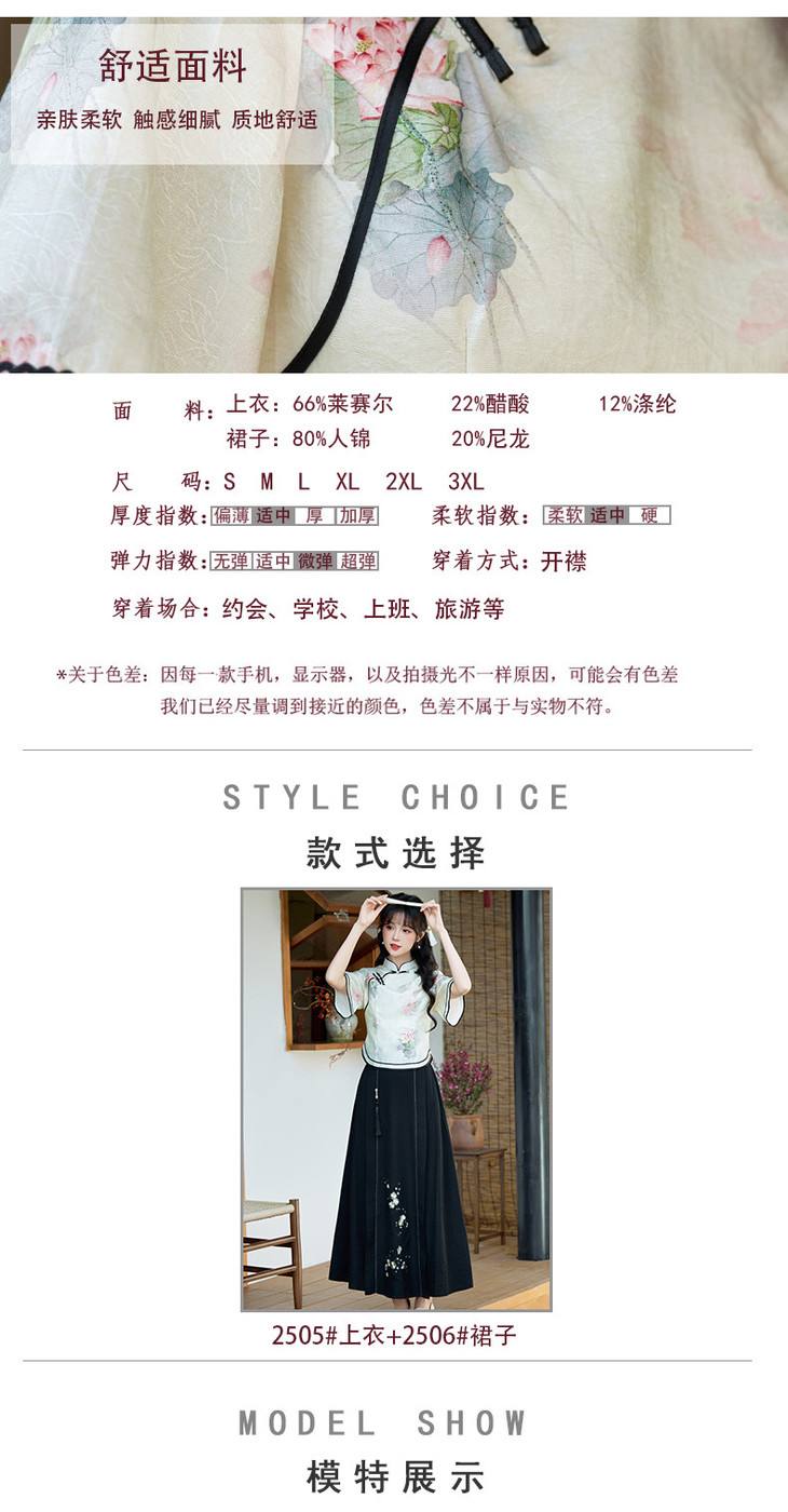 醋酸印花上衣,人棉绣花裙子文艺小清新旗袍套装BS2505