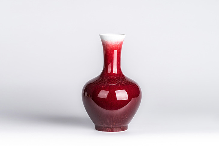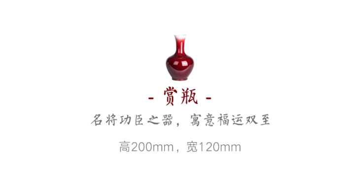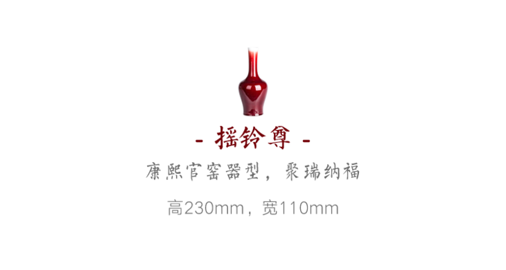 赏瓶出现于雍正年间,以作赏赐功臣之用;却与常见的青花缠莲不同,郎窑红赏瓶至简而至美,尊贵大气。