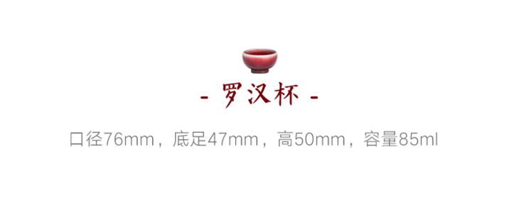罗汉杯型,源于僧人所用铜钵,古朴厚实,融衬瑰丽之色,更显尊贵大气;