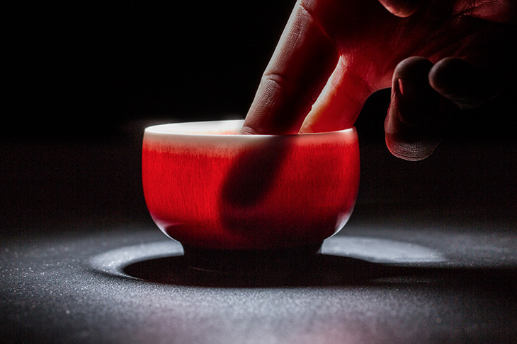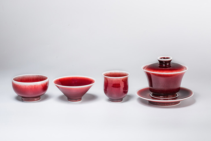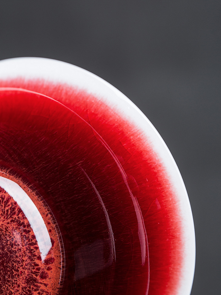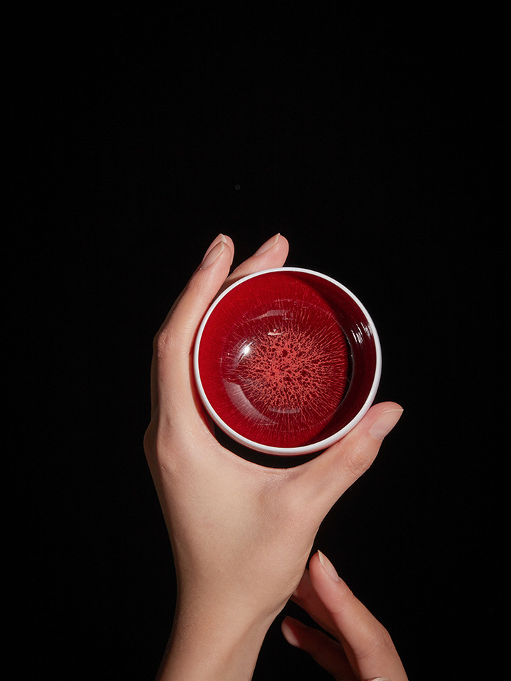 每一盏茶器,乍看是鲜亮通透的正红色,细看却藏着千变万化的纹理,真是“红霞影绰现牛毛,似玉啄雪皓月辉。”