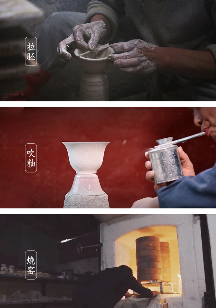 从拉胚、修胚、人工吹釉到烧窑,全由手工完成。釉料泥料配比、窑口控温,都有独门秘法。
