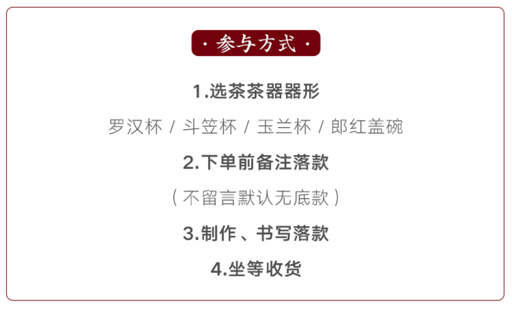 开窑后,如所押茶器为次品,会补送一只优品郎红杯,默认落款为“独一”。连同您押中的次品一同寄出。