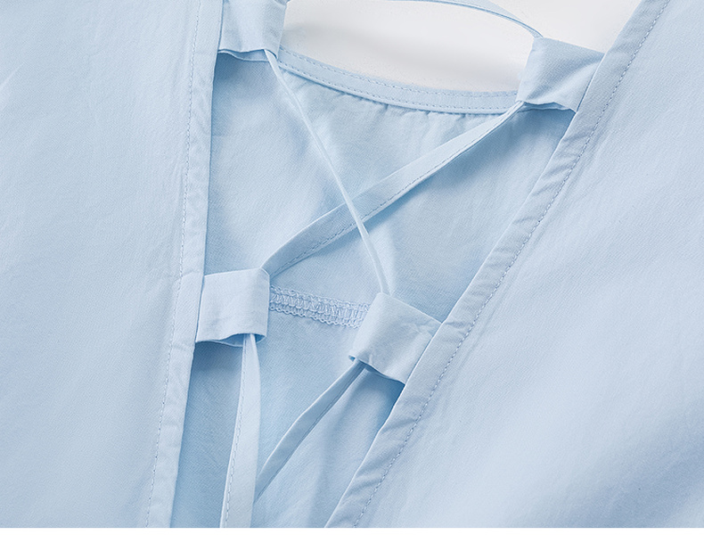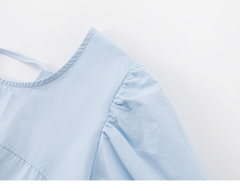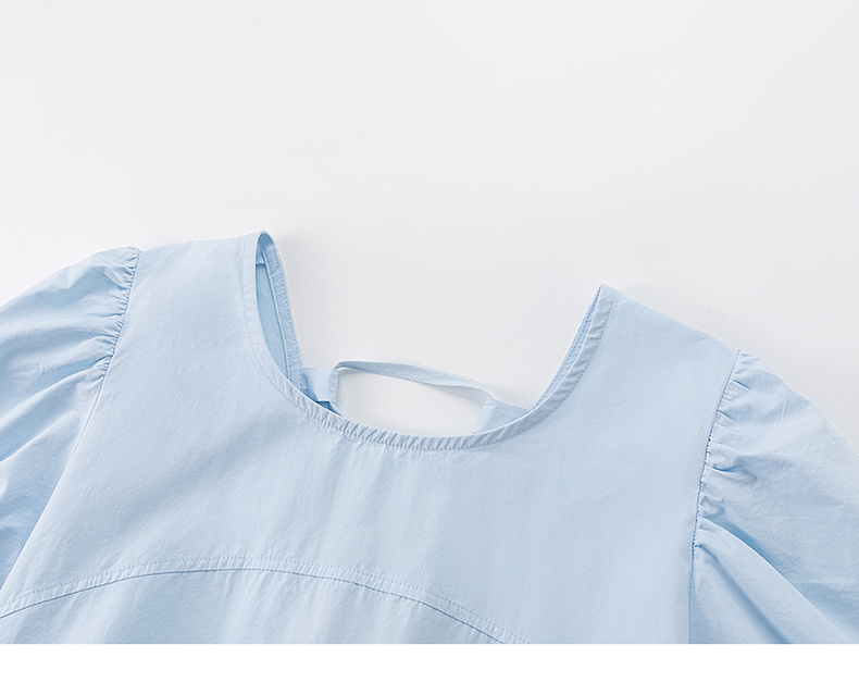 会员福利【100棉!透气亲肤】拉夏贝尔/La Chapelle法式纯色圆领后背交叉系带泡泡袖连衣裙长裙女