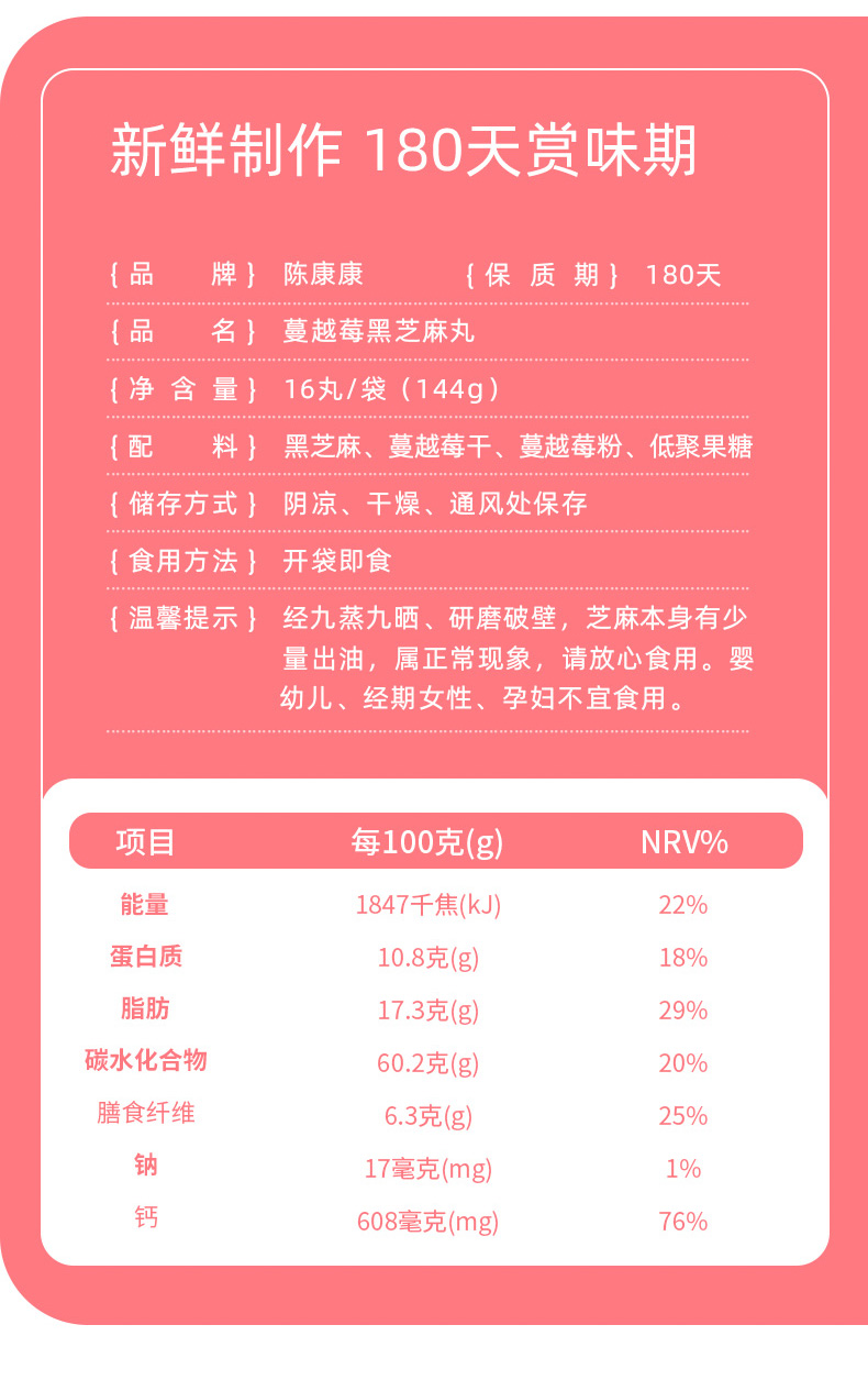 陈康康 黑芝麻丸 蔓越莓黑芝麻丸 玫瑰黑芝麻丸 红枣枸杞黑芝麻丸