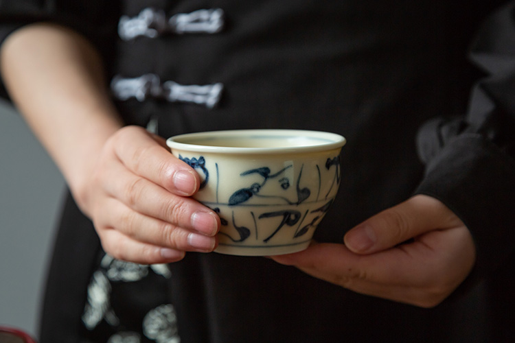 茶香记 浅元手作刀字纹风水缸杯主人杯青花釉下彩品杯茶杯茶具