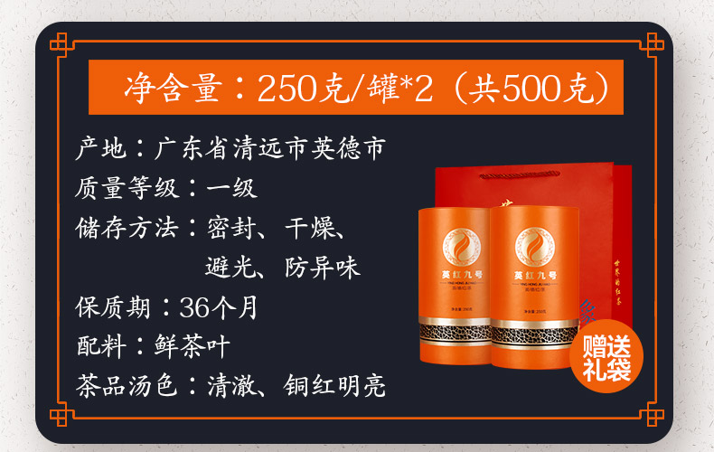 买一送一 送同款正宗英红九号红茶250g礼盒装 英德特产精品红茶 到手2罐
