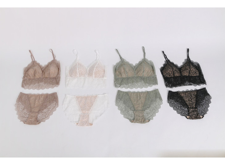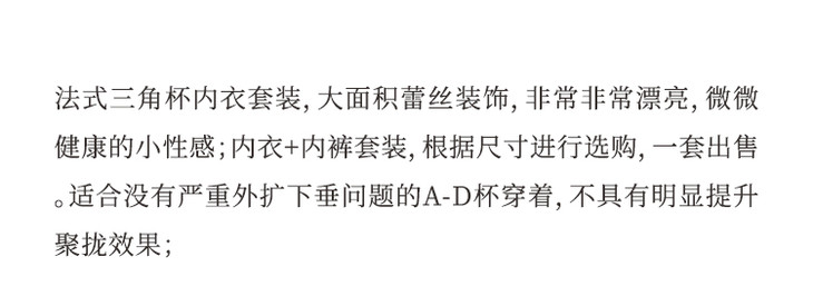 蕾丝柔软薄款微弹内衣套装 法式三角杯内衣套装,大面积蕾丝装饰 清仓不退不换